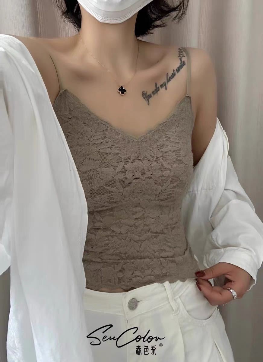 봄과 여름 새로운 꽃 잠 못 이루는 자카드 레이스 카미솔 여성용 슬림핏 슬리밍 올매치 모조 조끼스토어 가기