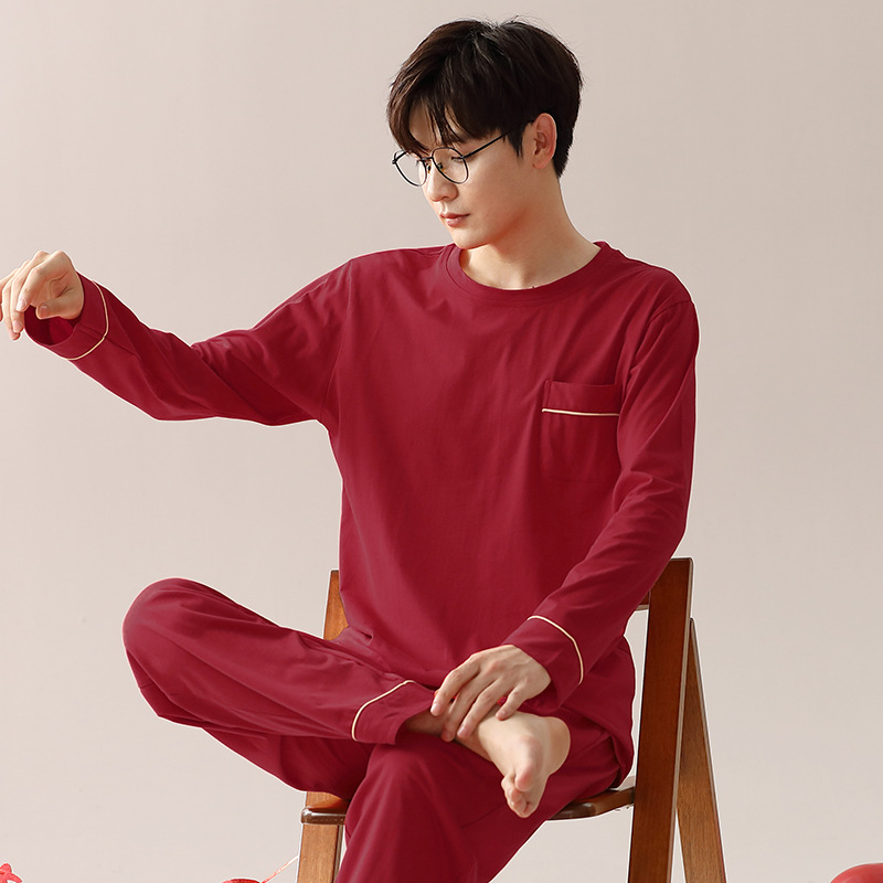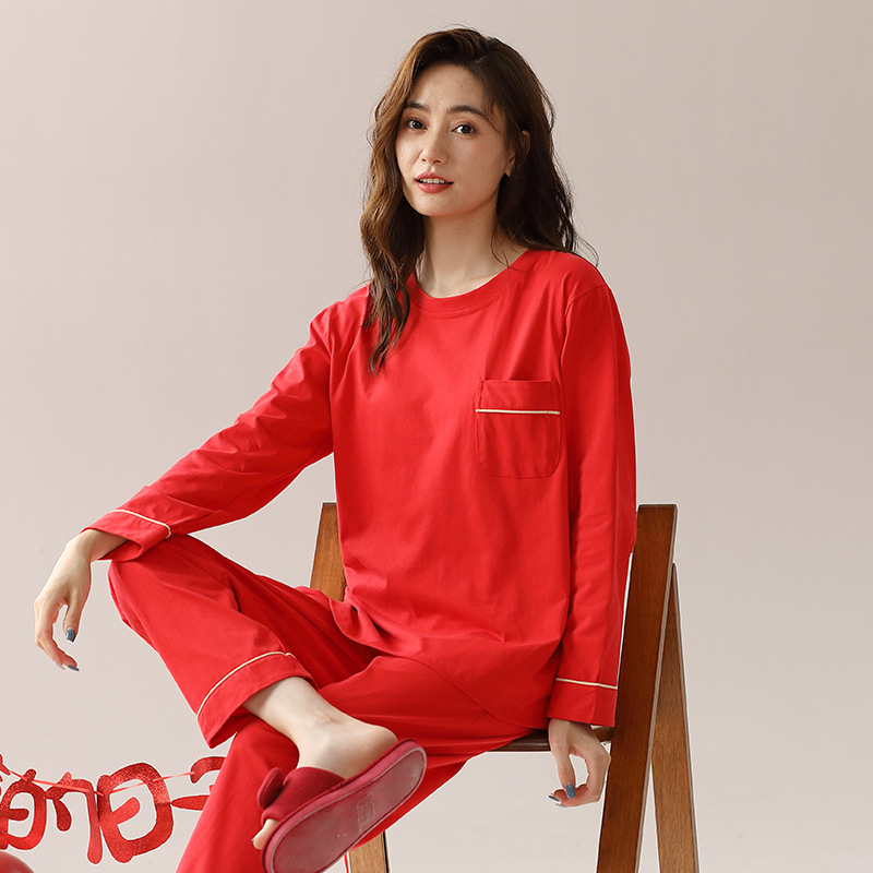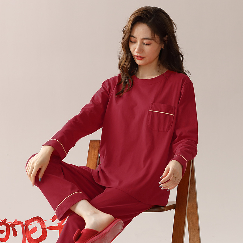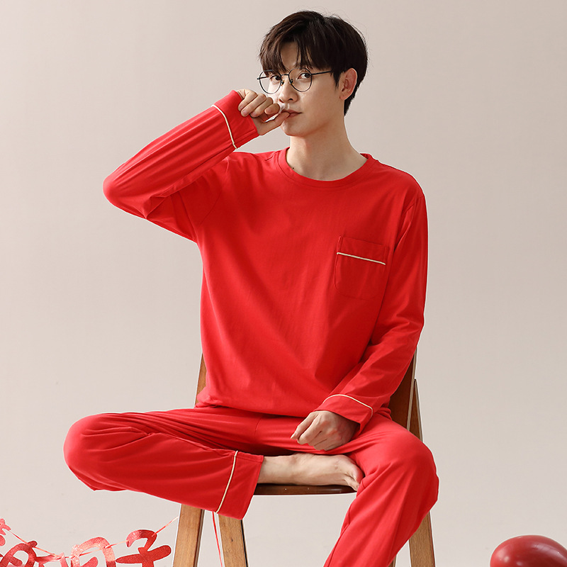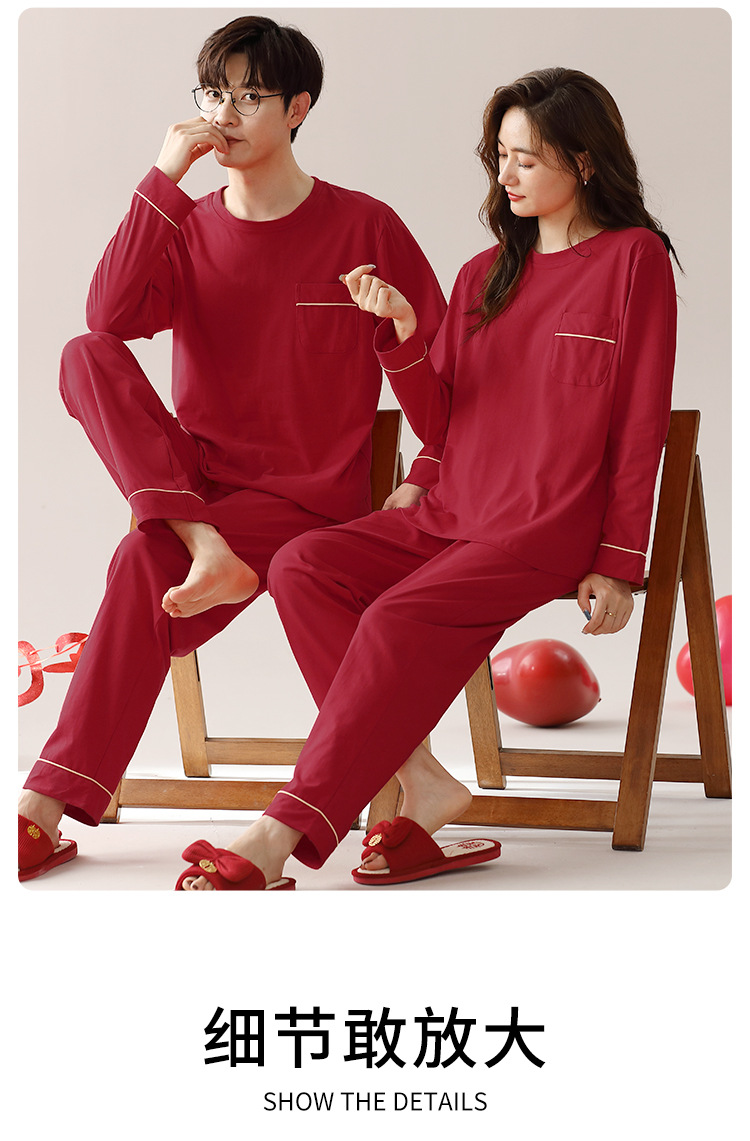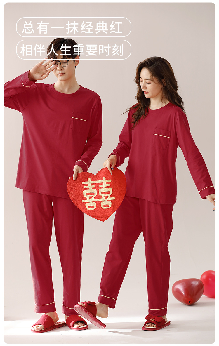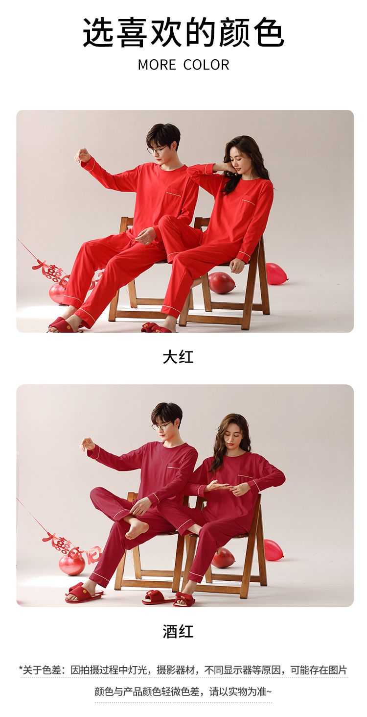 결혼식 면 잠옷 커플 봄과 가을 생일 년 붉은 축하 대형 홈 옷 남자의 긴 소매 바지 세트 OV스토어 가기