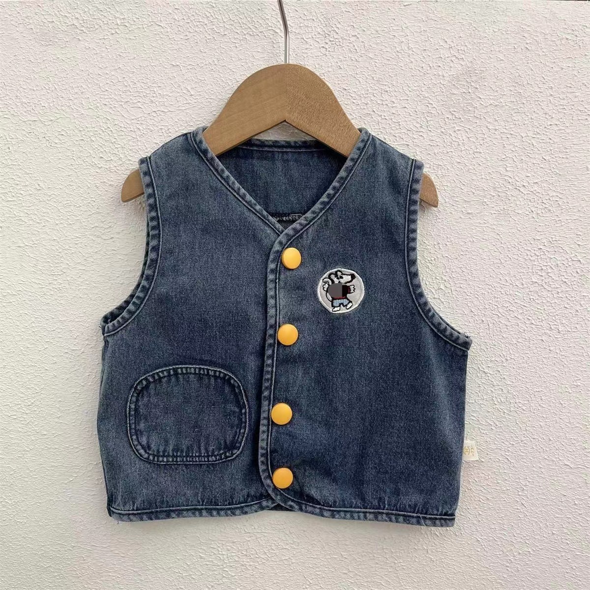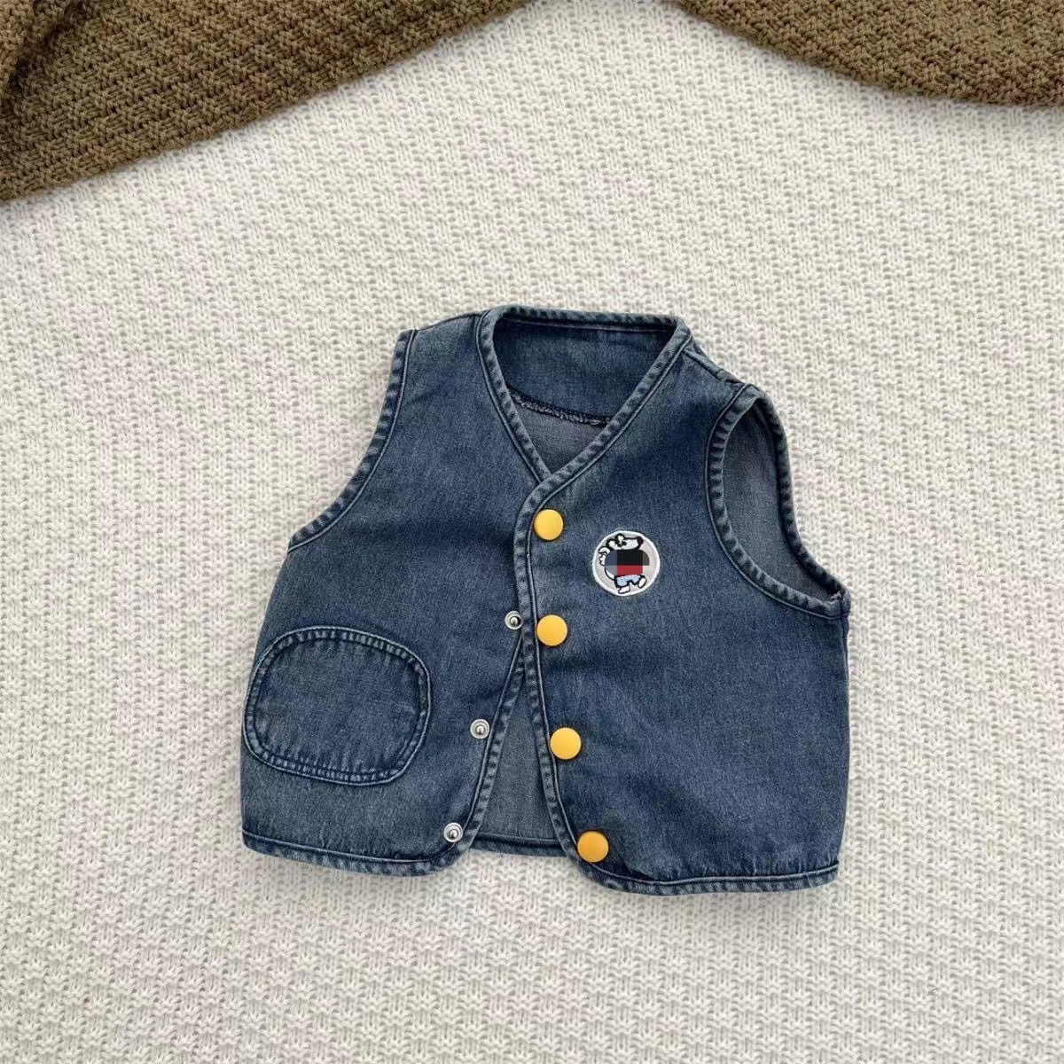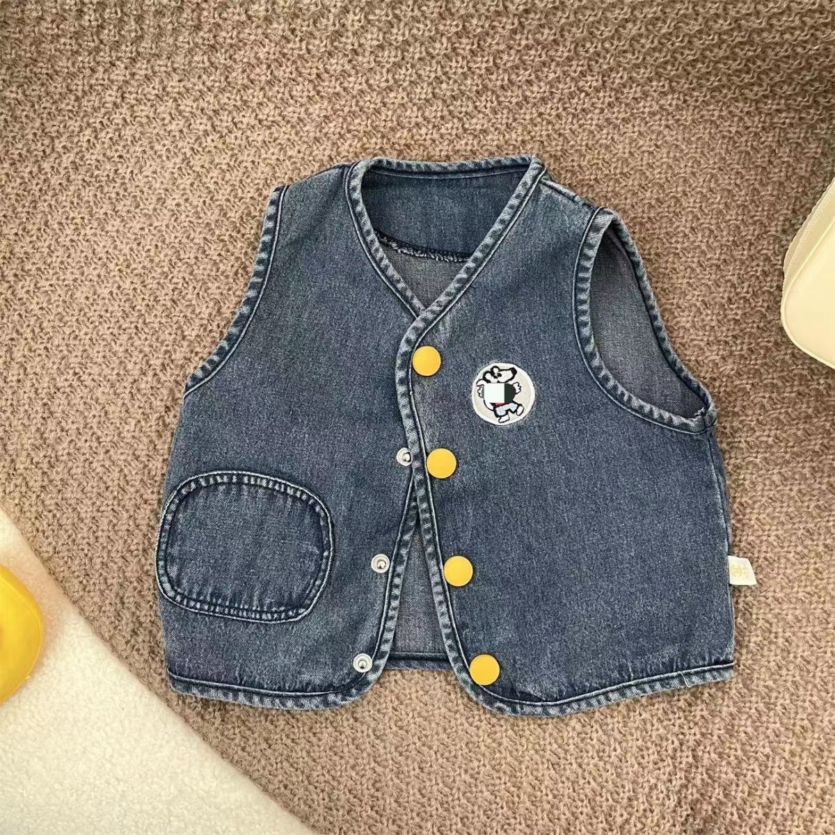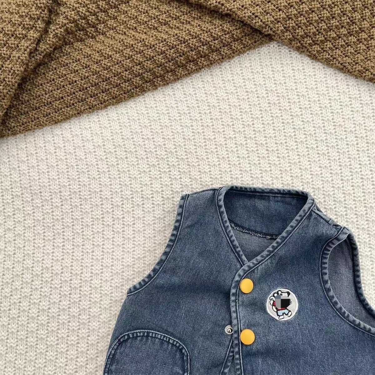 아기 소년 소녀 봄과 가을 어린이 조끼 외국식 데님 올 매치 유아 외모 여학생 재킷 유행 웨이스트 코트