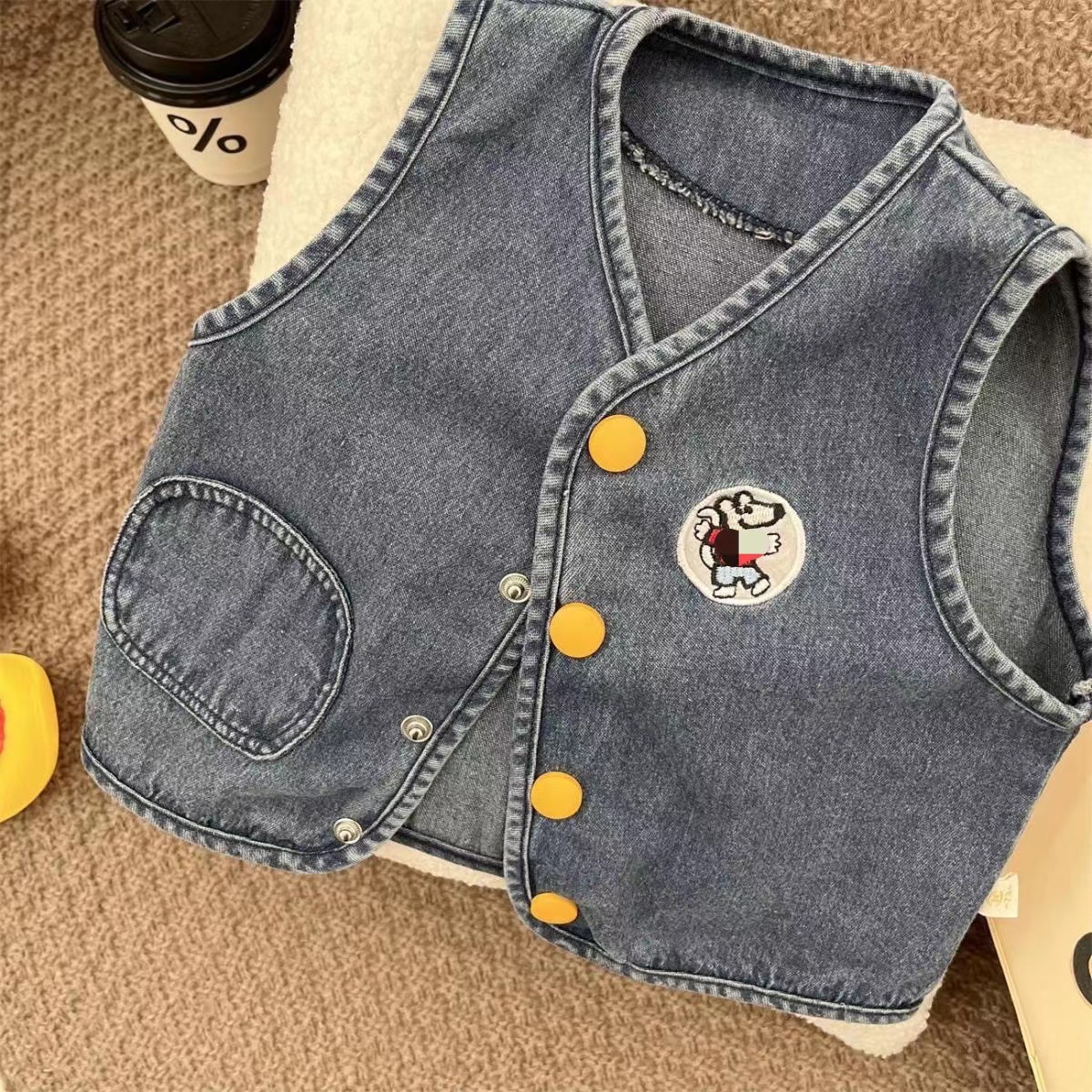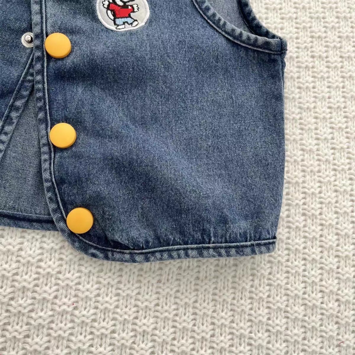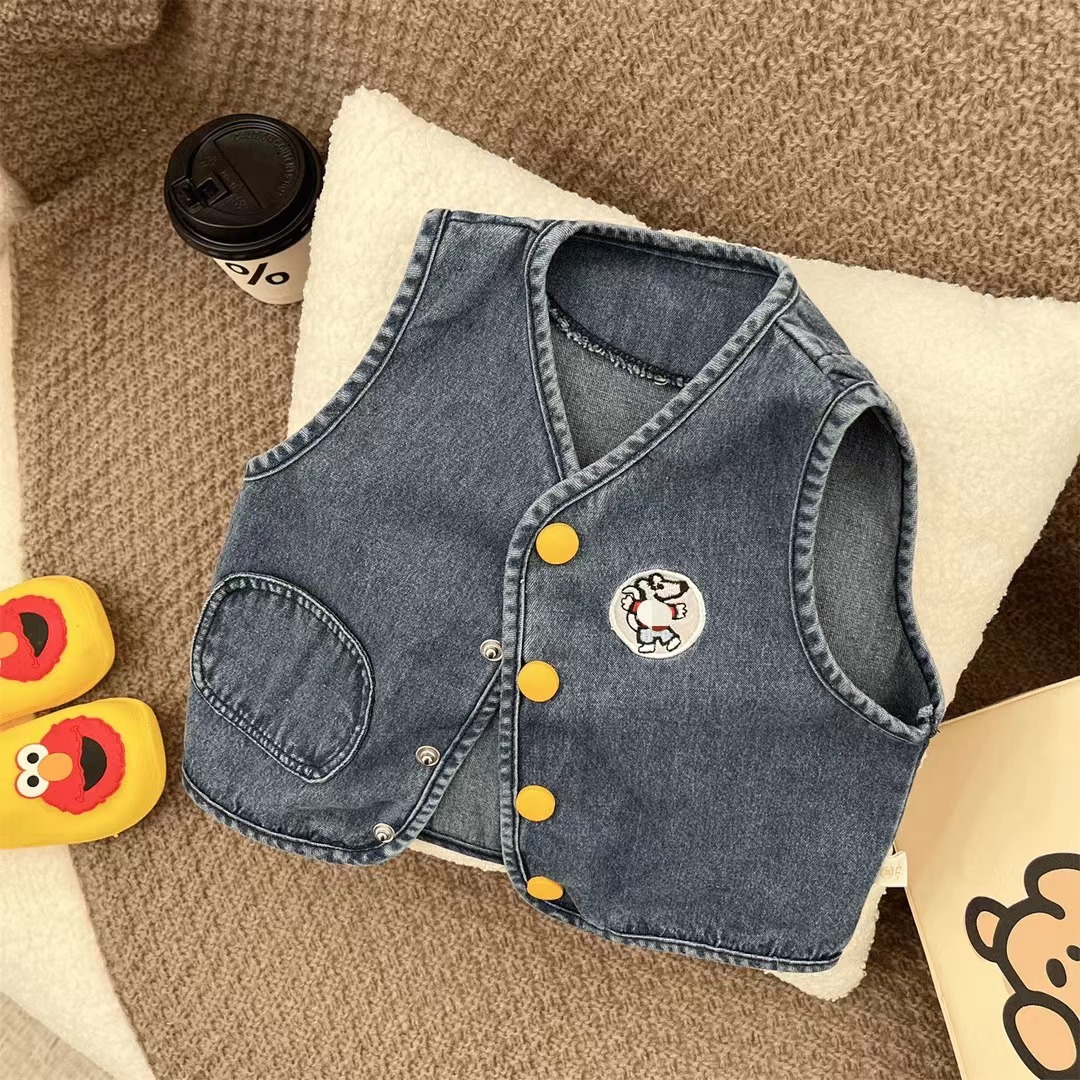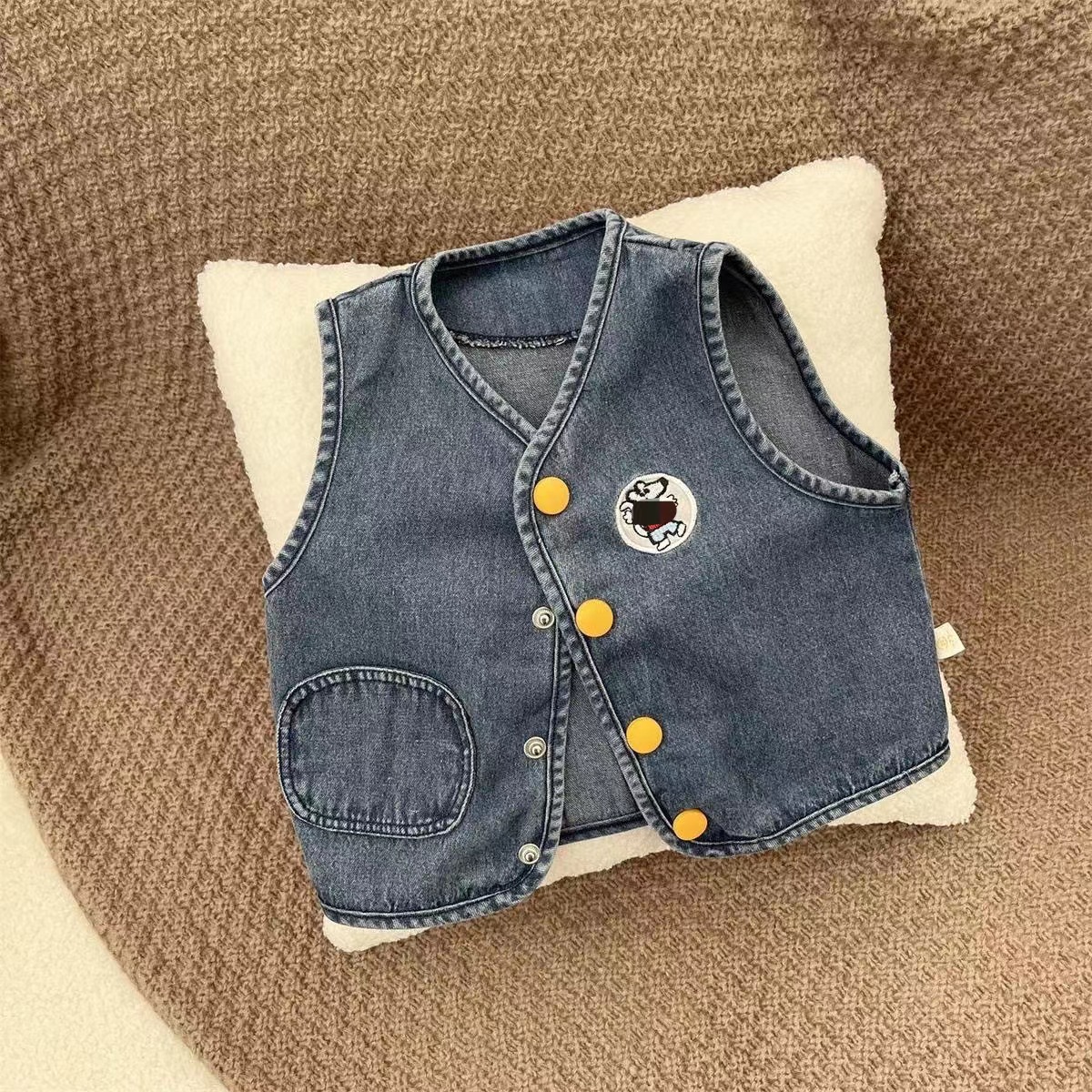 아기 소년 소녀 봄과 가을 어린이 조끼 외국식 데님 올 매치 유아 외모 여학생 재킷 유행 웨이스트 코트