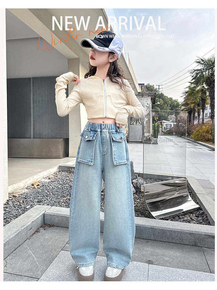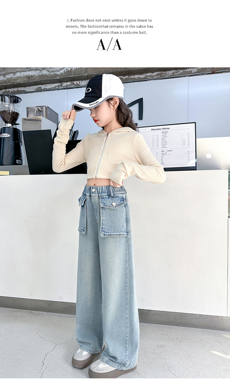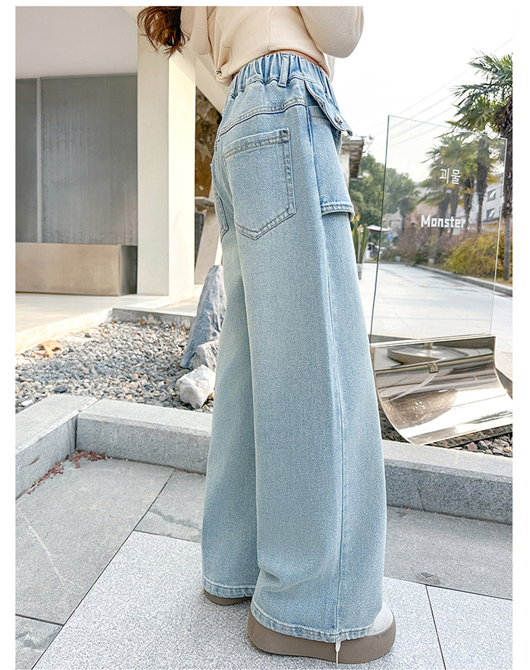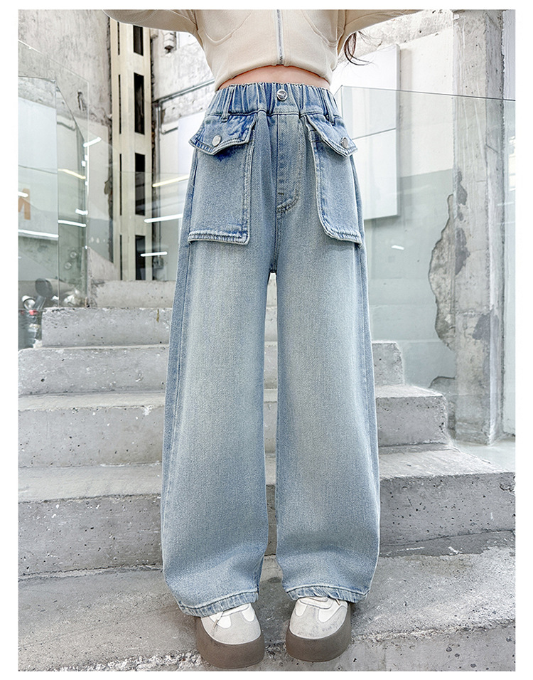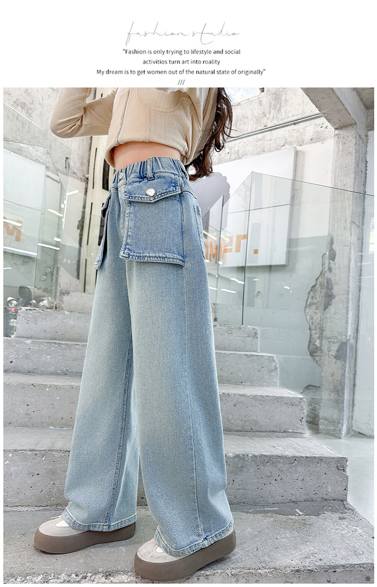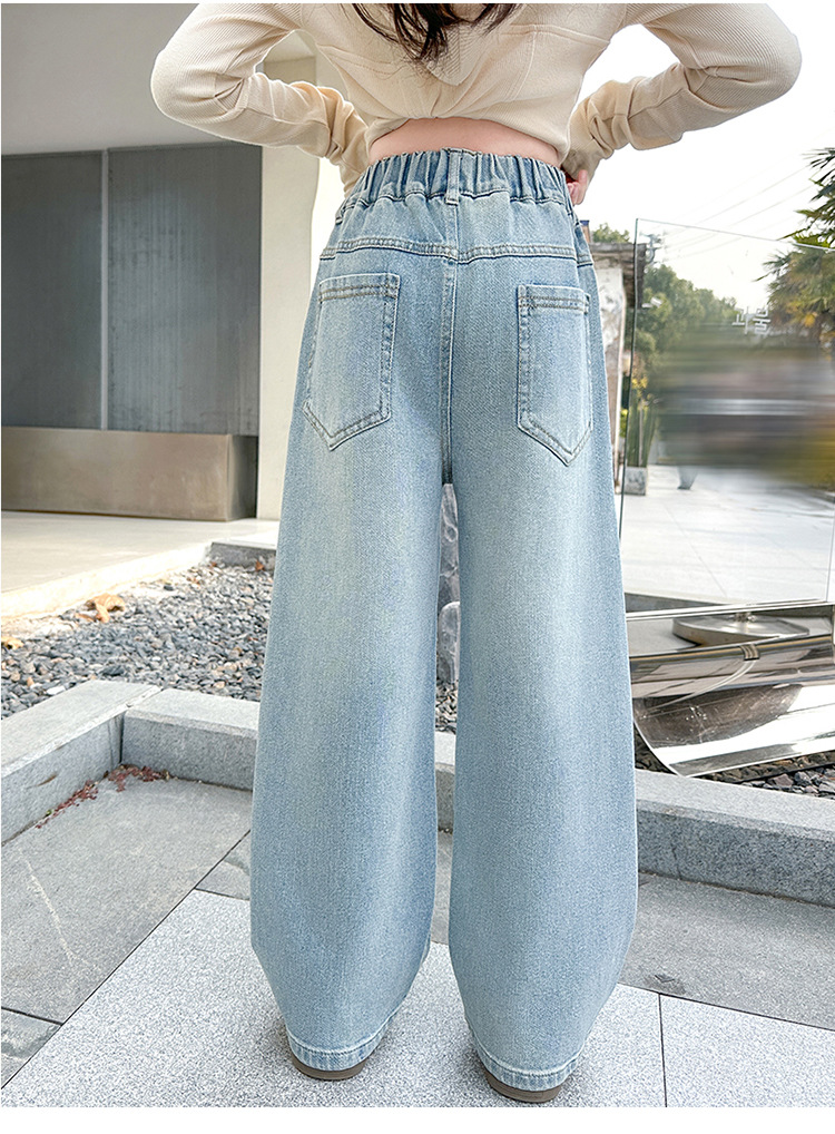 소녀 바지 봄과 가을 2025 새로운 어린이 느슨한 넓은 다리 바지 소녀의 봄 스트레이트 청바지 트렌디스토어 가기