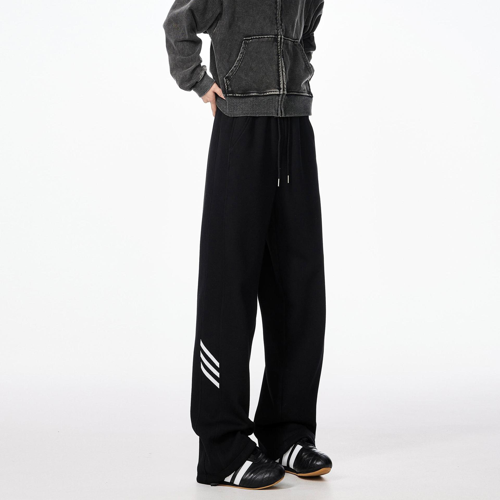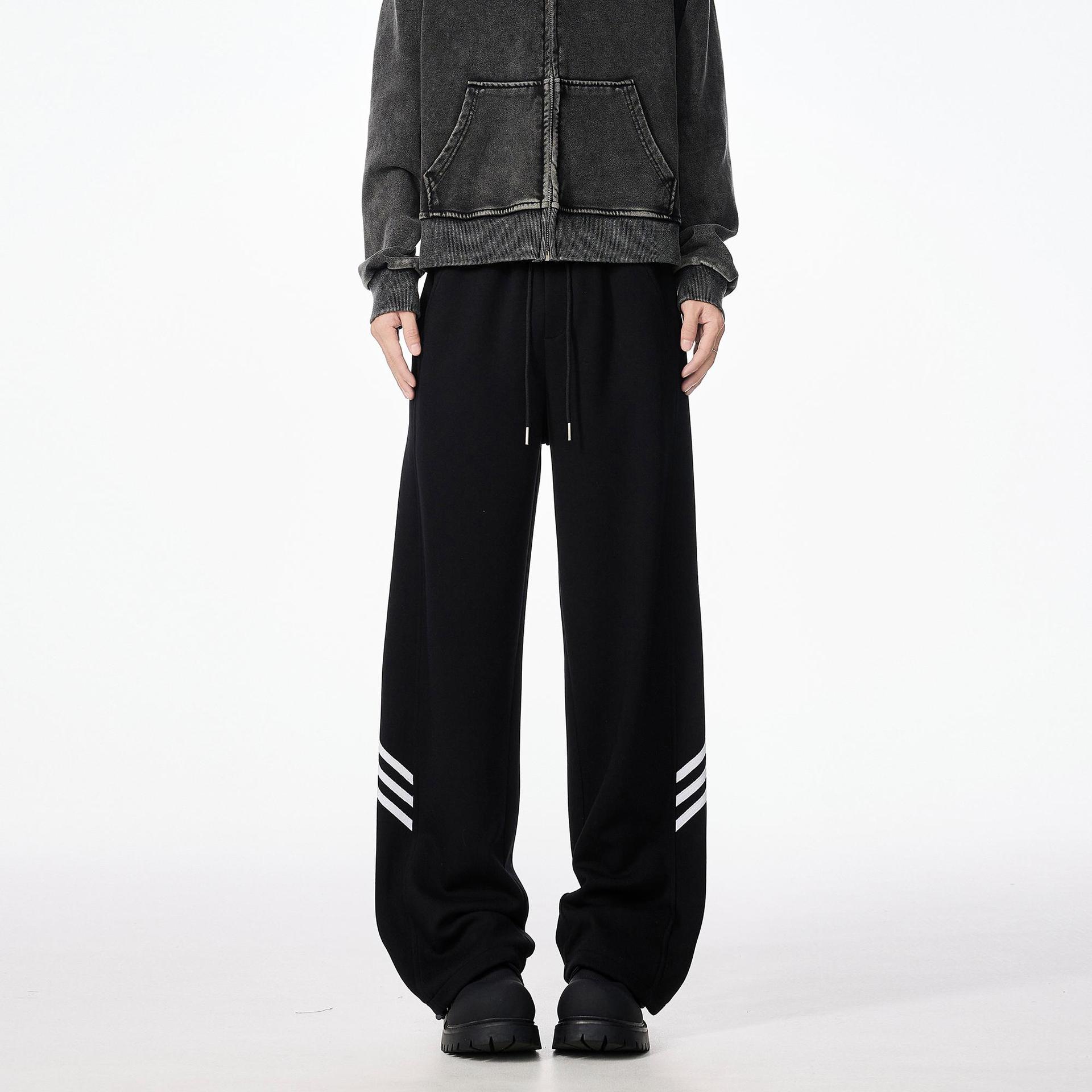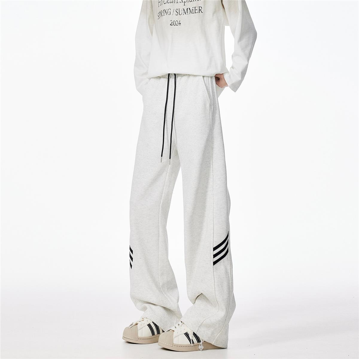 스트라이프 스웨트 팬츠 남자 봄 아메리칸 스타일 레트로 무거운 스포츠 바지 10 대 봄 여름 패션 브랜드 스트레이트 캐주얼 바지