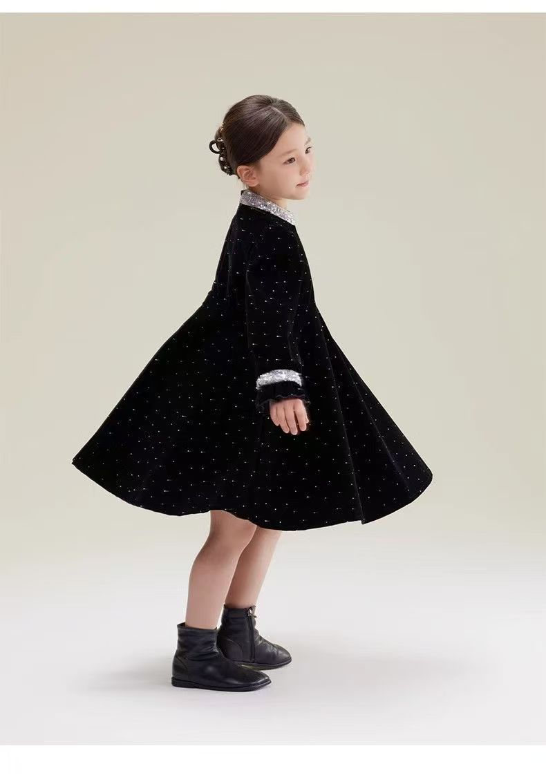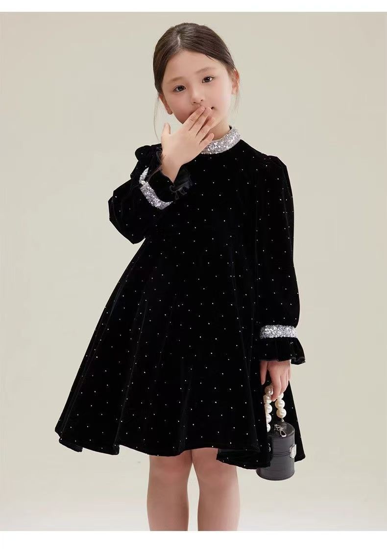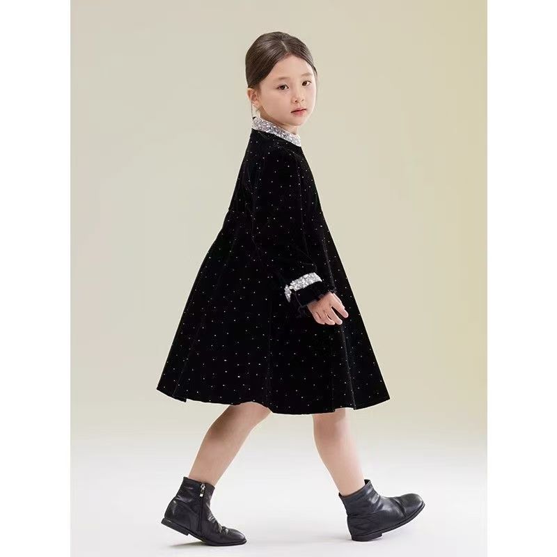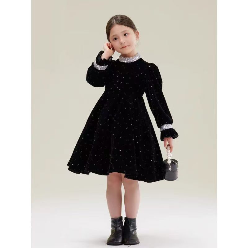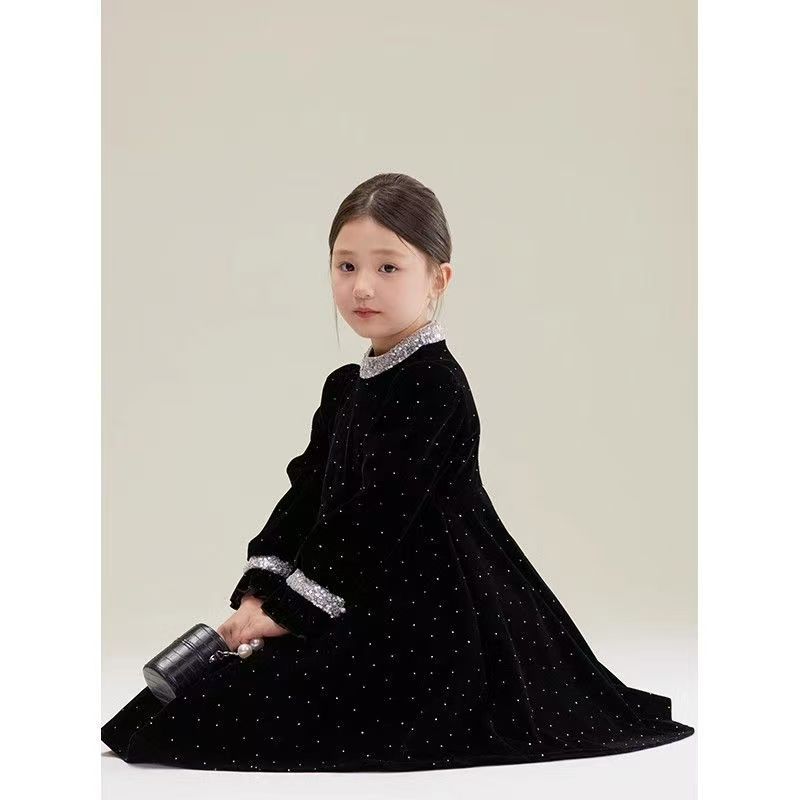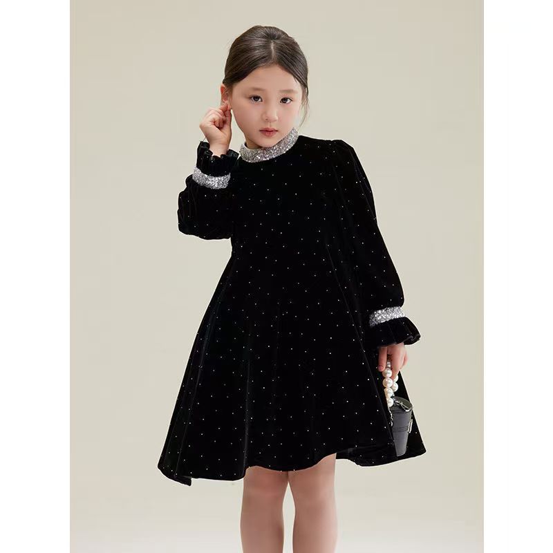 어린이 착용 벨벳 스커트 소녀의 봄과 가을 새로운 스타일 연예인 스타일 원피스 어린이 아기 스커트 큰 어린이 공주 치마스토어 가기