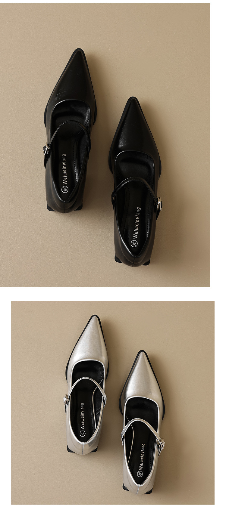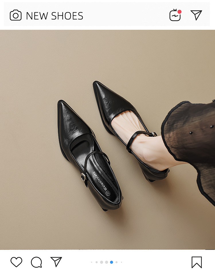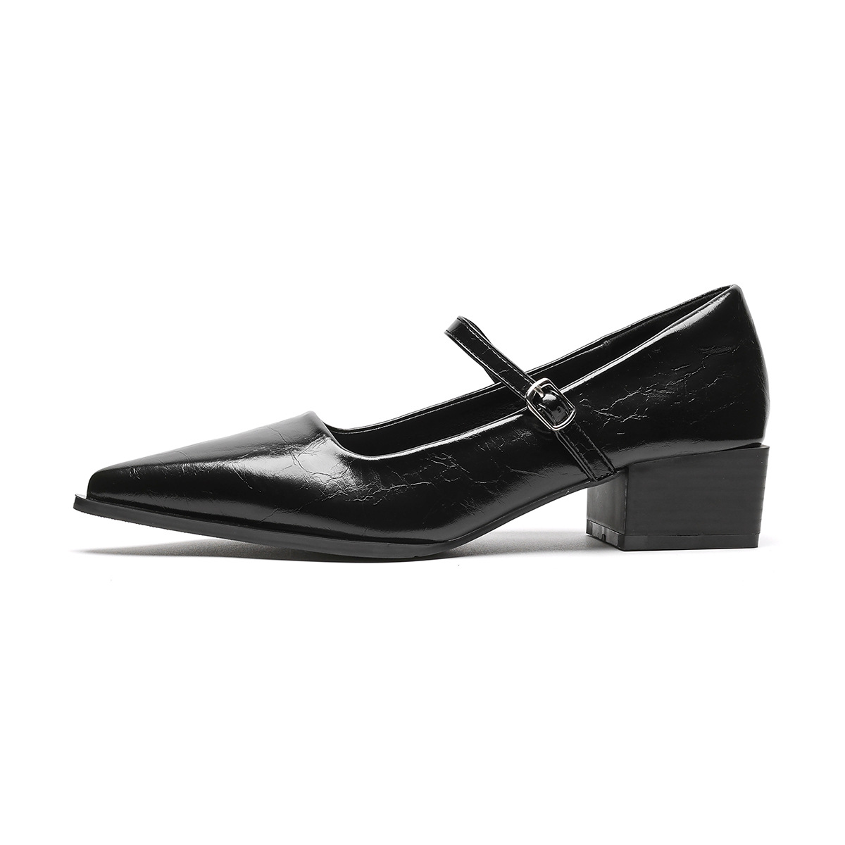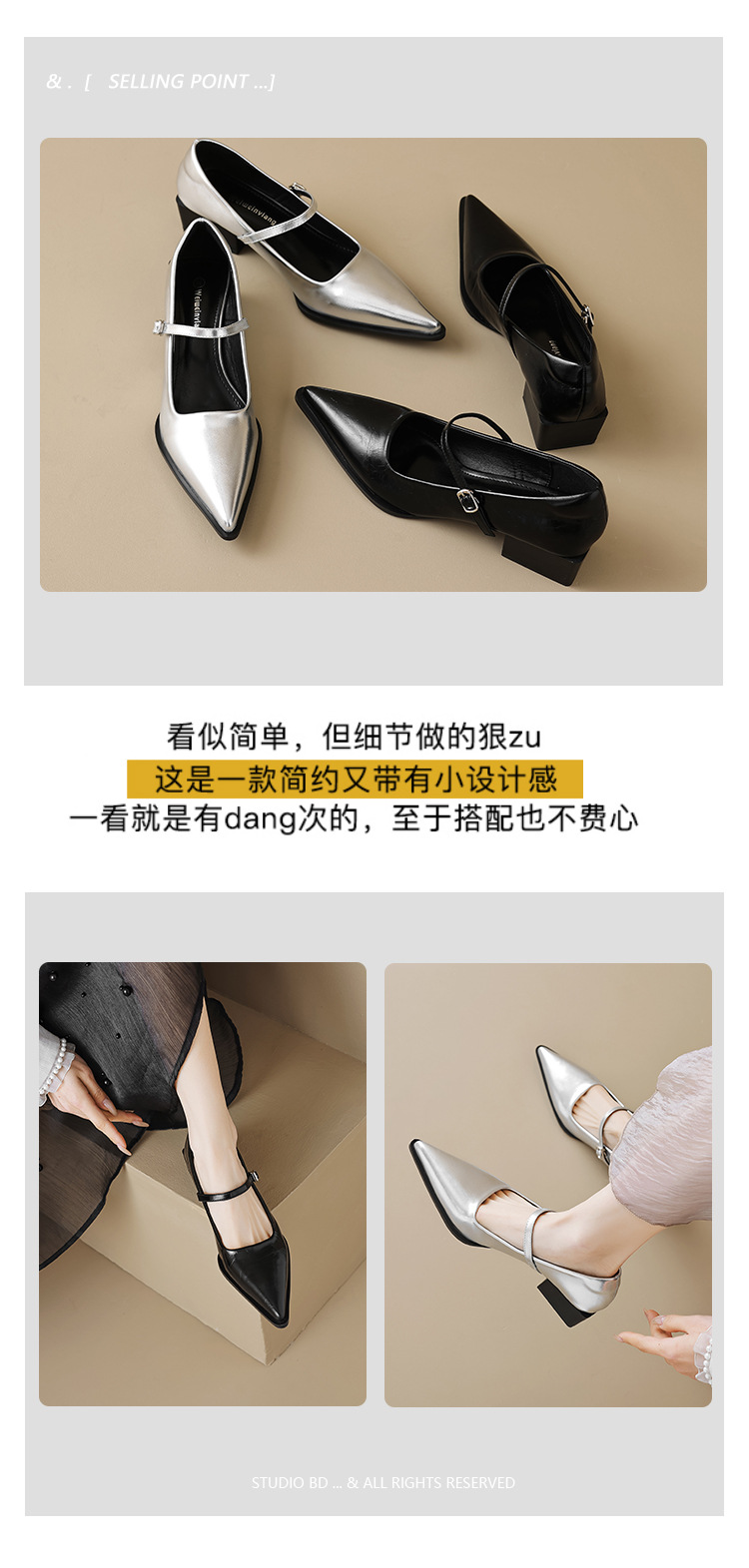 뾰족한 발가락 2025 봄 가을 레트로 우아한 통근 청키 힐 메리 제인 신발 여성용 가죽 신발스토어 가기
