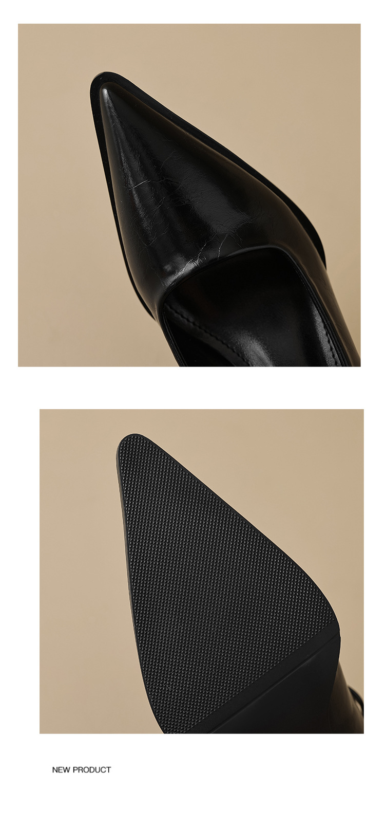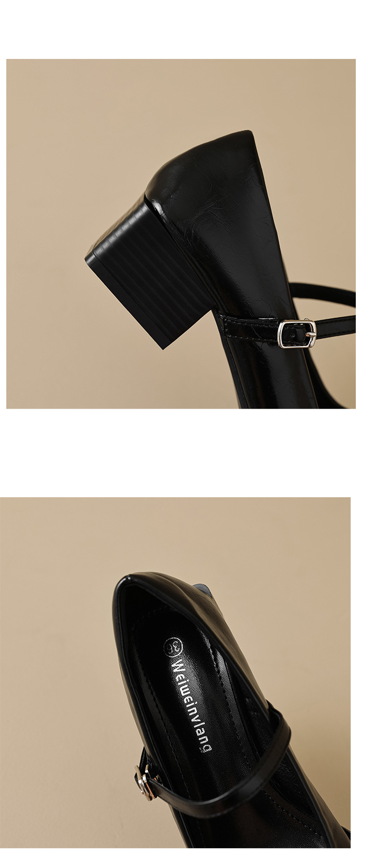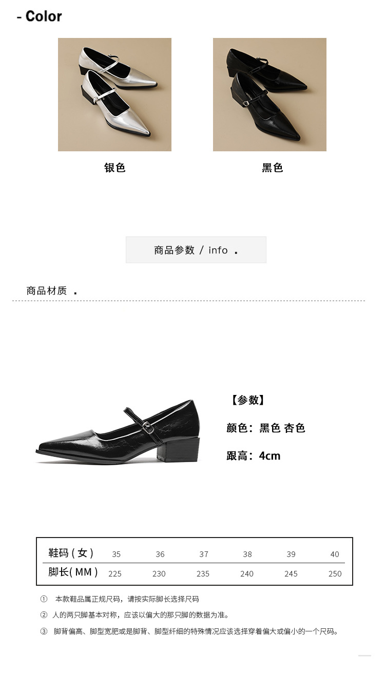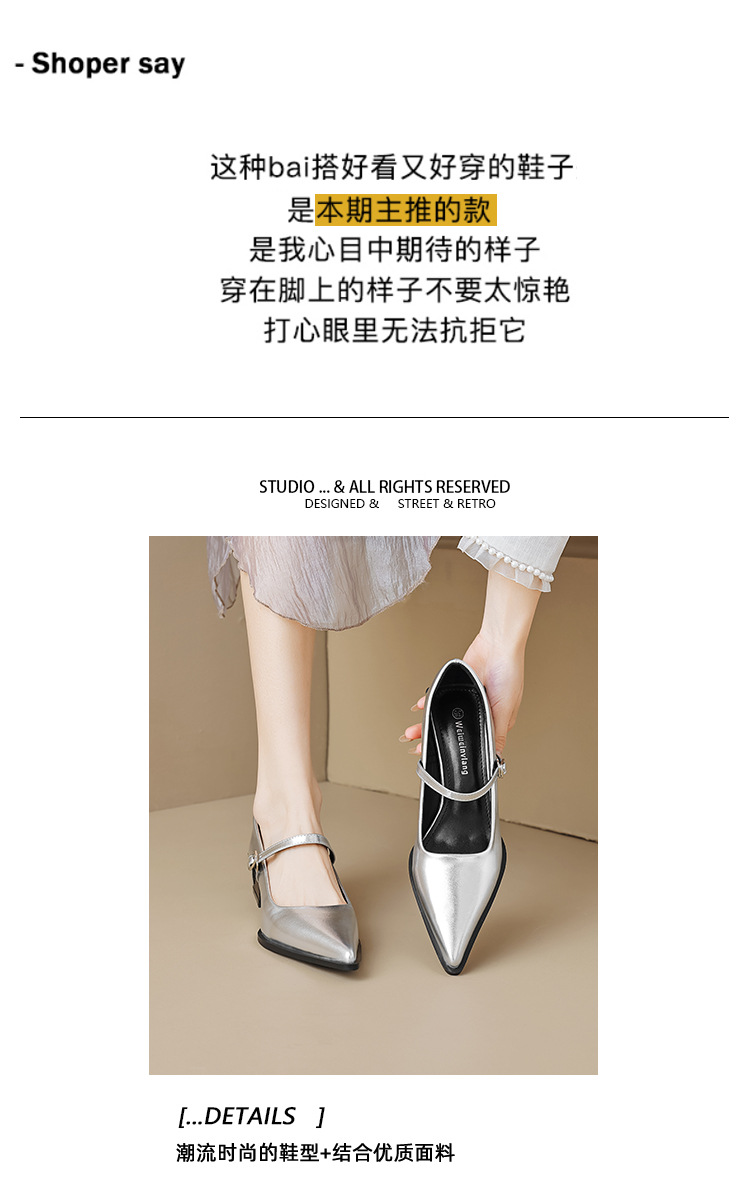 뾰족한 발가락 2025 봄 가을 레트로 우아한 통근 청키 힐 메리 제인 신발 여성용 가죽 신발스토어 가기