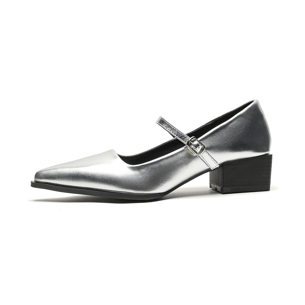 뾰족한 발가락 2025 봄 가을 레트로 우아한 통근 청키 힐 메리 제인 신발 여성용 가죽 신발