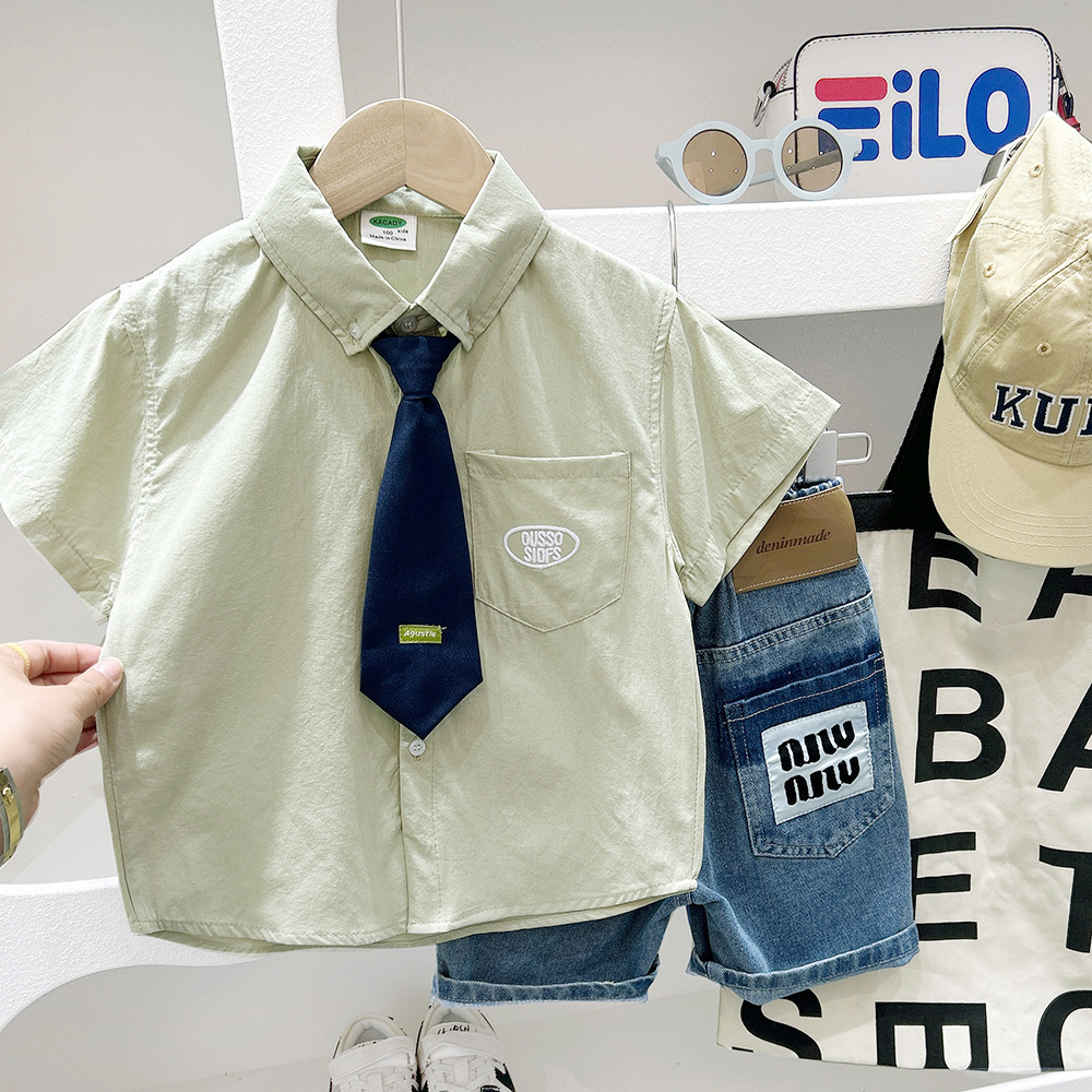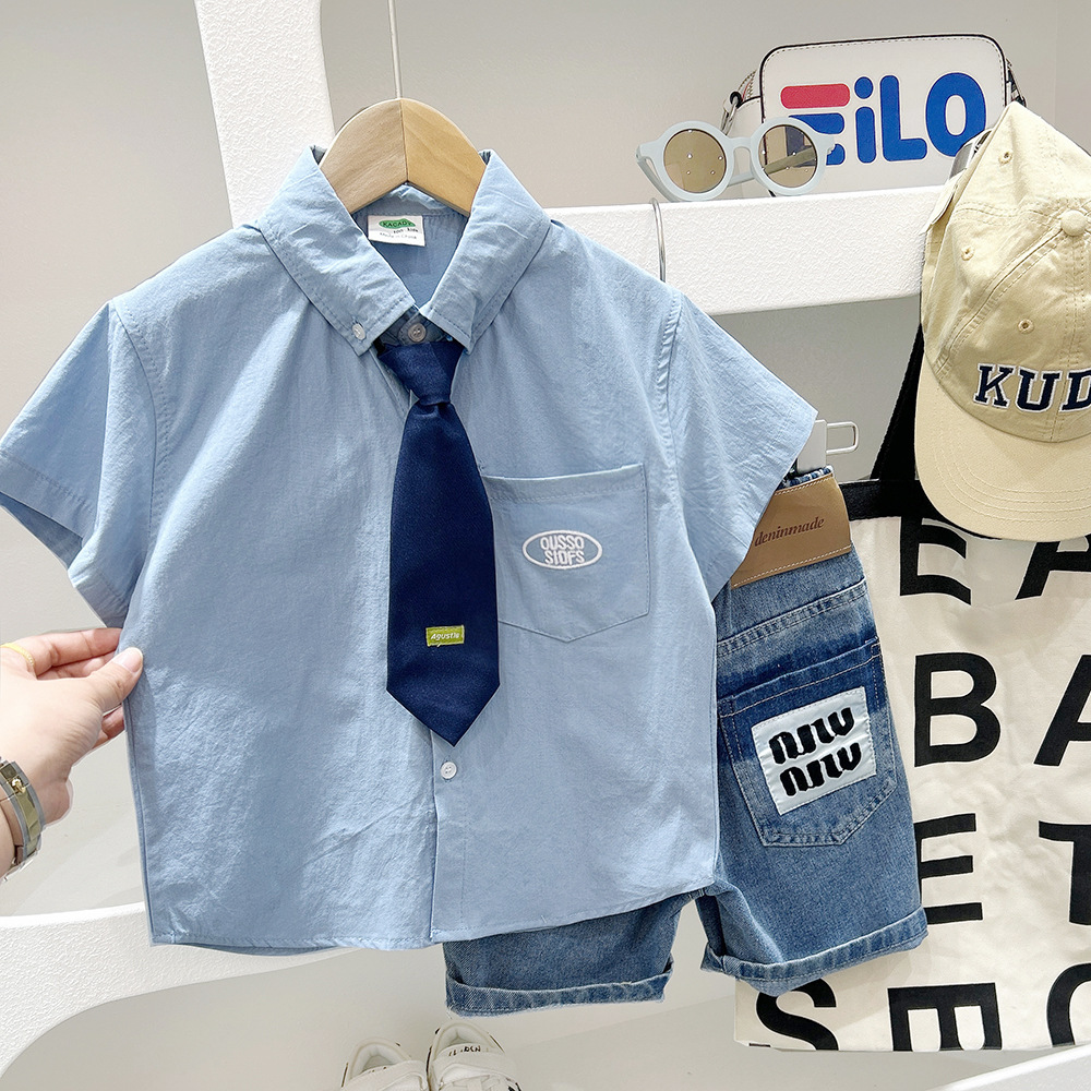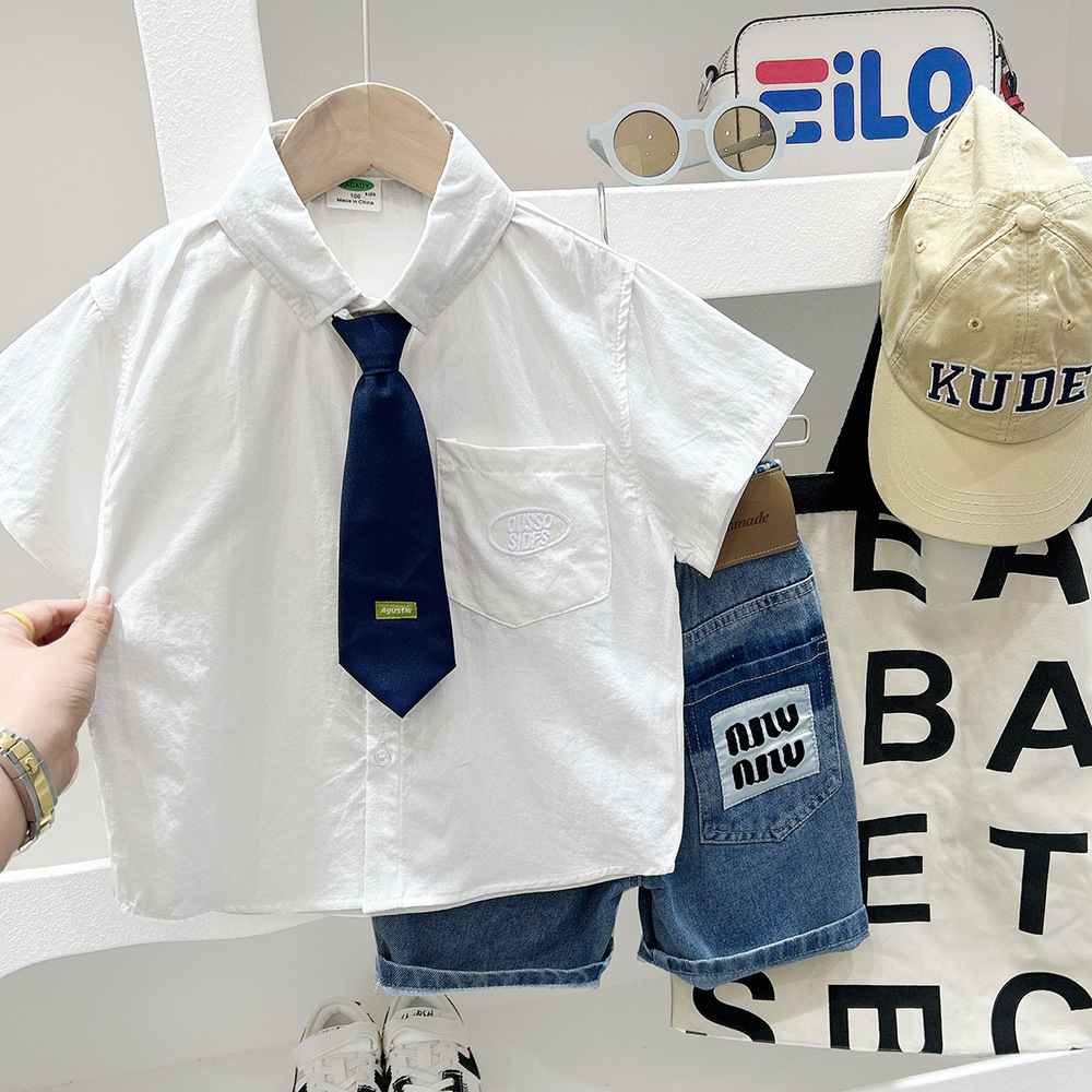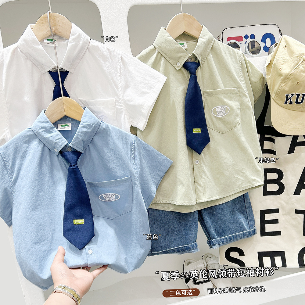 남자들의 여름 반팔 셔츠 2025 여름 대학 반팔 유행 셔츠 넥타이 트렌디