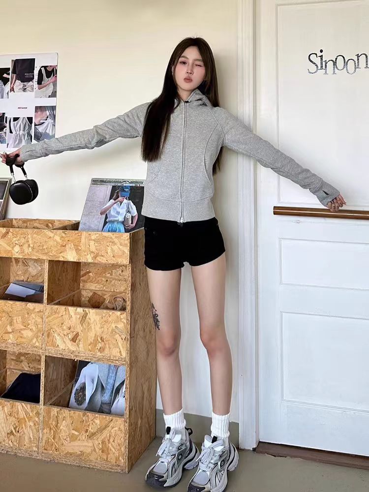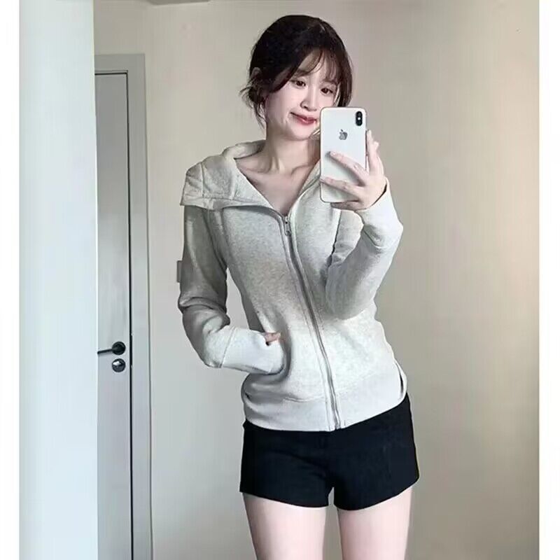 코트 카디건 2025 봄과 가을 새로운 슬림 핏 탑 핑크 후드 스웨터 슬리밍 스포츠 요가 옷 지퍼스토어 가기