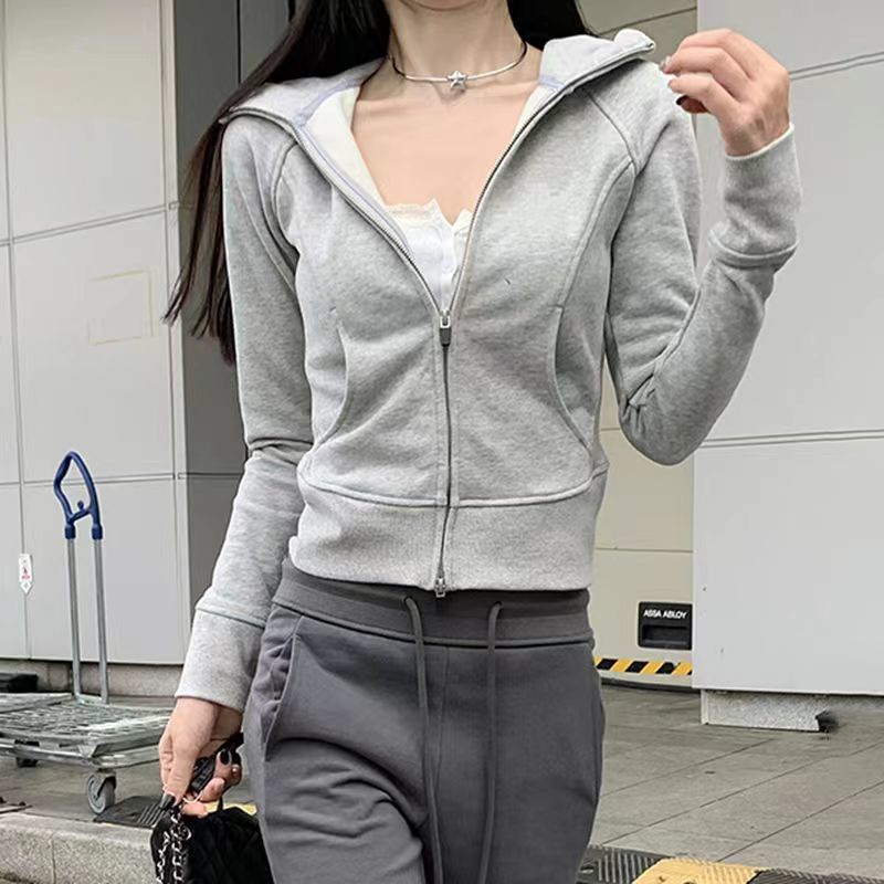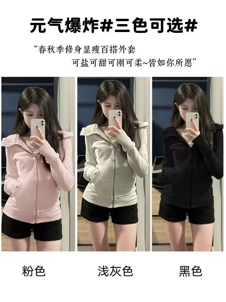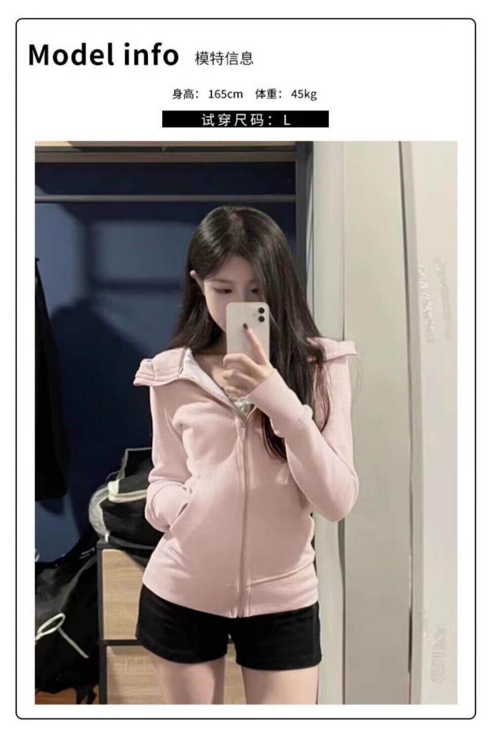 코트 카디건 2025 봄과 가을 새로운 슬림 핏 탑 핑크 후드 스웨터 슬리밍 스포츠 요가 옷 지퍼