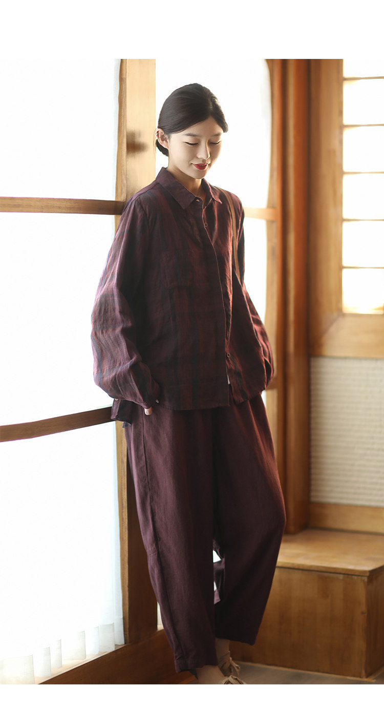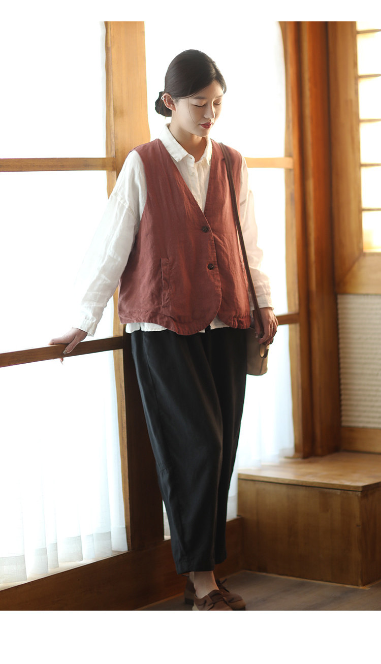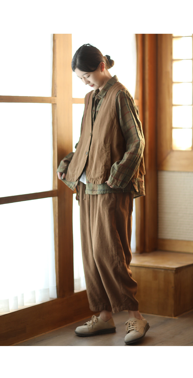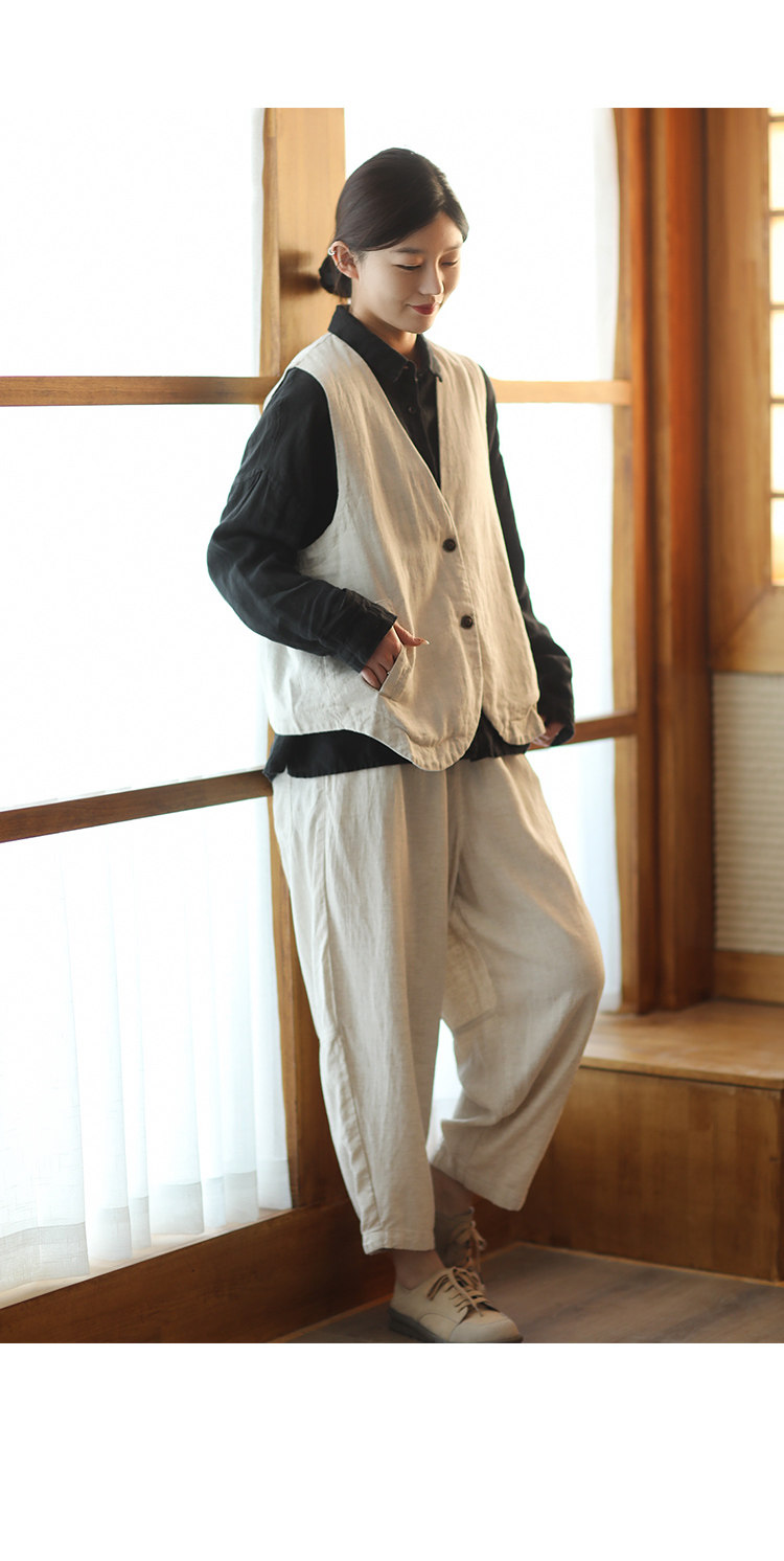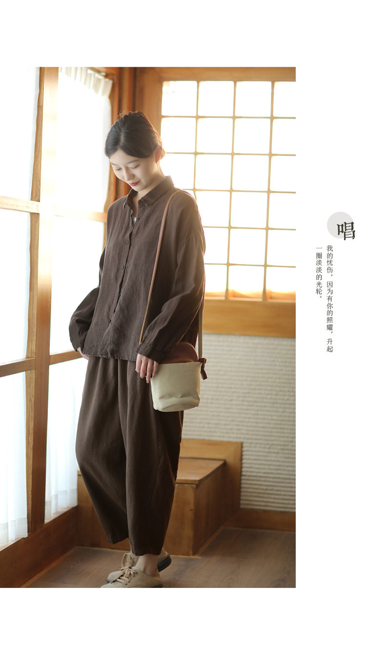 봄 2025 중공업 모래 세척 리넨 할란 바지 여성 레이스 업 느슨한 허리 슬리밍 캐주얼 바지 예술적 느슨한 린넨 바지스토어 가기