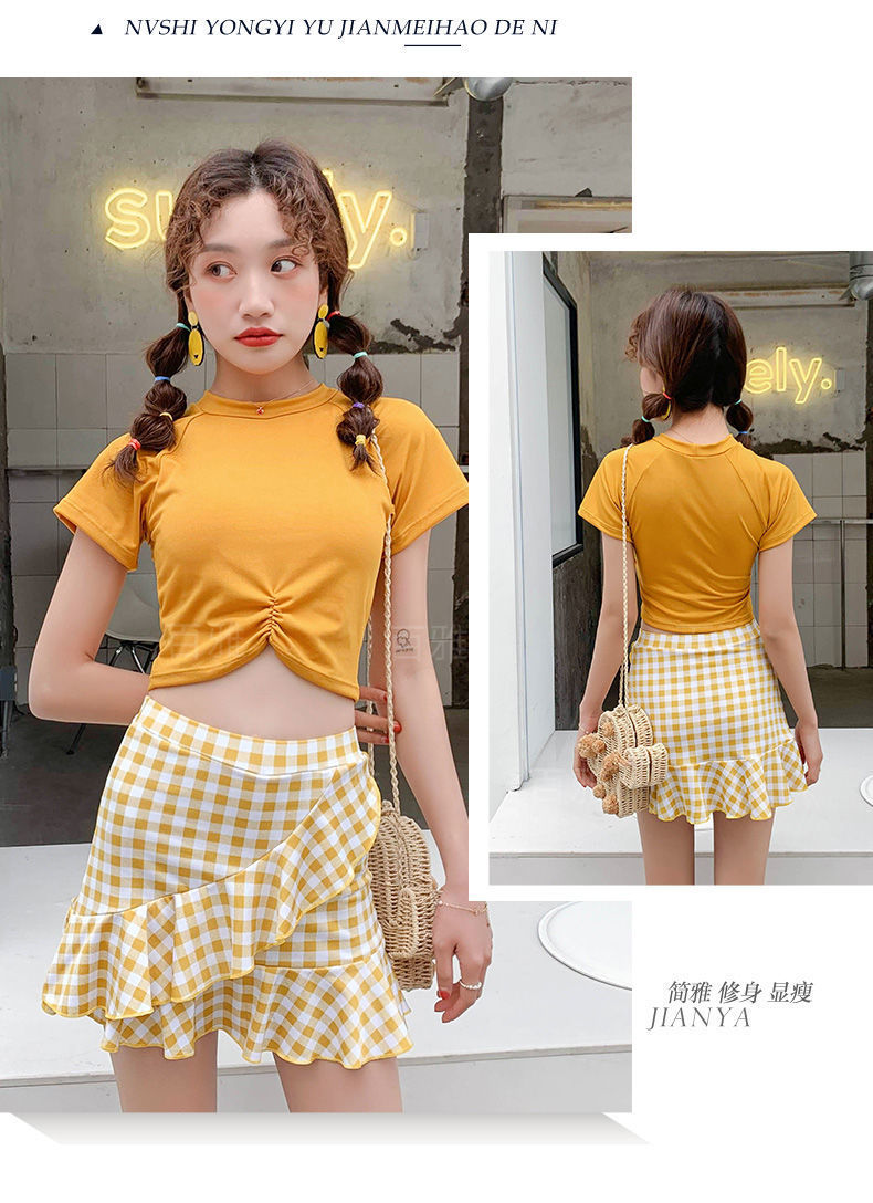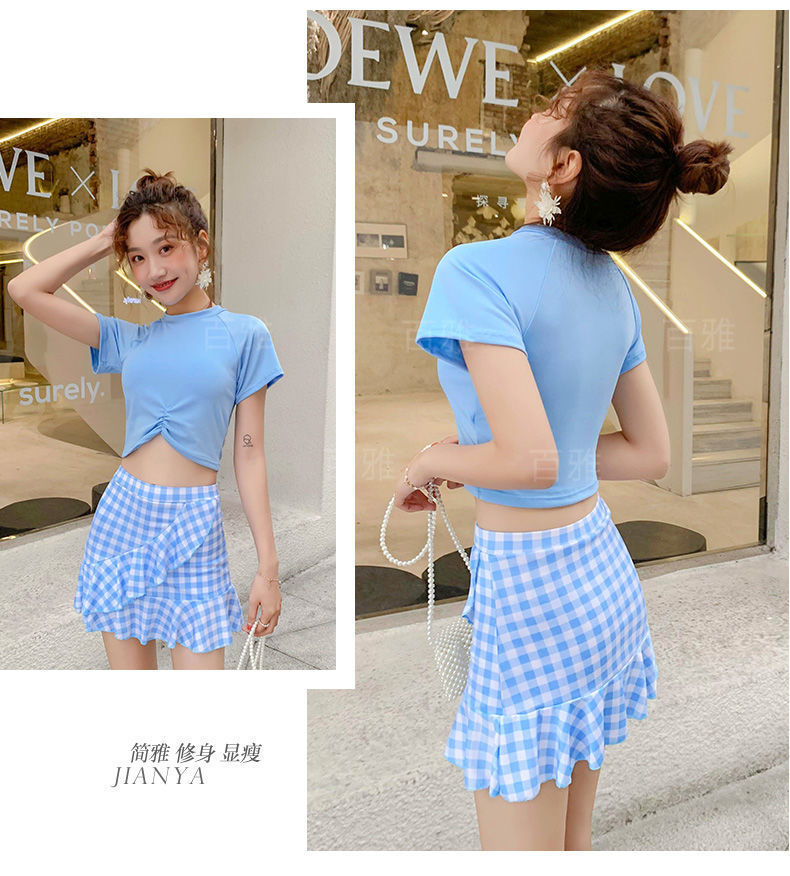 Baiya 수영복 여성의 새로운 복서 스커트 스타일 분할 여름 노출 방지 기능 소녀 학생 수영복 공장 공급스토어 가기