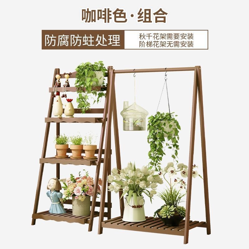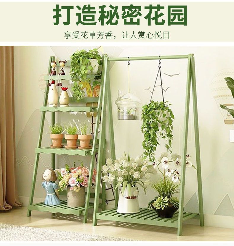 발코니 다층 꽃 선반 접히는 가정용 바닥 형 육체 꽃 냄비 랙 솔리드 우드 인터넷 축하 걸기스토어 가기