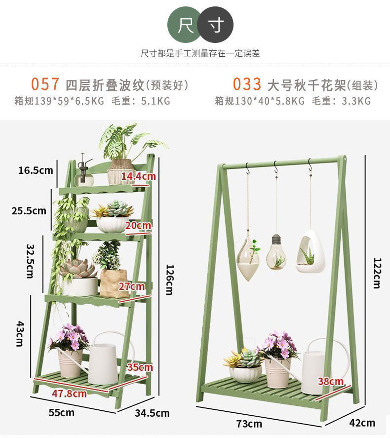발코니 다층 꽃 선반 접히는 가정용 바닥 형 육체 꽃 냄비 랙 솔리드 우드 인터넷 축하 걸기