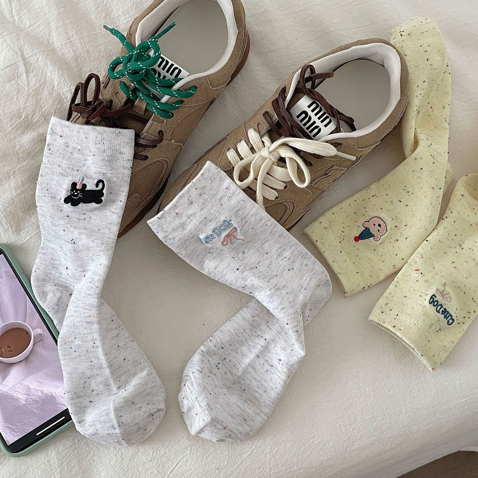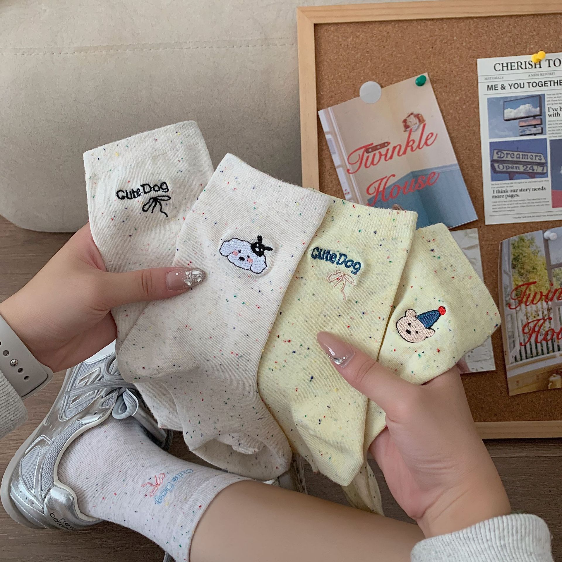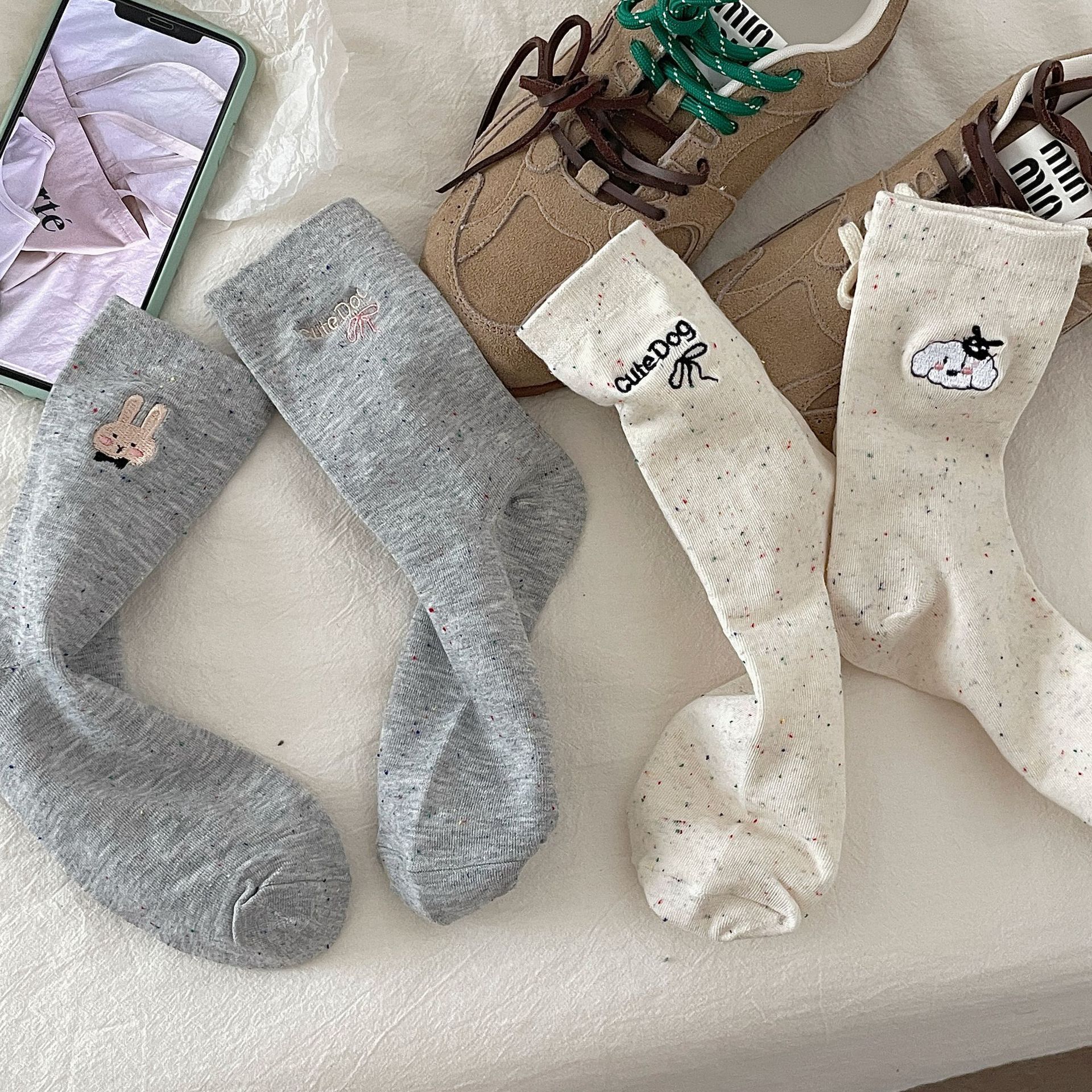 가을 새로운 AB 얼굴 자수 동물 활 만화 면 양말 포인트 원사 스택 양말 여성 한국 인 여성 양말스토어 가기
