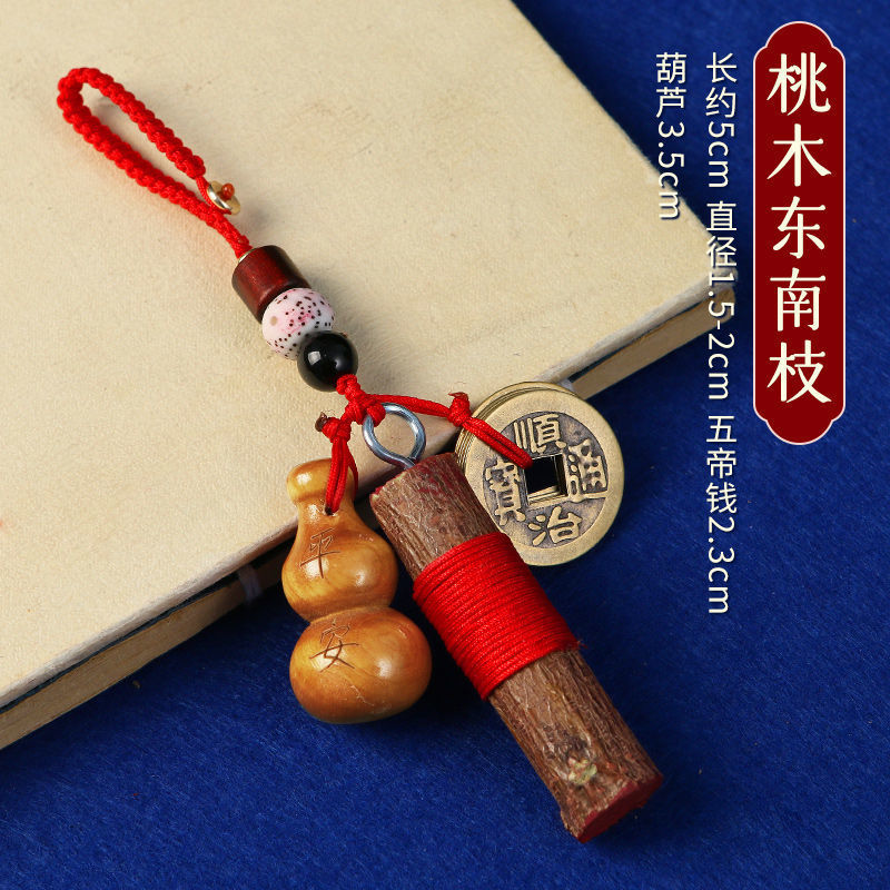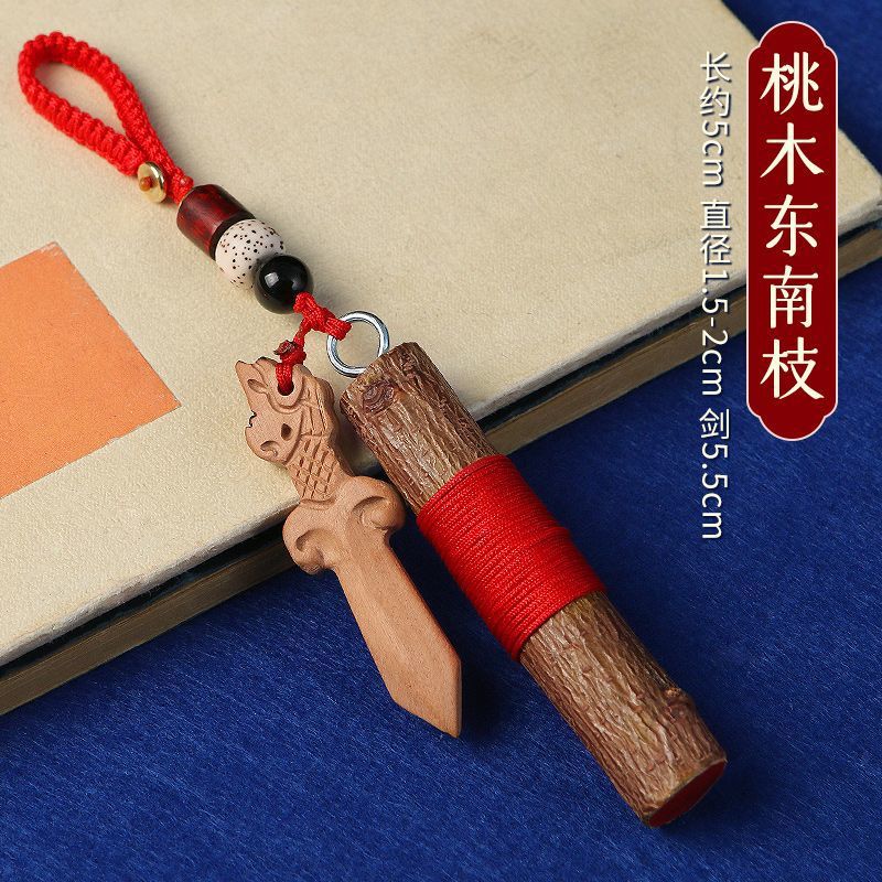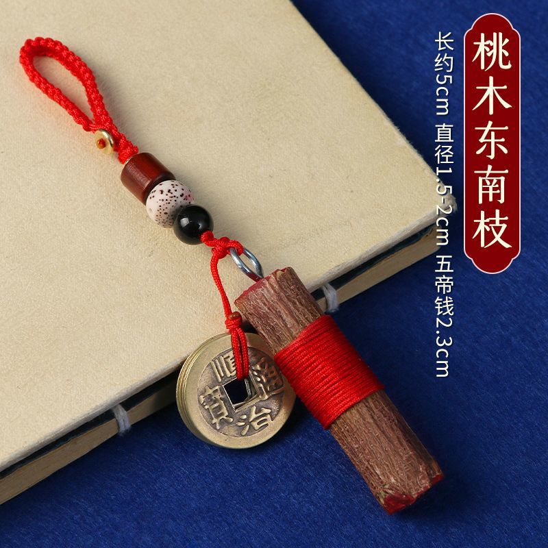 천연 동남 복숭아 나무 지점 Cinnabar 오래된 복숭아 나무 스틱 어린이 아기 집 침대 옆 자동차 운반 펜던트 검 거실