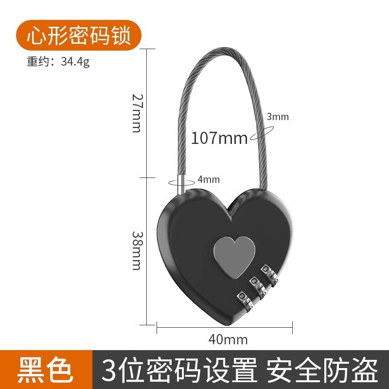 • 하트형 콤비네이션 자물쇠 [블랙]