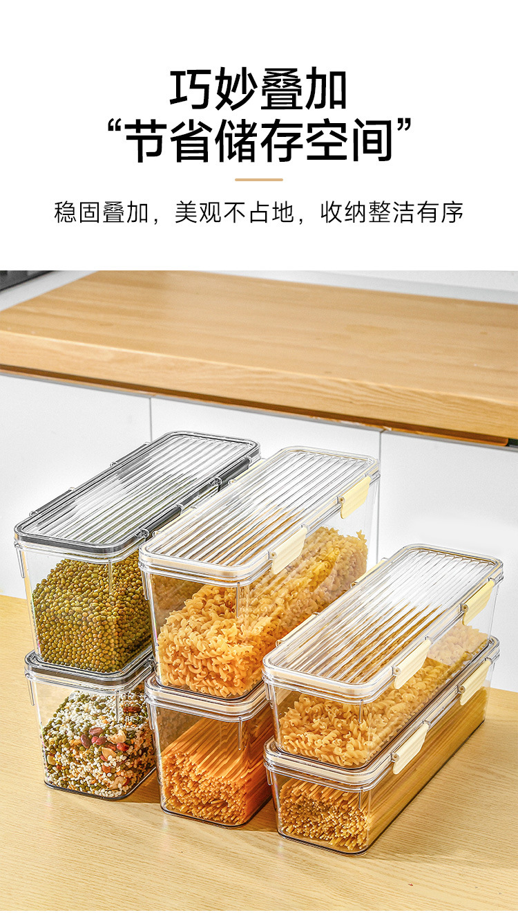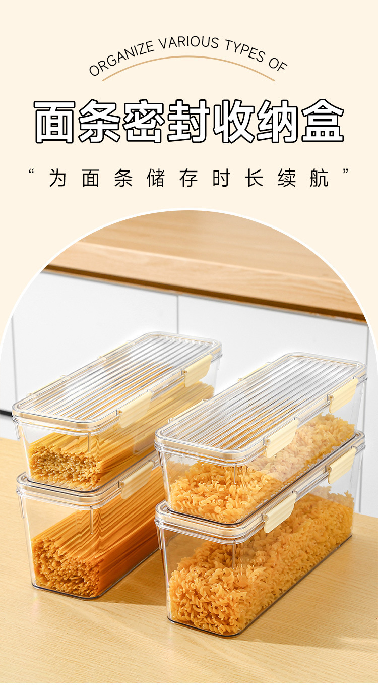 국수 보관 상자 직사각형 냉장고 주방 식품 등급 밀봉 된 보존 상자 뚜껑 굵은 곡물 스파게티 국수 상자