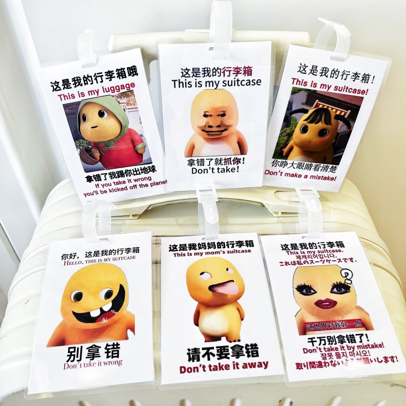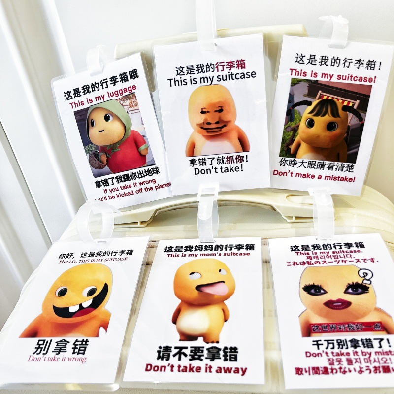 나는 우유 용 수하물 태그 상자 만화 잃어버린 스푸핑 학생 학교 배낭 재미있는 표현 가방 펜던트 신분증