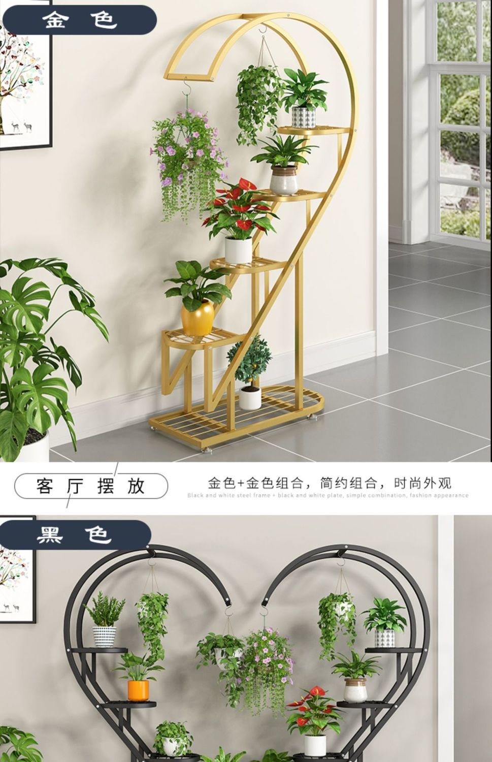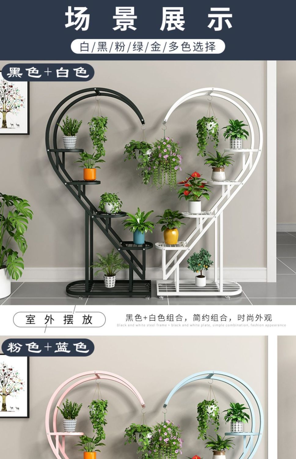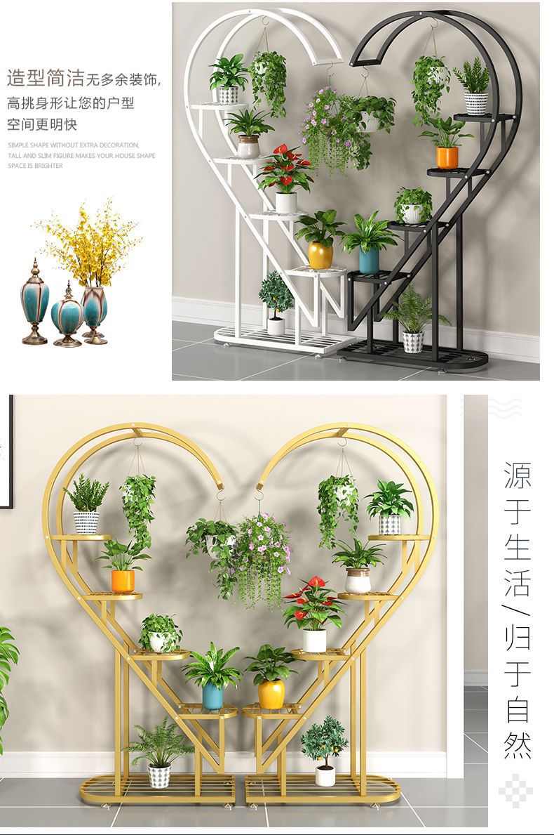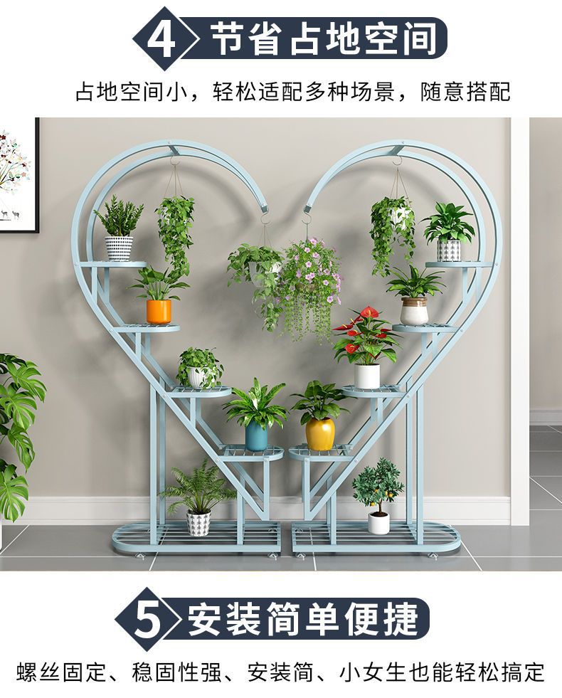 꽃 랙 발코니 다층 꽃 냄비 랙 거실 인터넷 축하 스토리지 랙 다층 장식 실내 철 하트 모양의 꽃 랙
