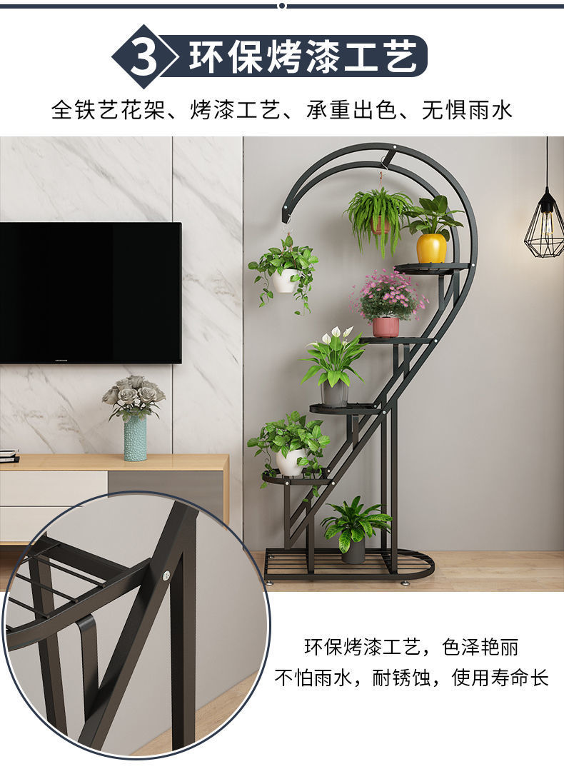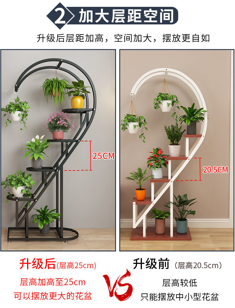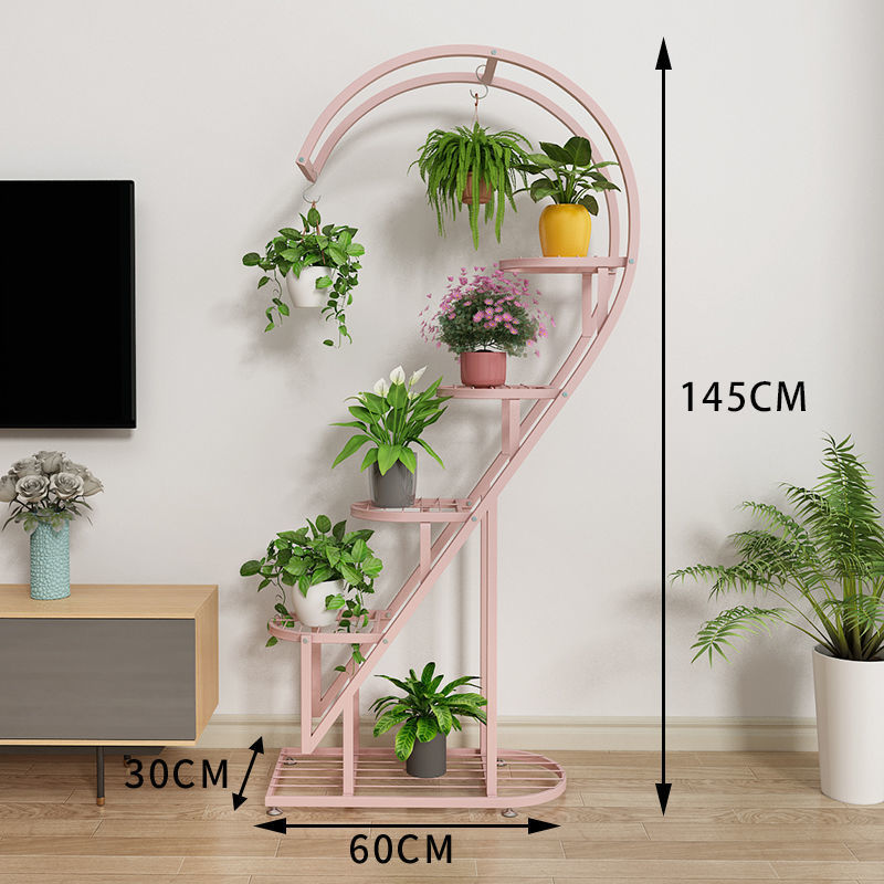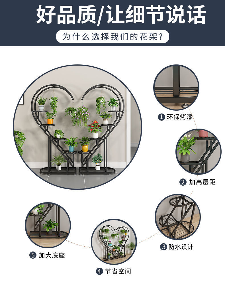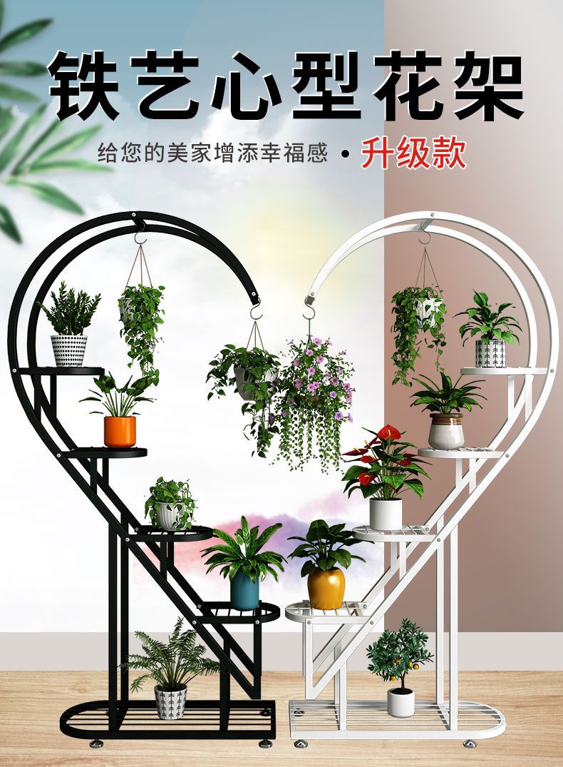 꽃 랙 발코니 다층 꽃 냄비 랙 거실 인터넷 축하 스토리지 랙 다층 장식 실내 철 하트 모양의 꽃 랙스토어 가기