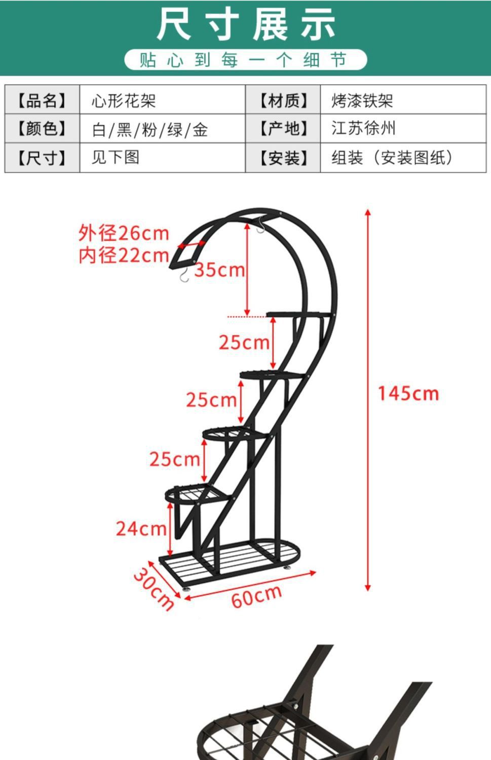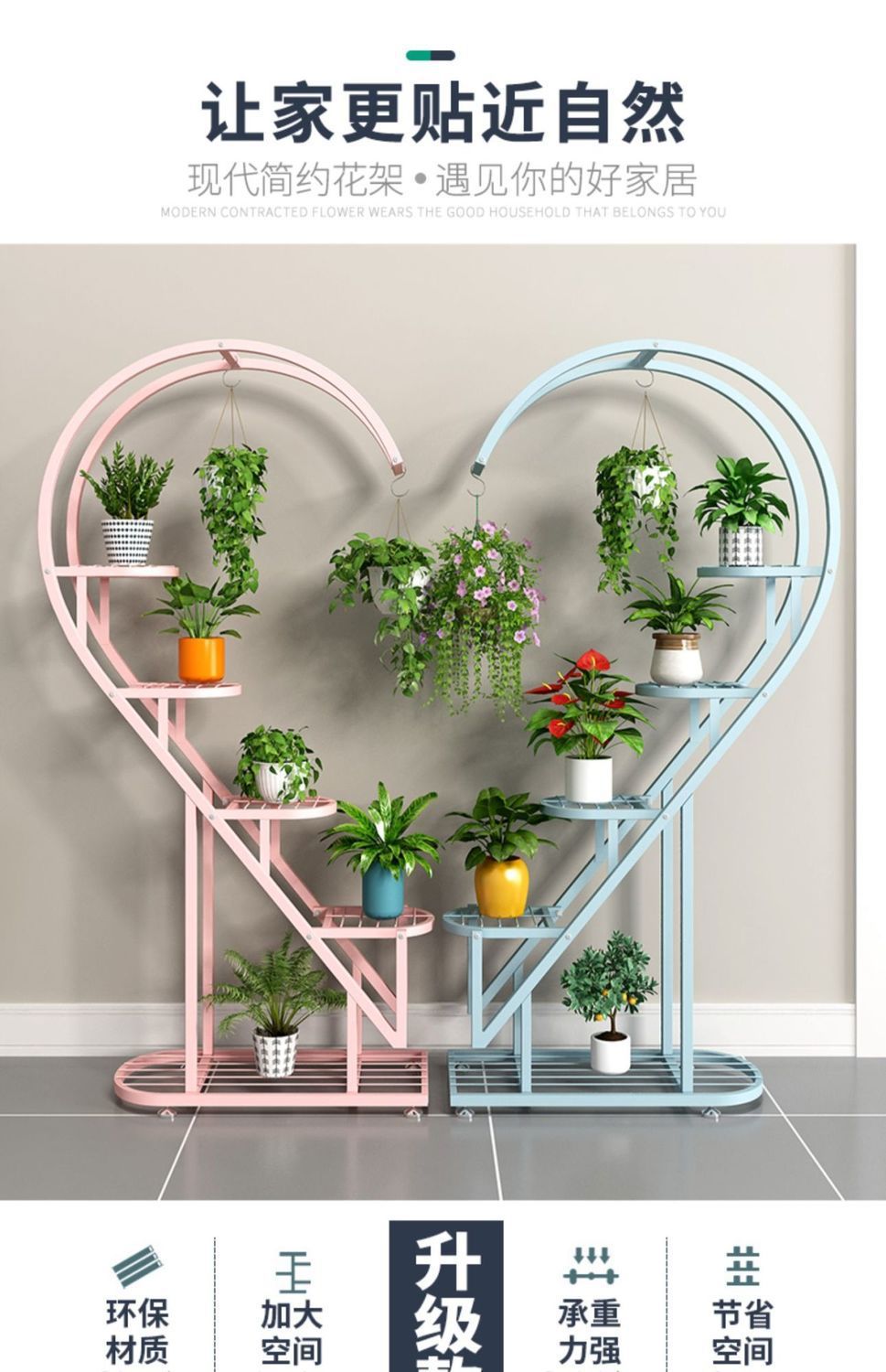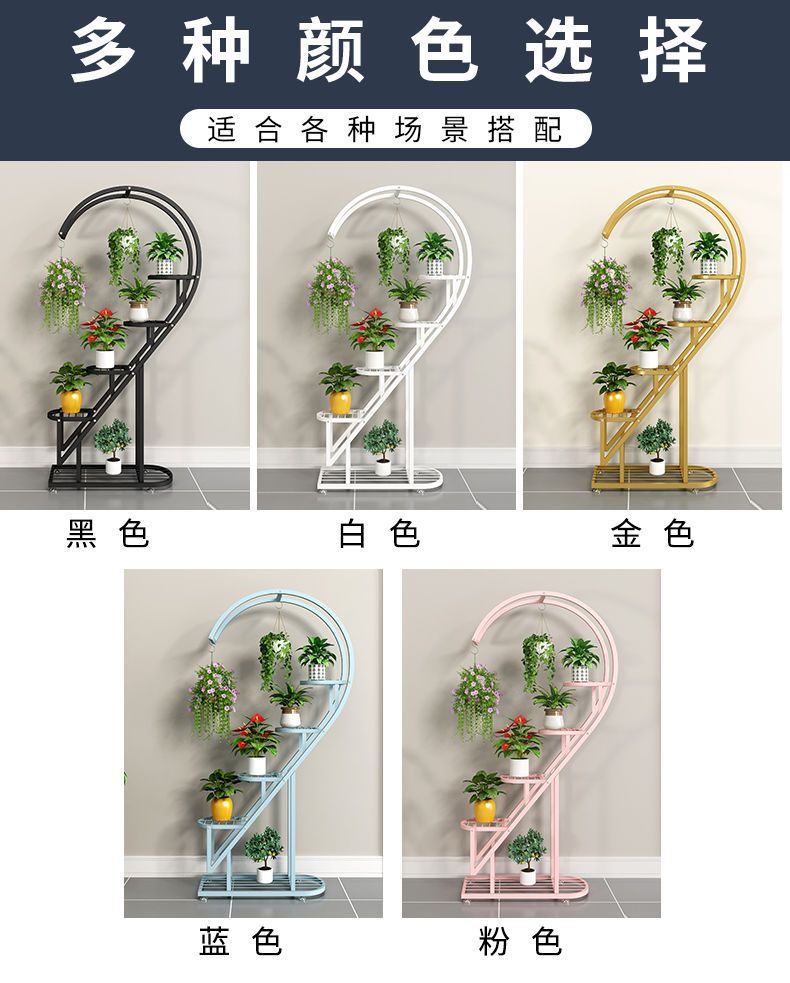 꽃 랙 발코니 다층 꽃 냄비 랙 거실 인터넷 축하 스토리지 랙 다층 장식 실내 철 하트 모양의 꽃 랙스토어 가기