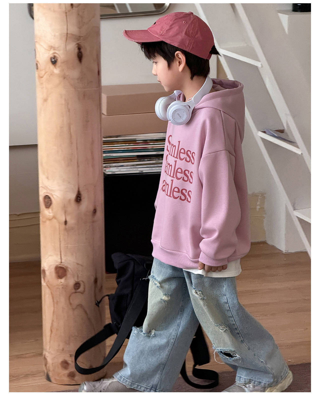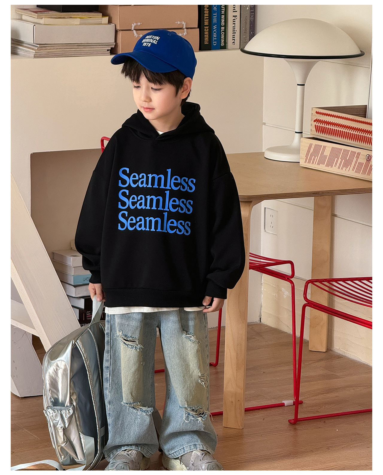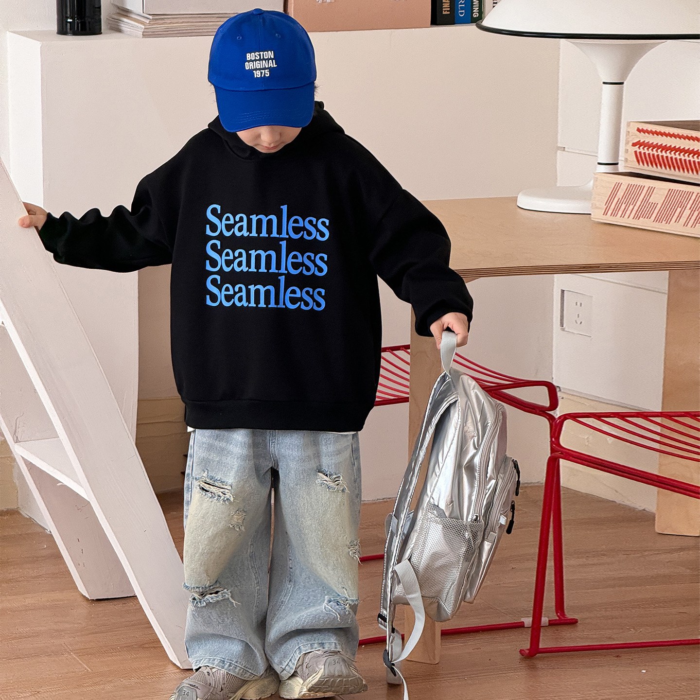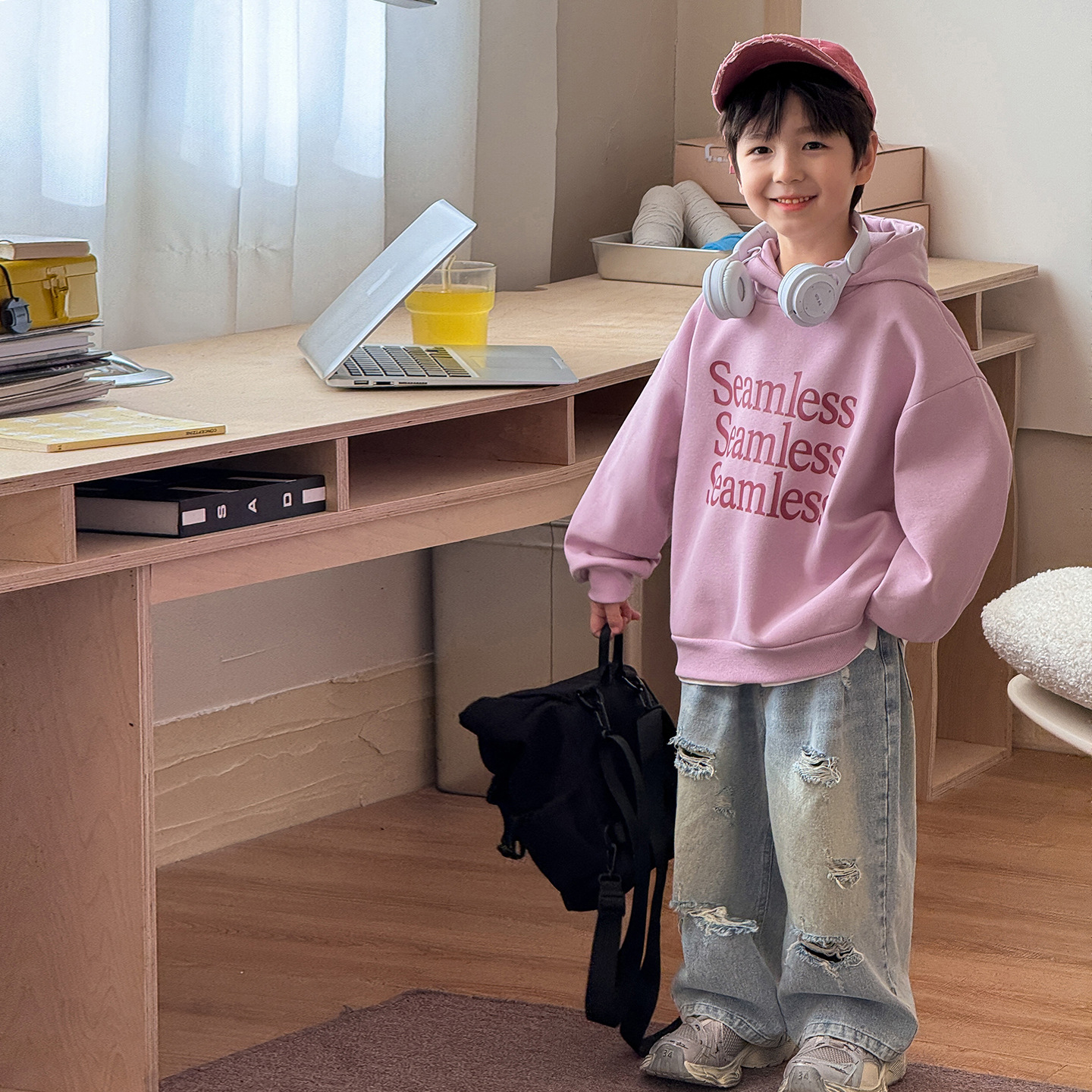 어린이 쿨 2025 년 소년 봄 후주 질리 어린이 착용 한국 편지 인쇄 탑 유행 후드 어린이 땀스토어 가기
