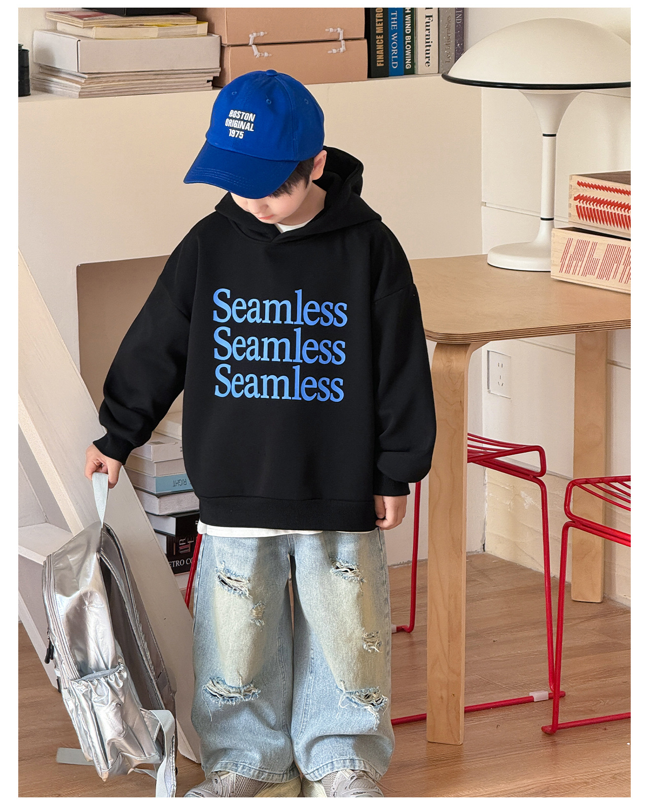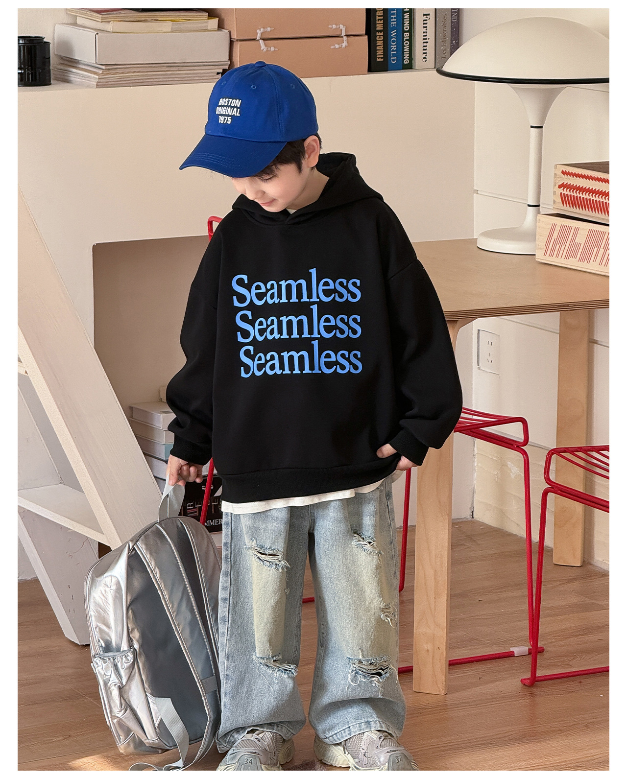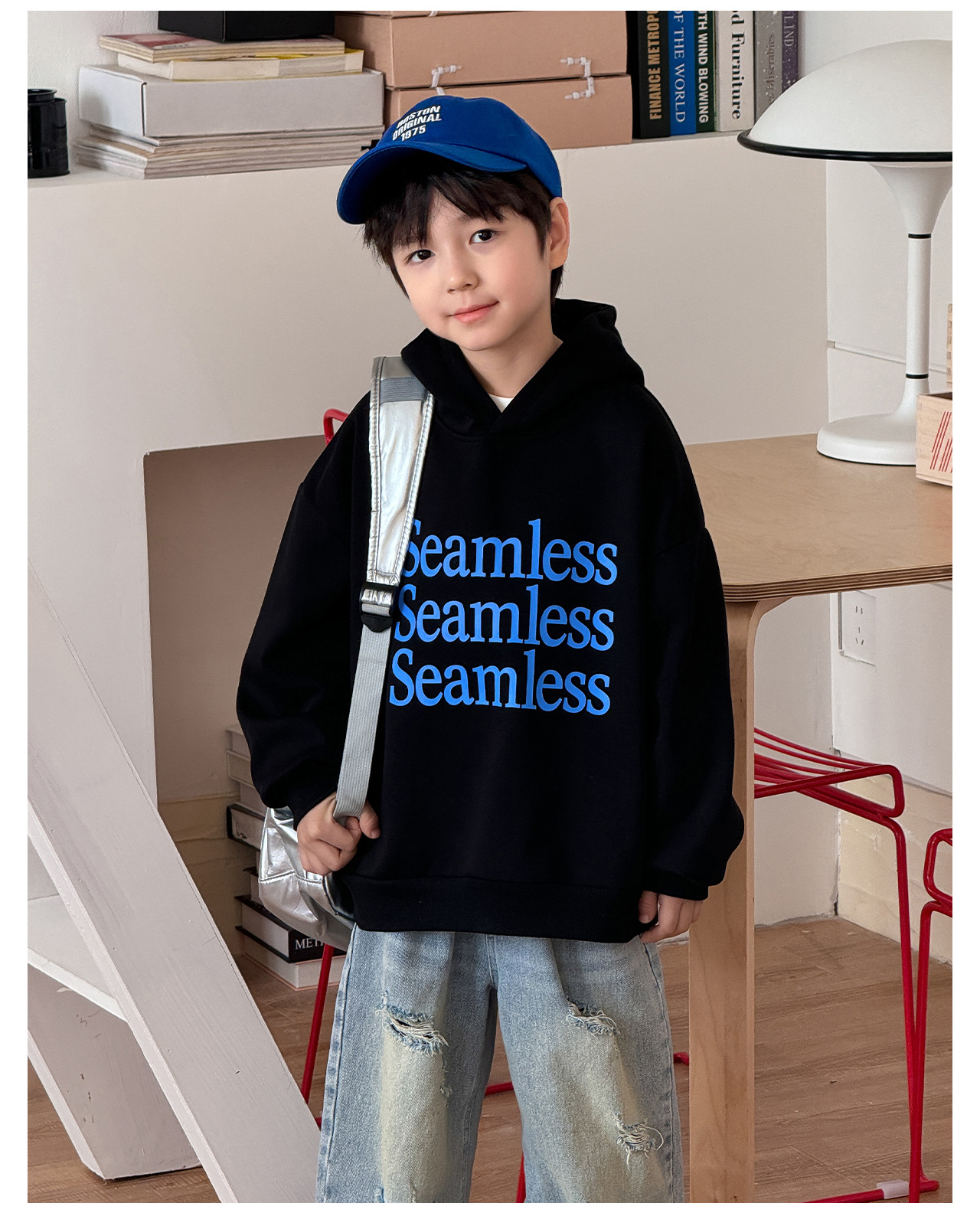 어린이 쿨 2025 년 소년 봄 후주 질리 어린이 착용 한국 편지 인쇄 탑 유행 후드 어린이 땀스토어 가기