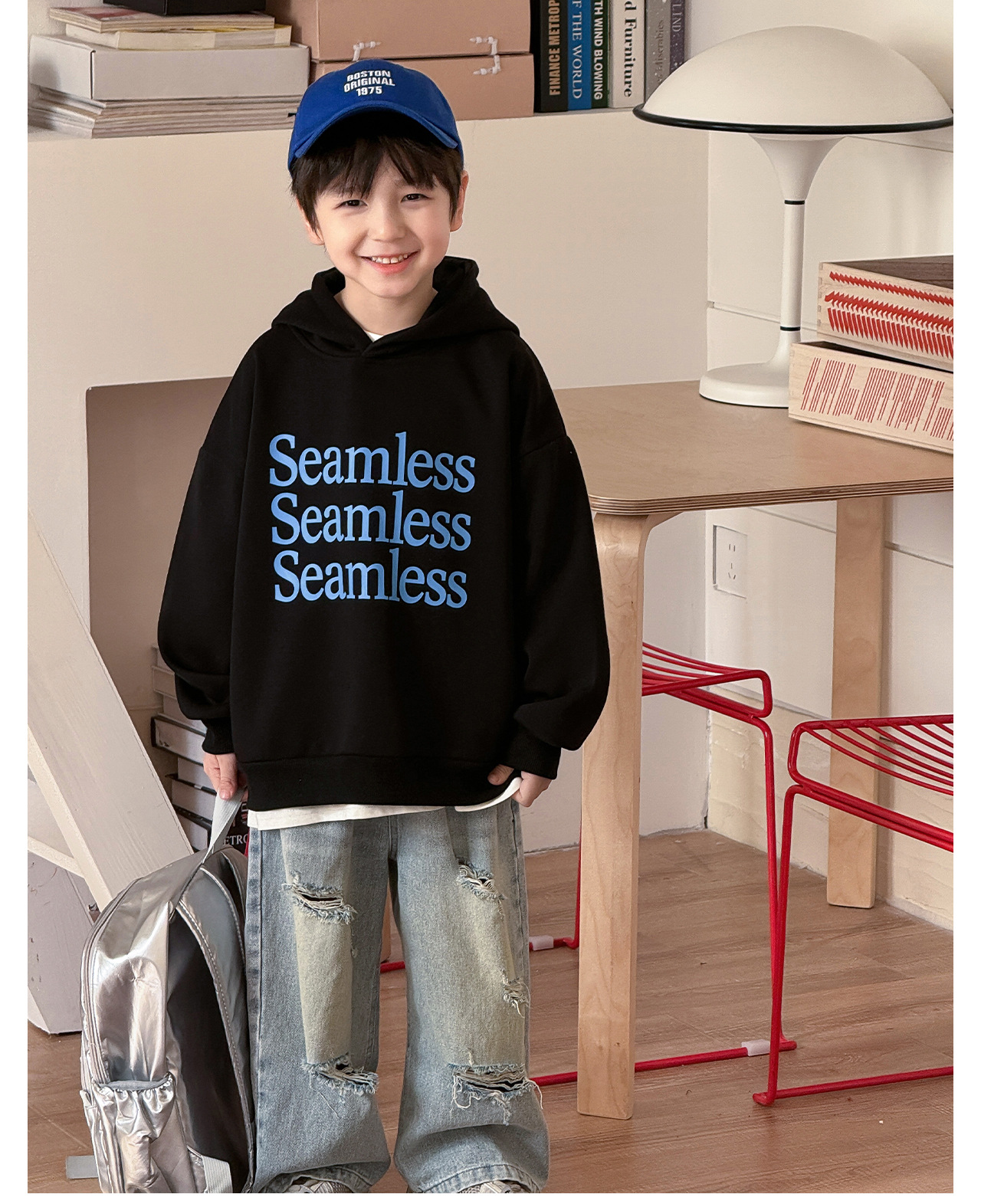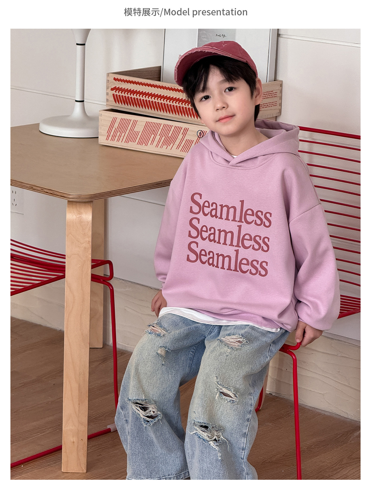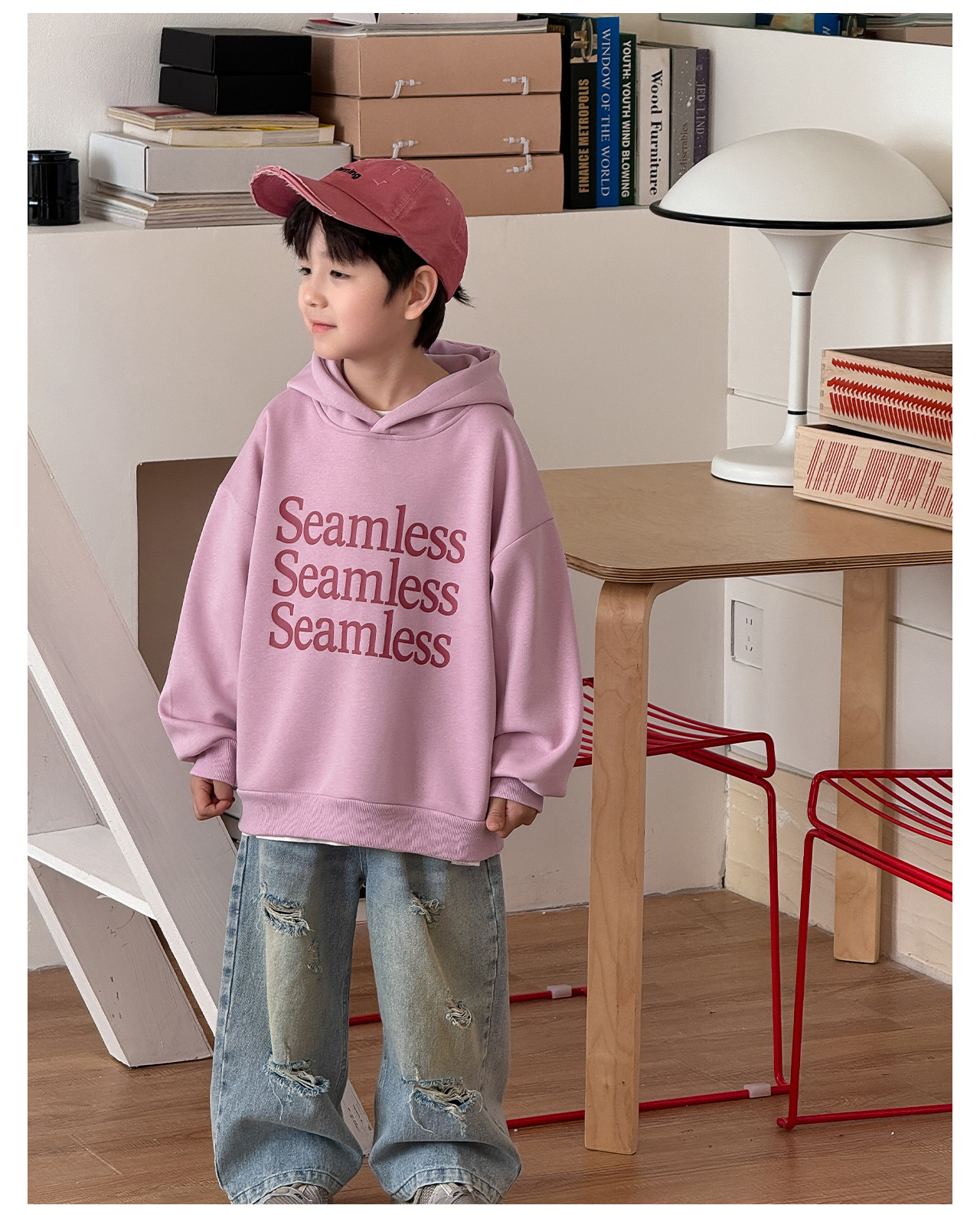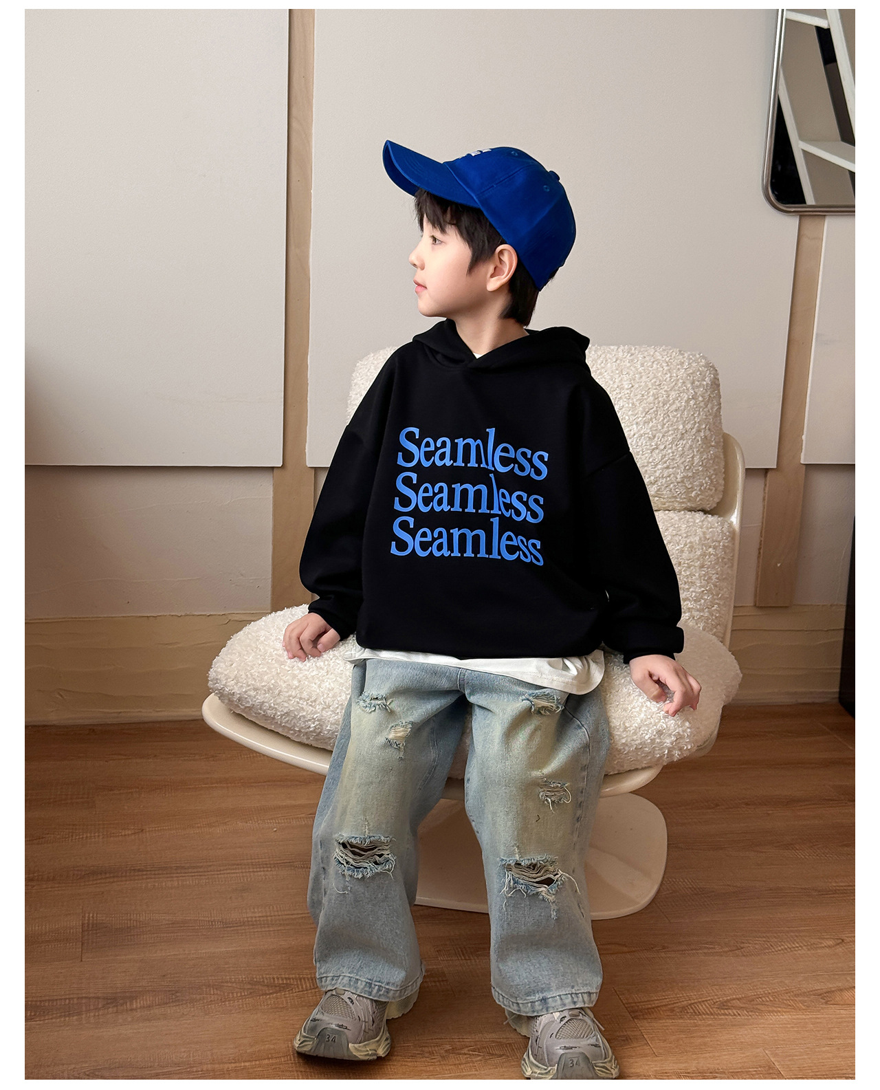 어린이 쿨 2025 년 소년 봄 후주 질리 어린이 착용 한국 편지 인쇄 탑 유행 후드 어린이 땀스토어 가기