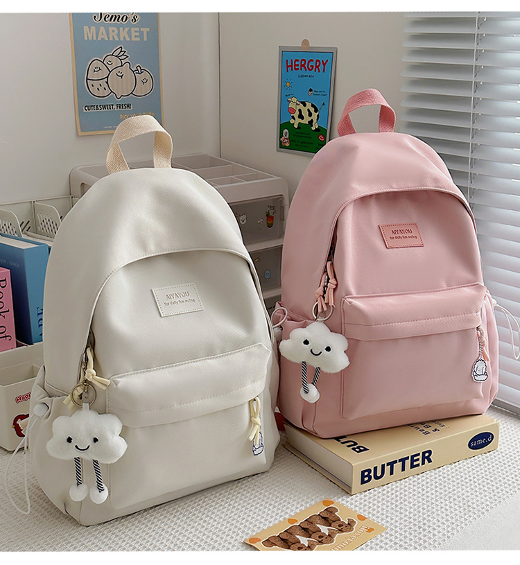 배낭 여성의 2025 새로운 고등학교 학생 대용량 솔리드 컬러 나일론 헝겊 가방 유행 배낭 남성용스토어 가기