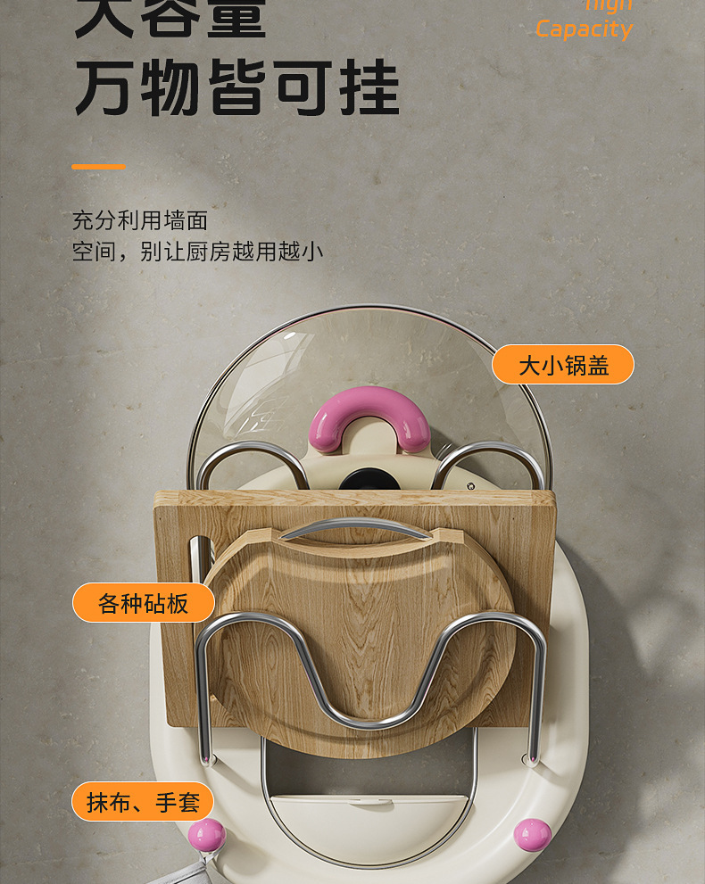 석션 컵 멀티 레이어 냄비 뚜껑 랙 벽 장착 배치 주방 스토리지 랙 벽 냄비 뚜껑 스토리지 랙 펀치 프리
