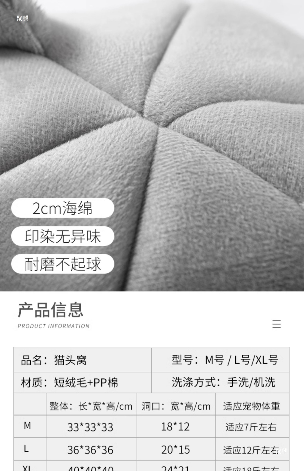 • [3배 더 두꺼운]✅고양이 머리 둥지/10°다음은 겨울에 적용됩니다.