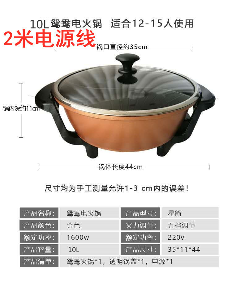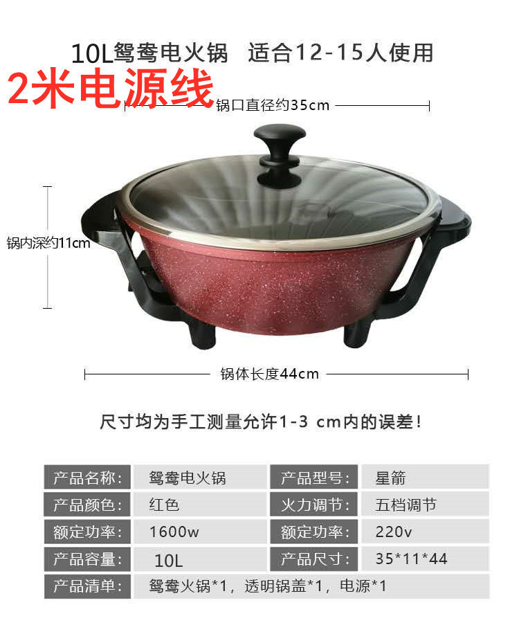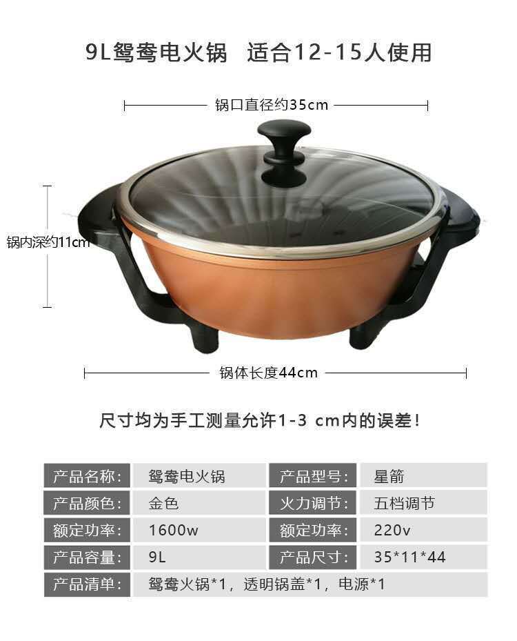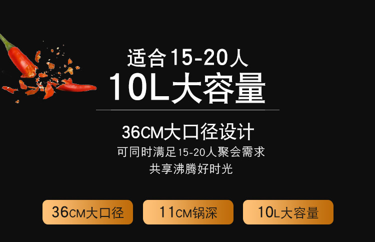 • 15L鸳鸯麦饭石20人用特大容量 配2米加长电源线