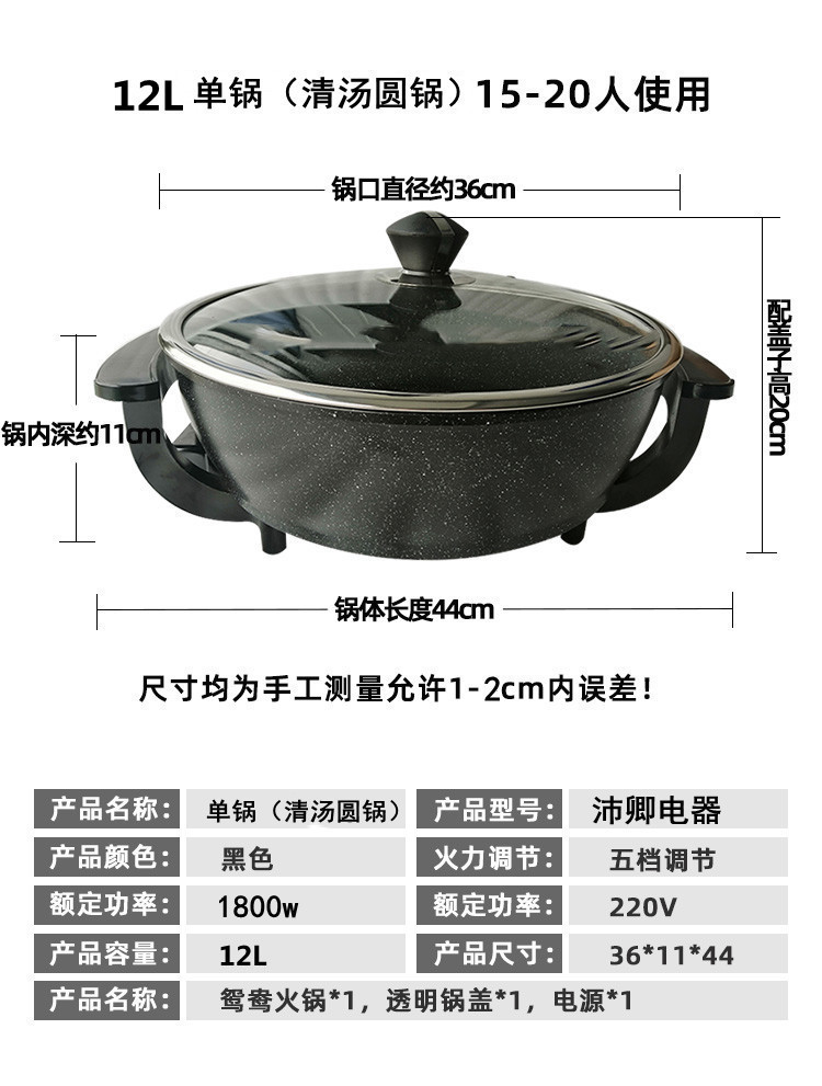 12L大容量鸳鸯电火锅电煮锅大口径电火火锅锅插电火锅8-10人