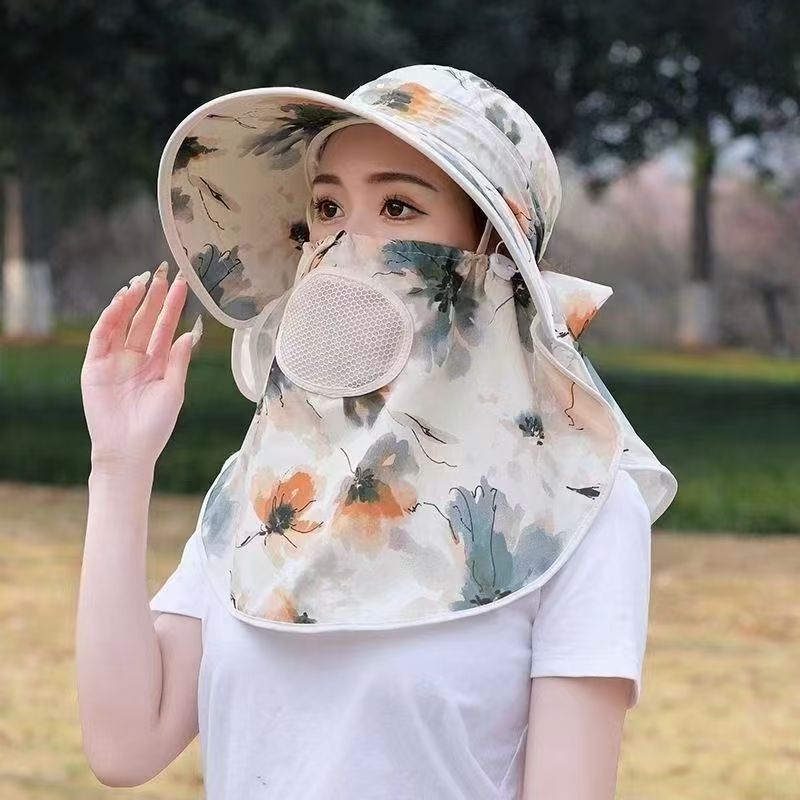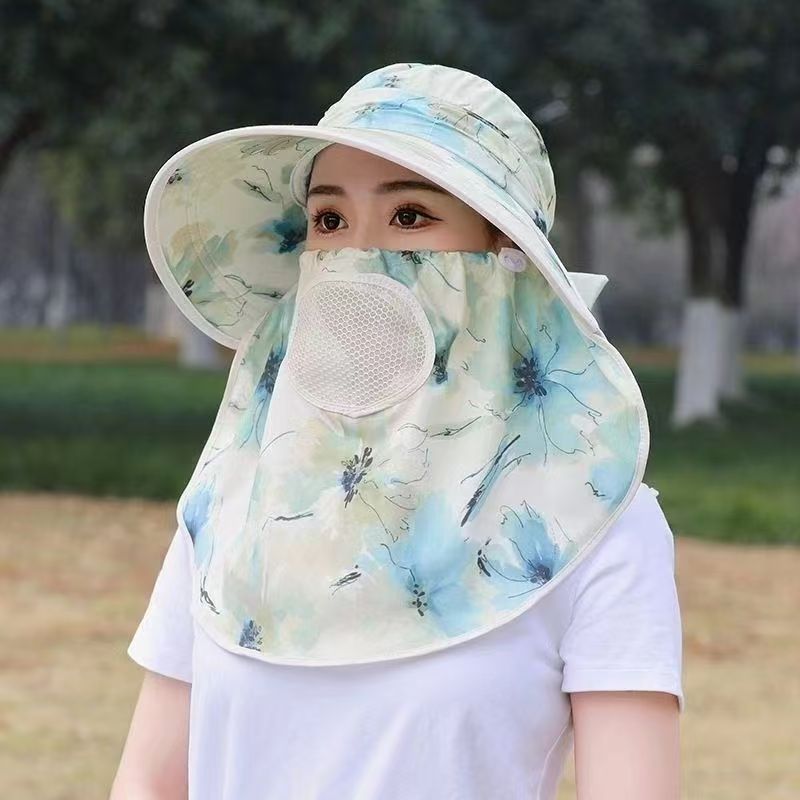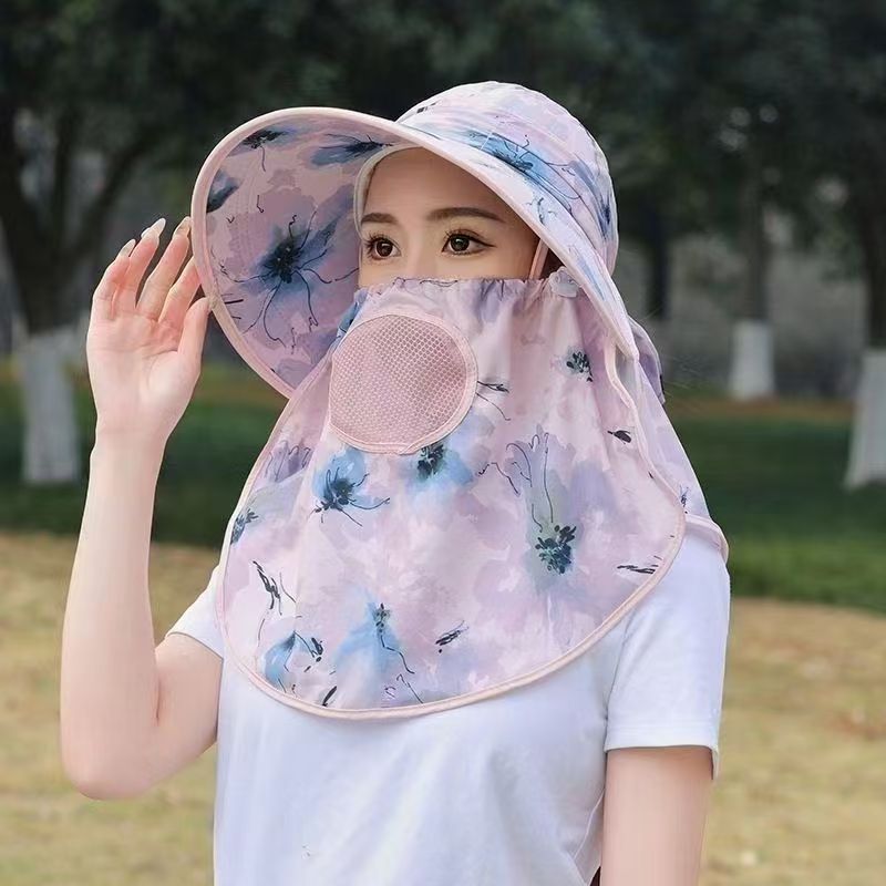 모자 여성의 여름 선 스크린 전체 얼굴 차양 큰 Eave 차 따기 모자 놀이 마스크 통기성 태양 모자 목도리 모자 목 보호