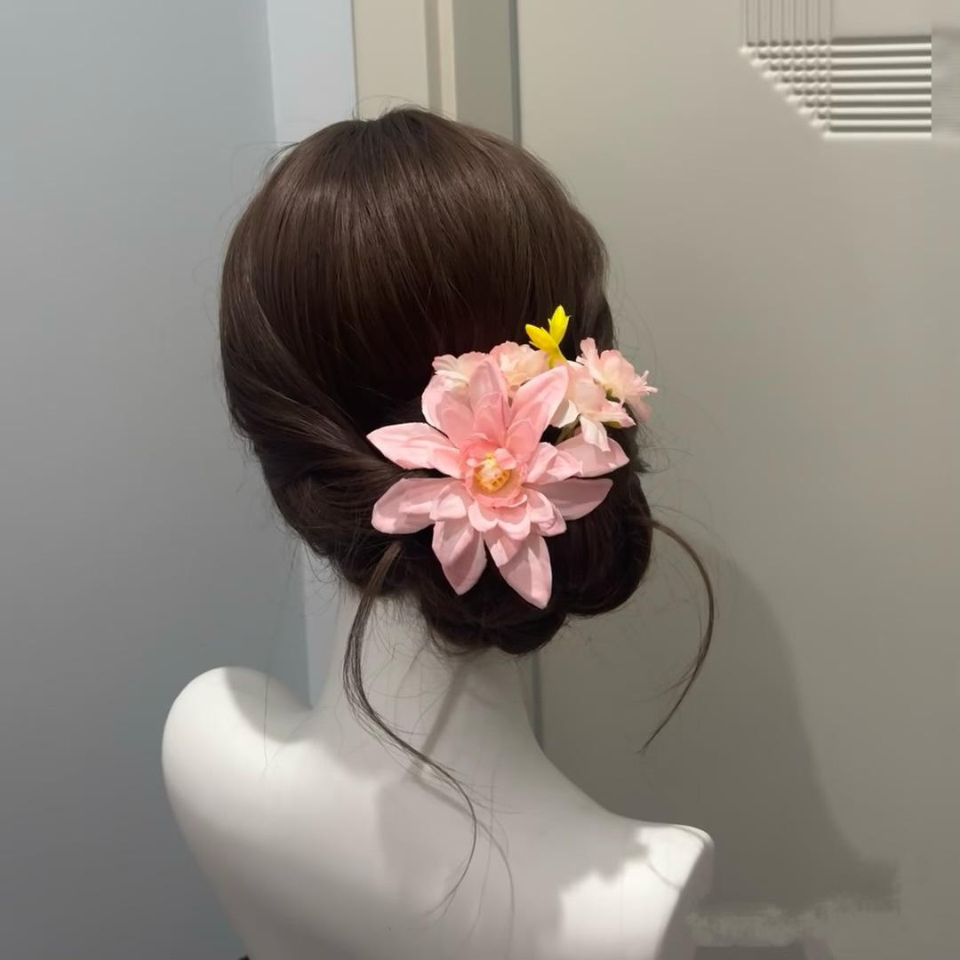 부드러운 여성의 달콤한 분위기 핑크 꽃 헤어핀 골동품 새로운 중국 스타일 헤어 시뮬레이션 꽃 헤어핀 헤어 액세서리스토어 가기