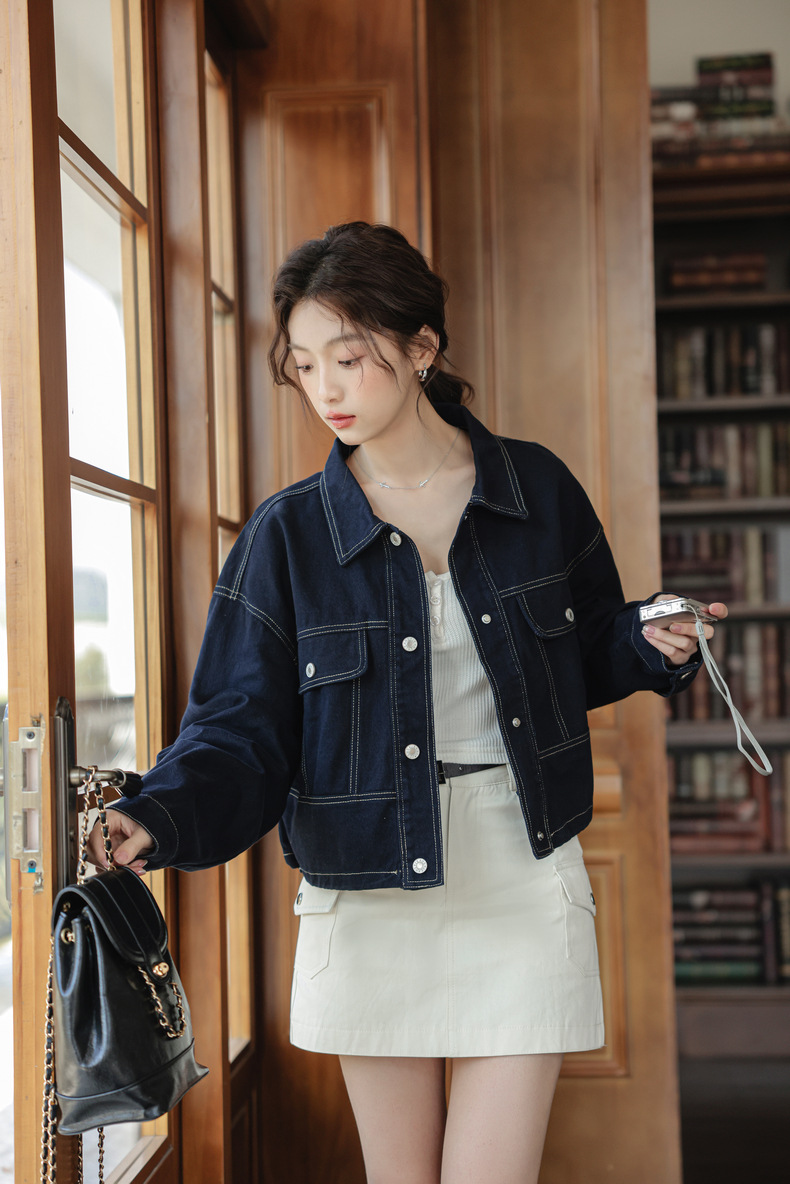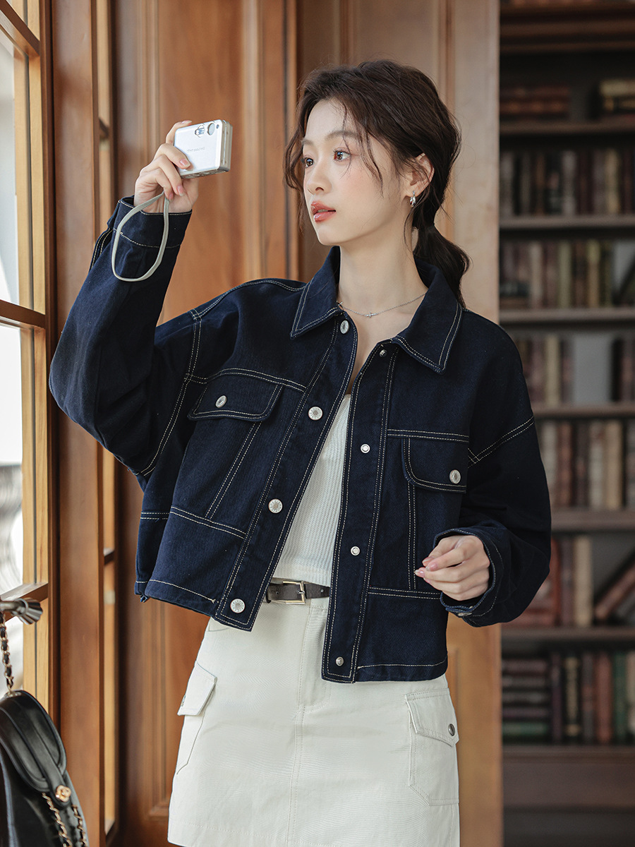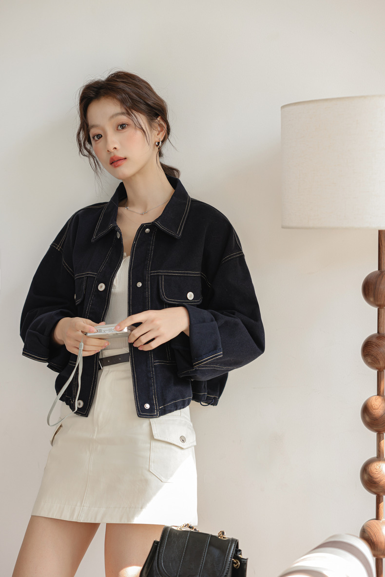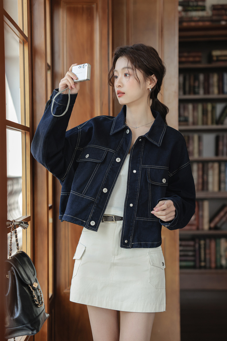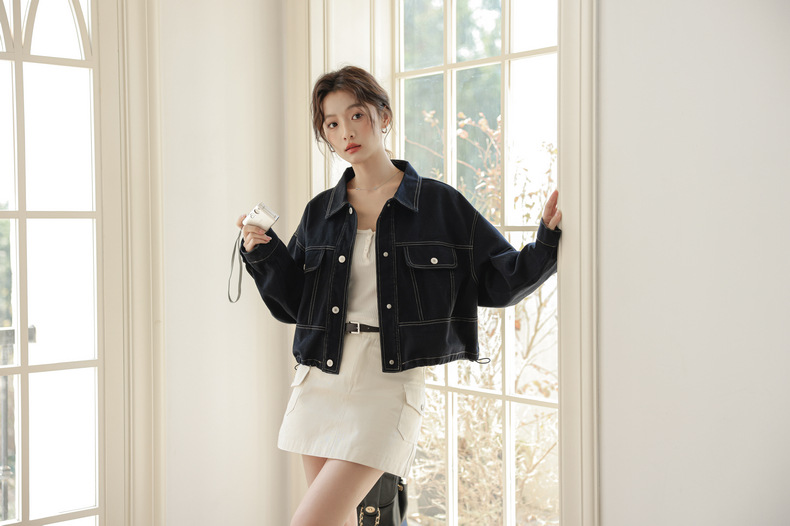 202 봄 새, 간단한 오픈 라인 장식 디자인 drawstring tooling 데님 코트 작은 재킷 여성
