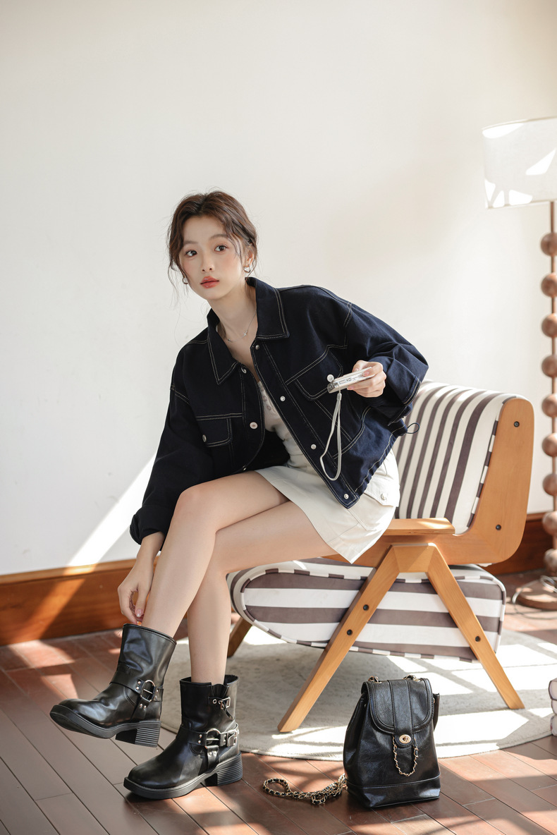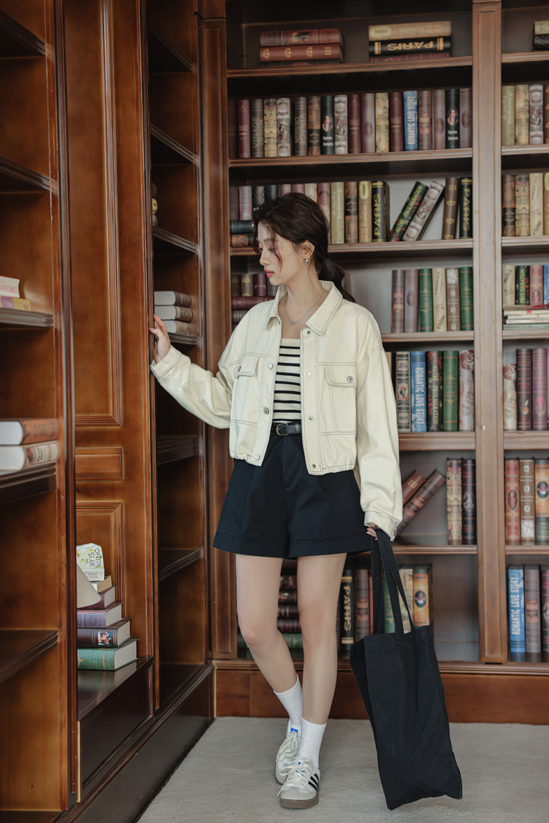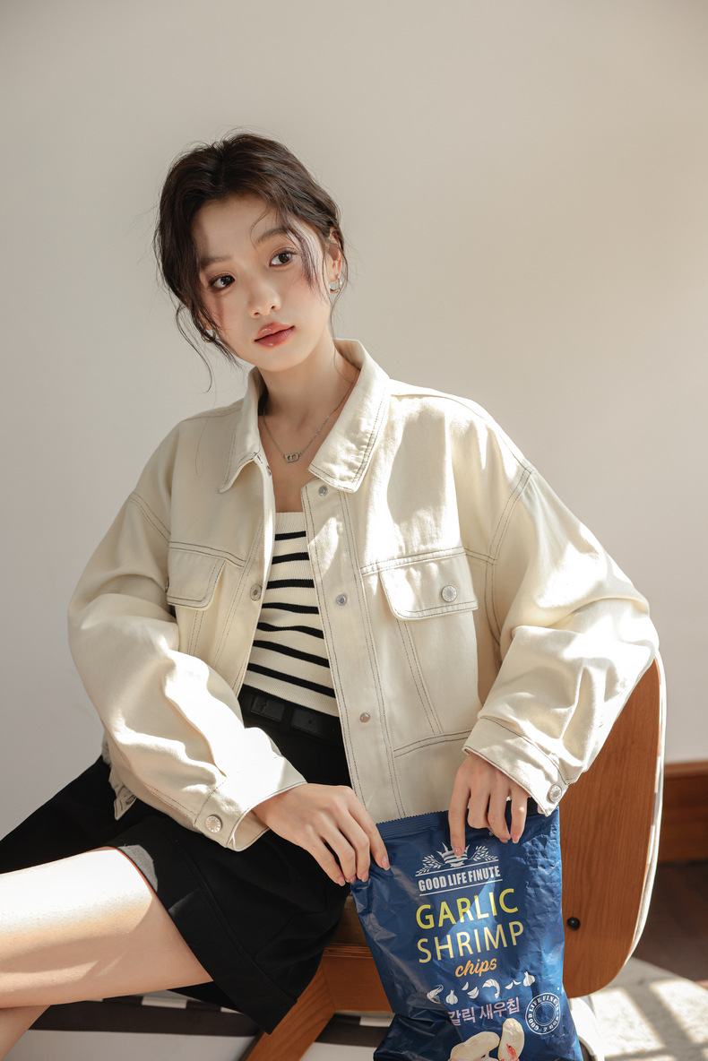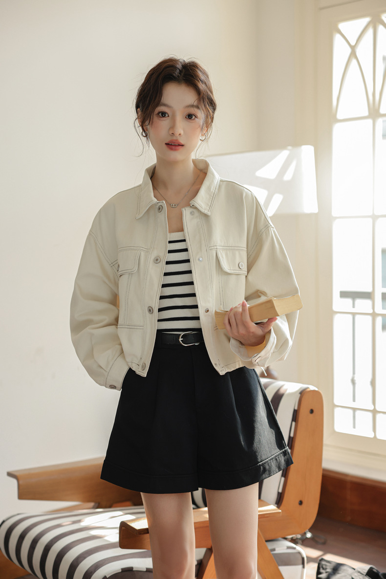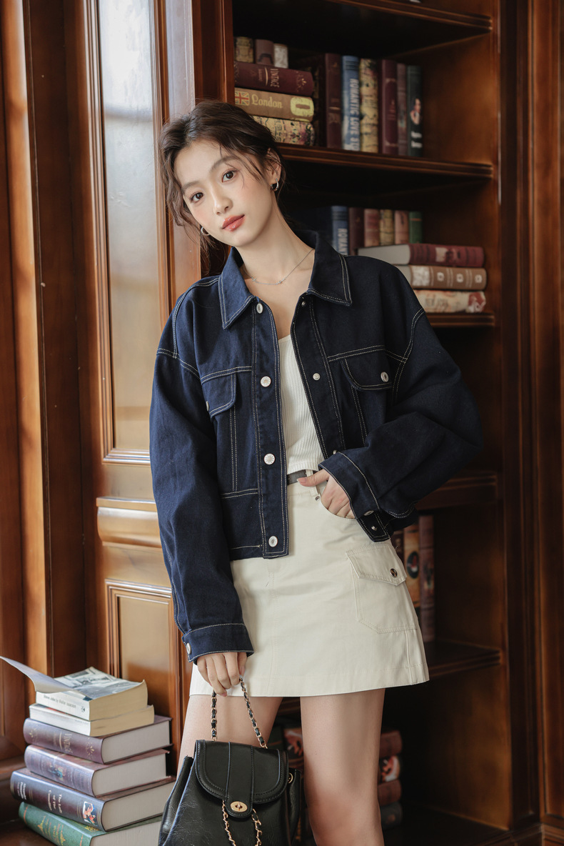 202 봄 새, 간단한 오픈 라인 장식 디자인 drawstring tooling 데님 코트 작은 재킷 여성