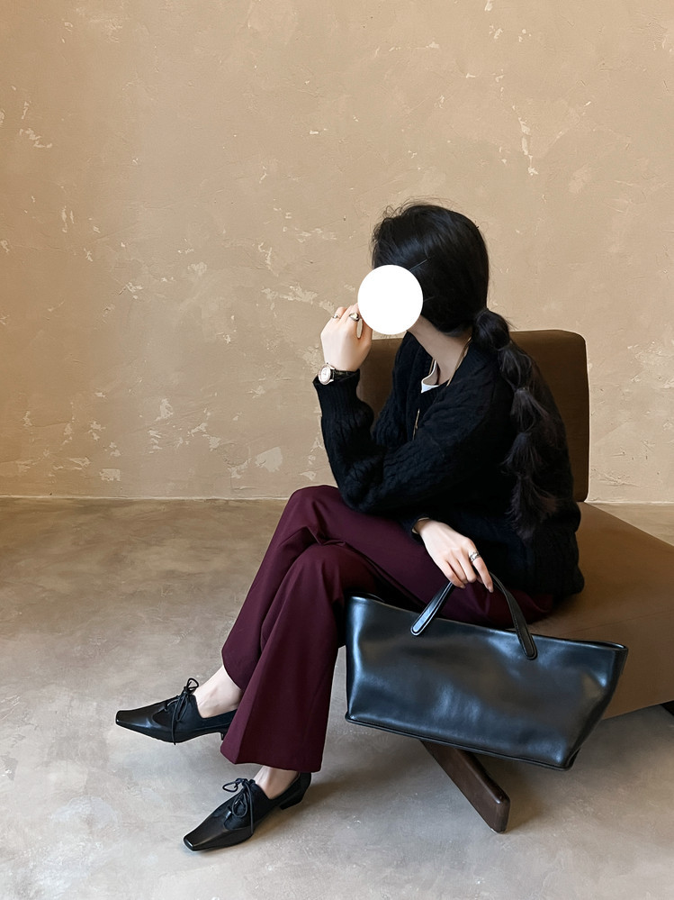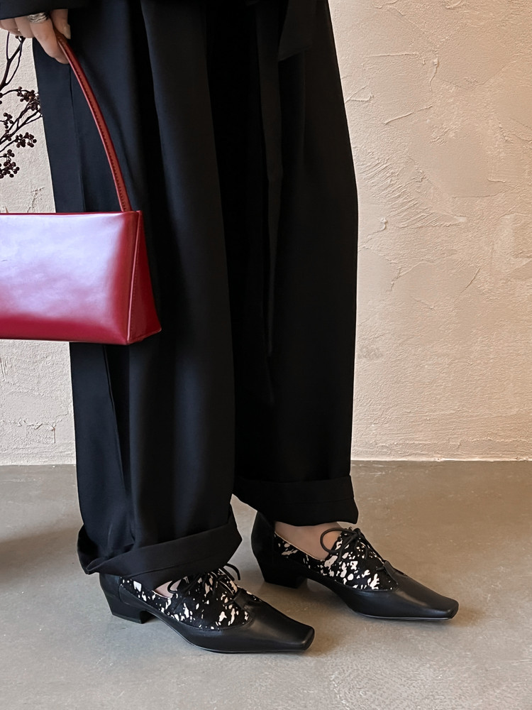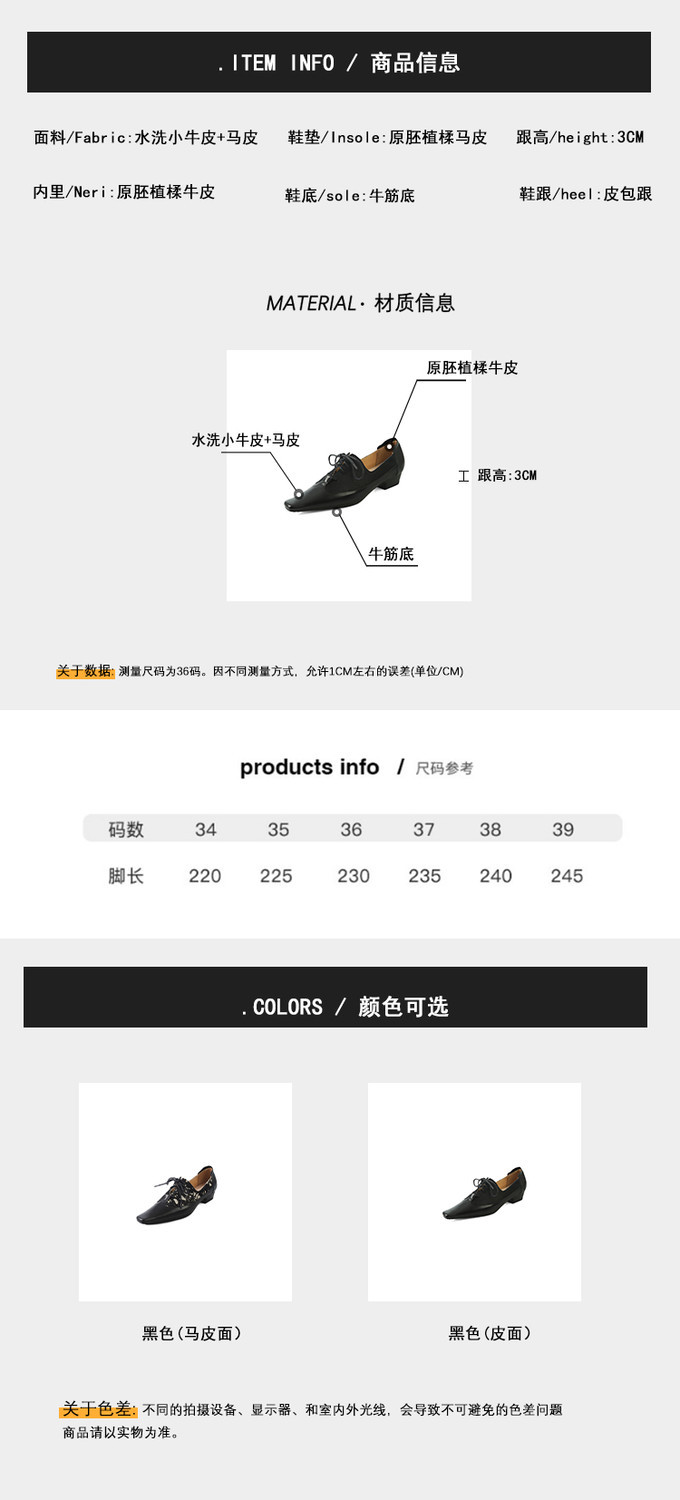 타이어 Cowhide 말 머리 작은 가죽 신발 여성용 깊은 입 싱글 레이어 신발 이른 봄 새 레이스 업 스퀘어 토트로 두꺼운 미드 힐 신발 여성용 싱글 레이어 신발스토어 가기