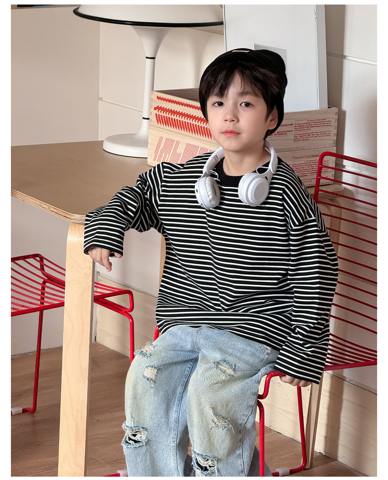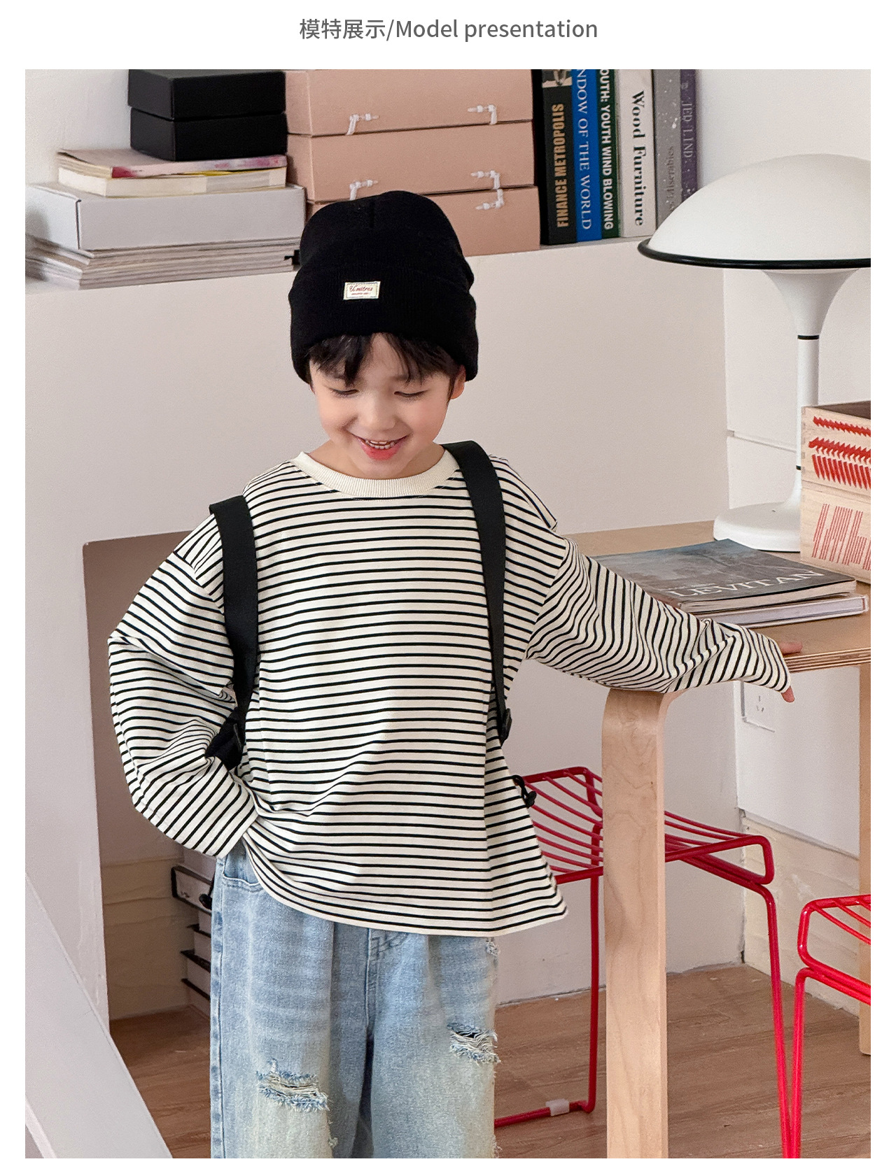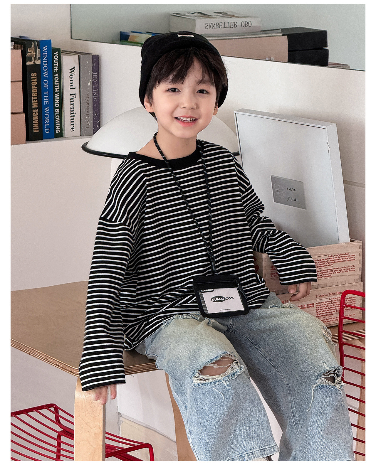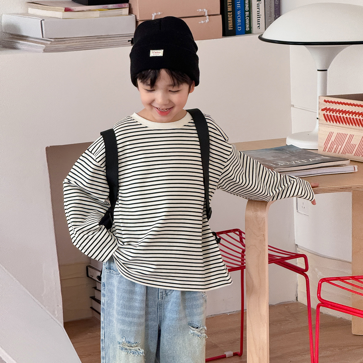 어린이 쿨 2025 소년 봄 후주 질리 아동복 올매치 아동베이스 셔츠 스트라이프 긴팔 아동용 티셔츠 트렌디스토어 가기