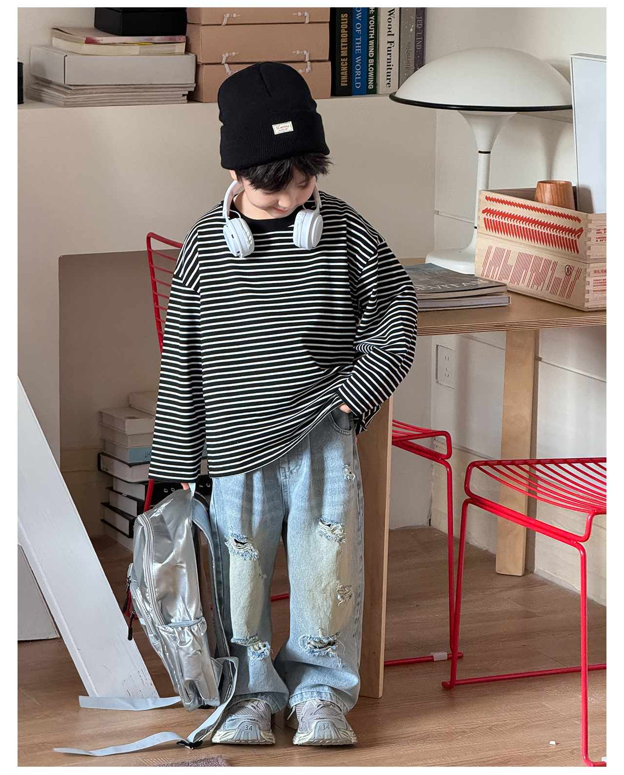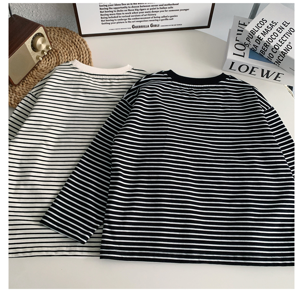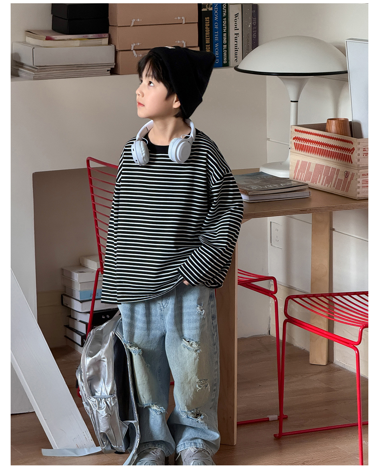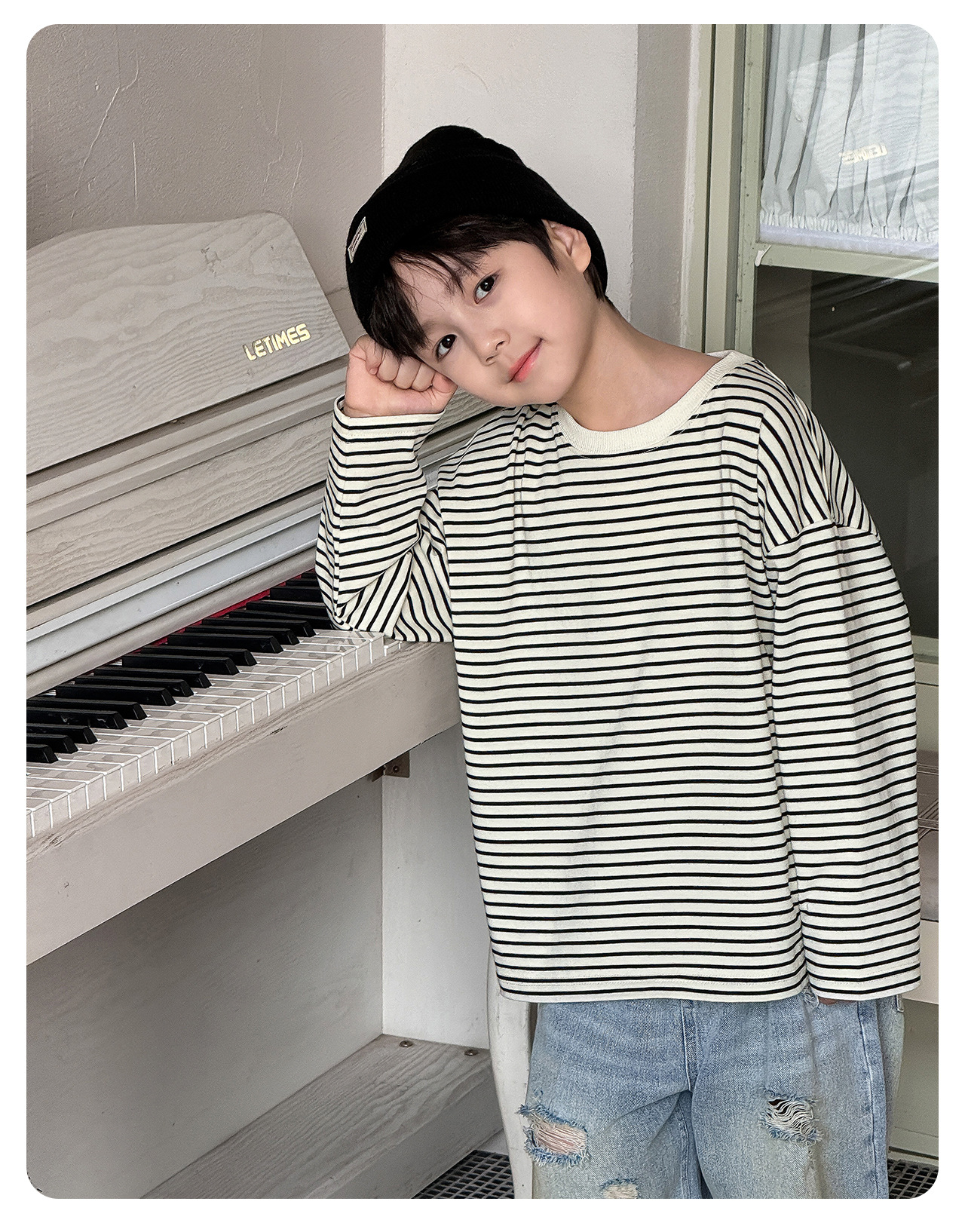 어린이 쿨 2025 소년 봄 후주 질리 아동복 올매치 아동베이스 셔츠 스트라이프 긴팔 아동용 티셔츠 트렌디스토어 가기