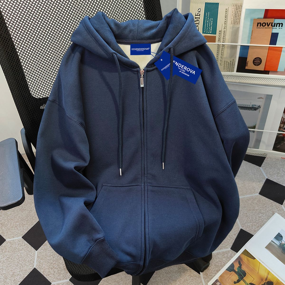 새로운 폭발 미국 복고풍 하이 스트리트 후드 스웨터 남성 2024 가을 기모 느슨한 레저 커플이 세대 머리카락을 당깁니다.스토어 가기