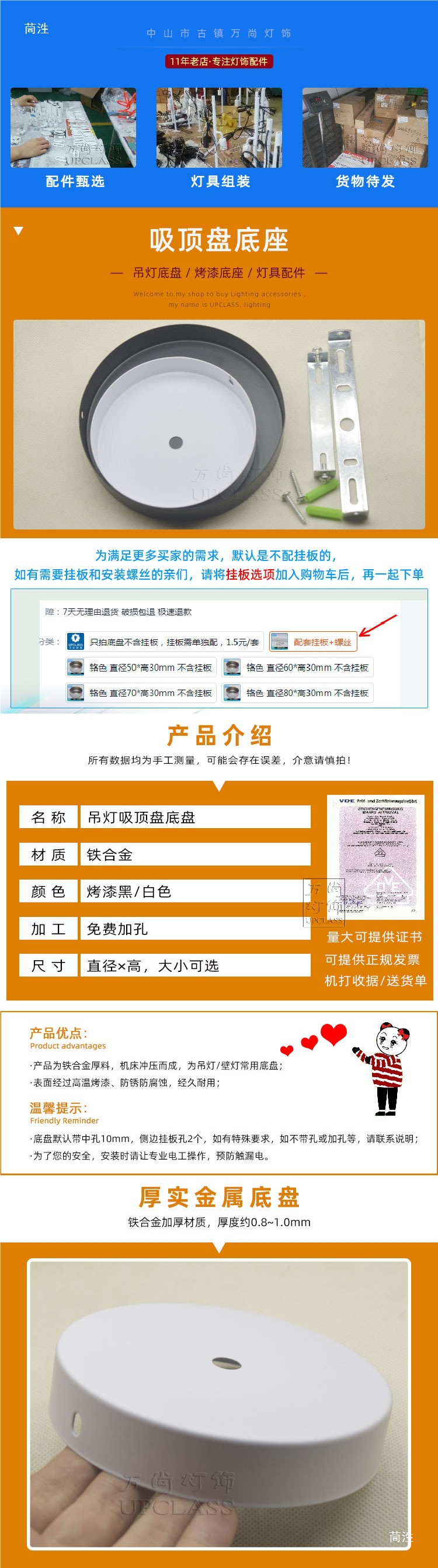 두꺼운 샹들리에 천장 판 가장자리 교수형 플레이트 블랙 화이트 아이언 디스크 벽 램프베이스 고정 커버 조명 액세서리스토어 가기