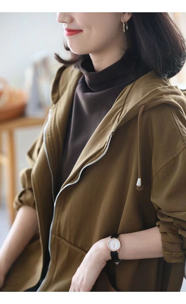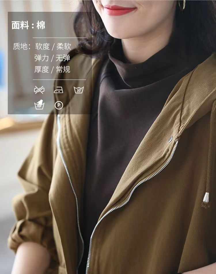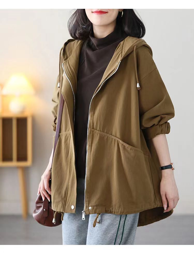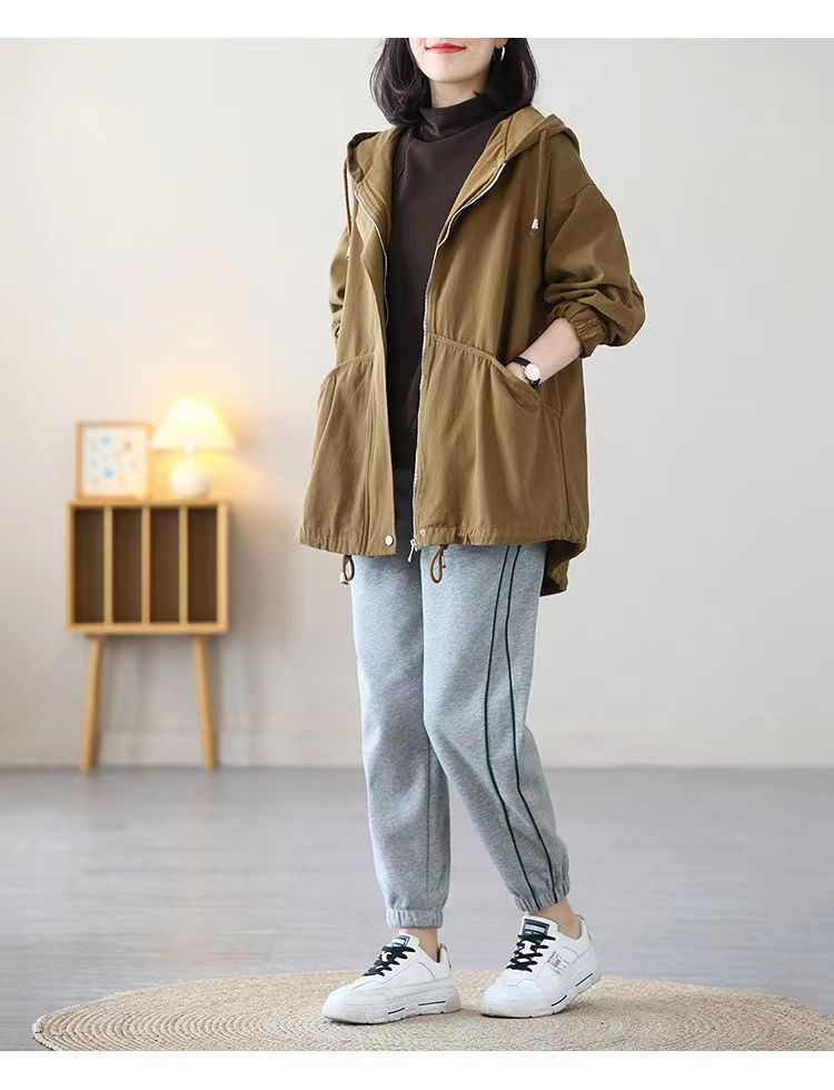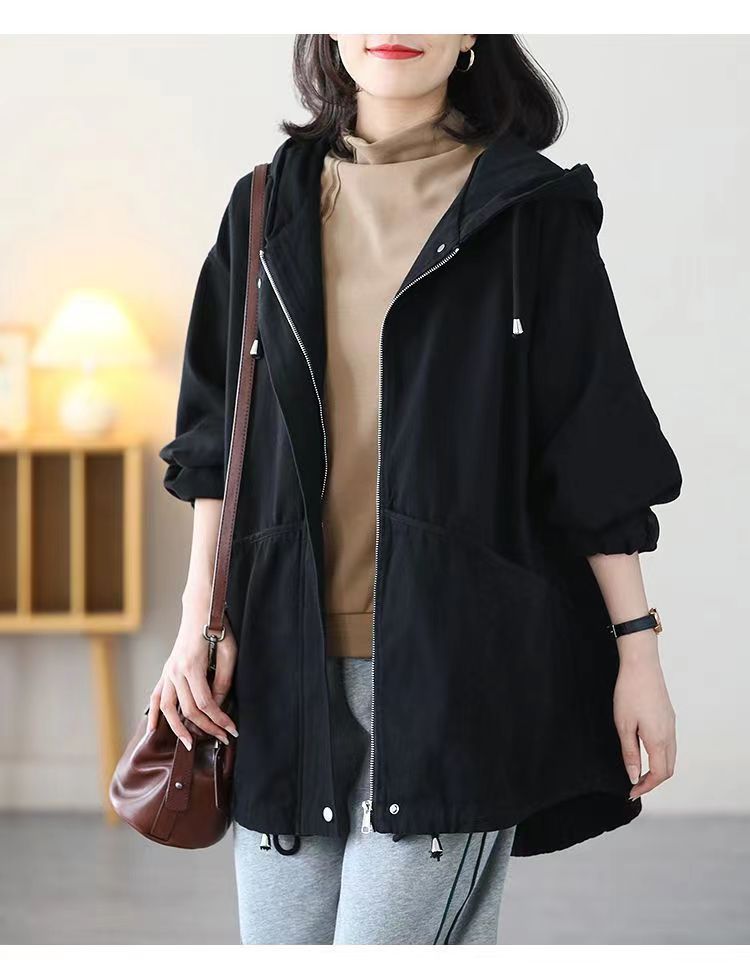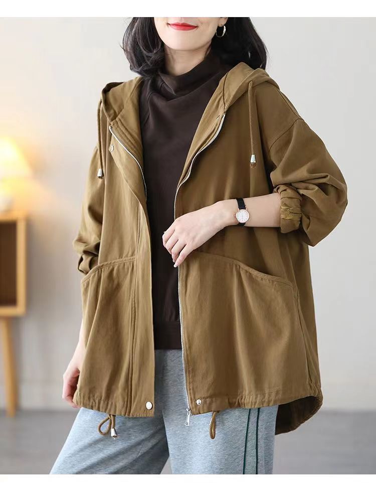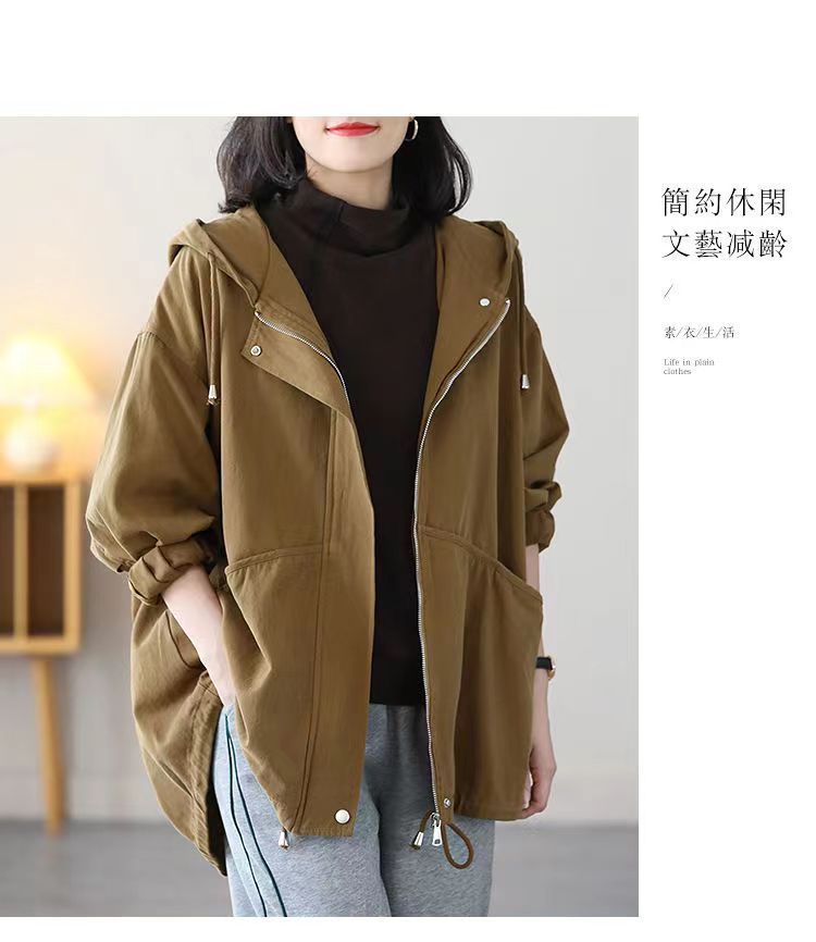 A6C 플러스 사이즈 여성 코트 2023 봄과 가을 새로운 느슨한 슬림 패션 고귀한 중년 어머니 나이 감소 후드스토어 가기
