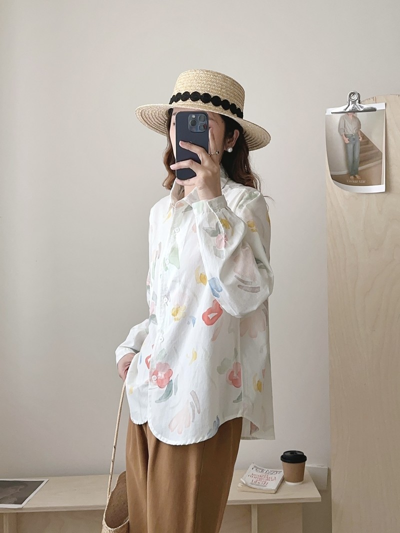 2025 봄 새로운 만화 인쇄 장미 레이디 카디건 느슨한 탑 셔츠 도매