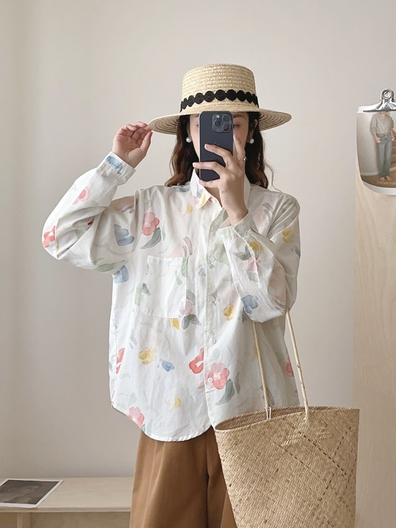 2025 봄 새로운 만화 인쇄 장미 레이디 카디건 느슨한 탑 셔츠 도매스토어 가기
