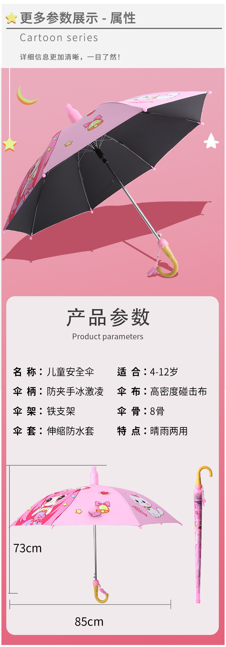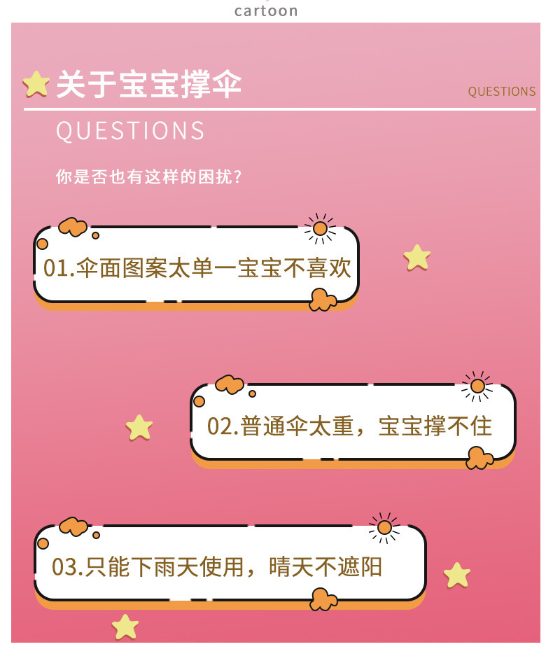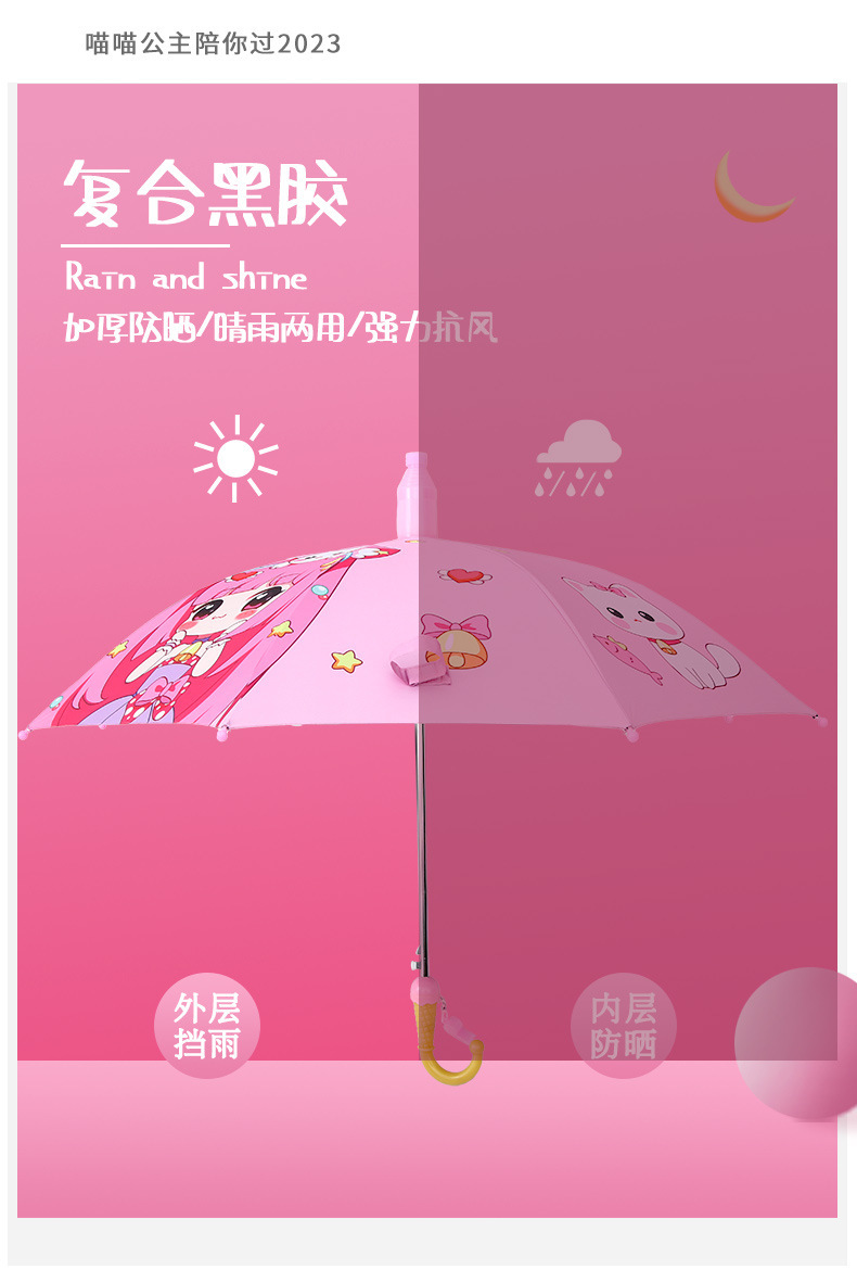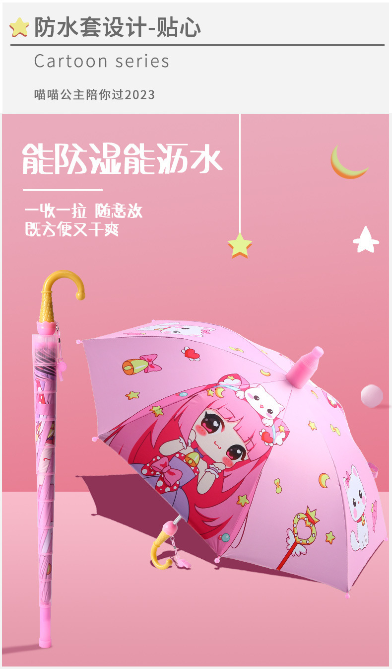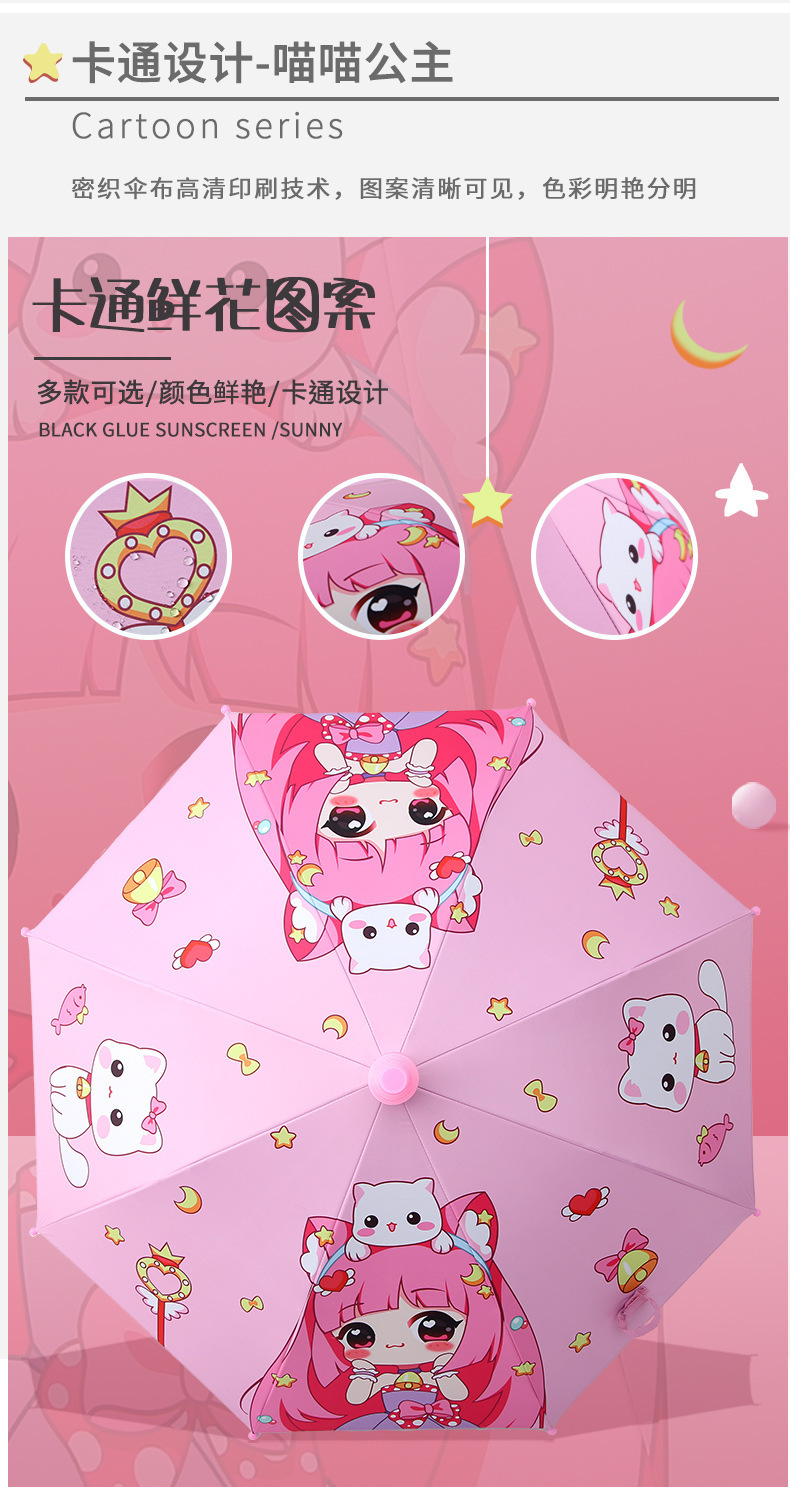 유치원 아기 어린이 우산 귀여운 만화 차양 선 스크린 검은 고무 비 우산 제조 업체 도매 인쇄스토어 가기