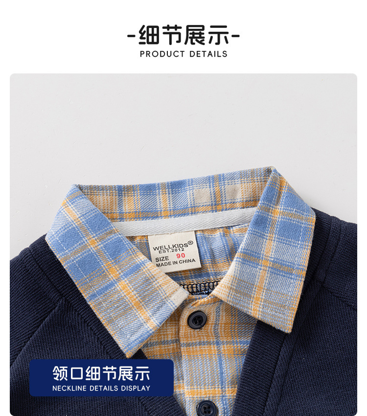 가짜 투피스 코트 어린이 패션 긴팔 스웨터 소년 만화 탑 조수 아동복 도매 새로운 한국어 버전
