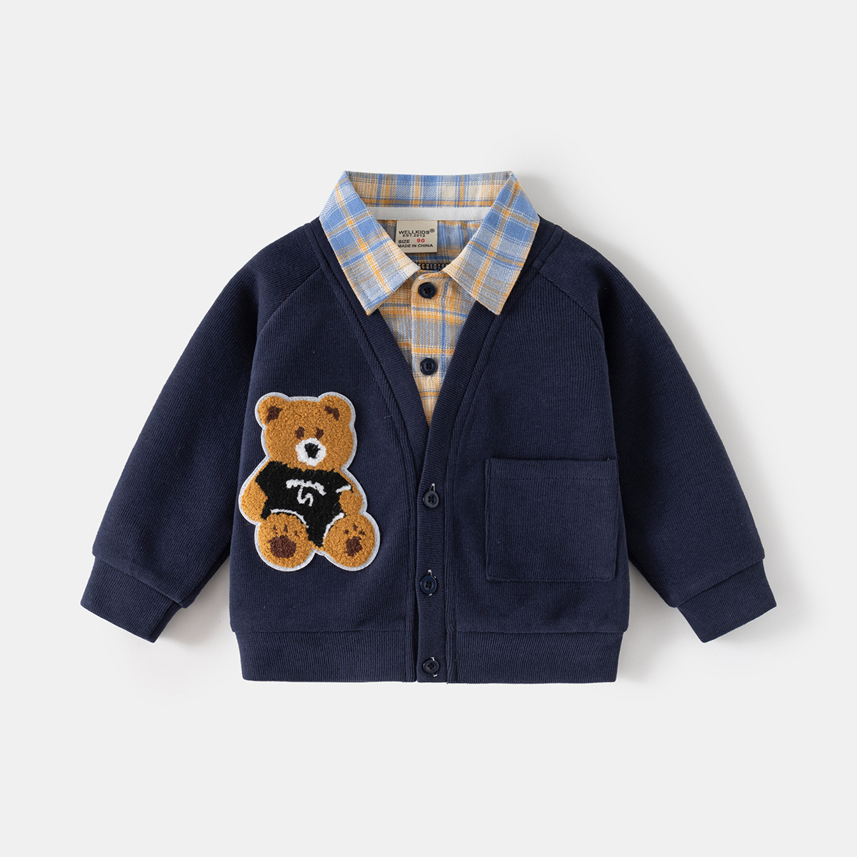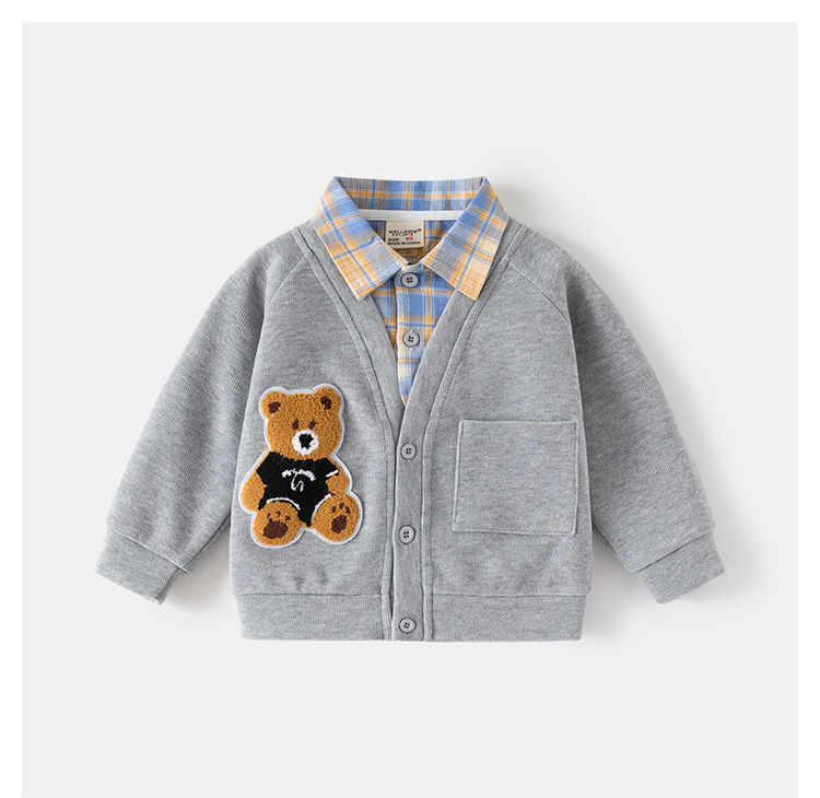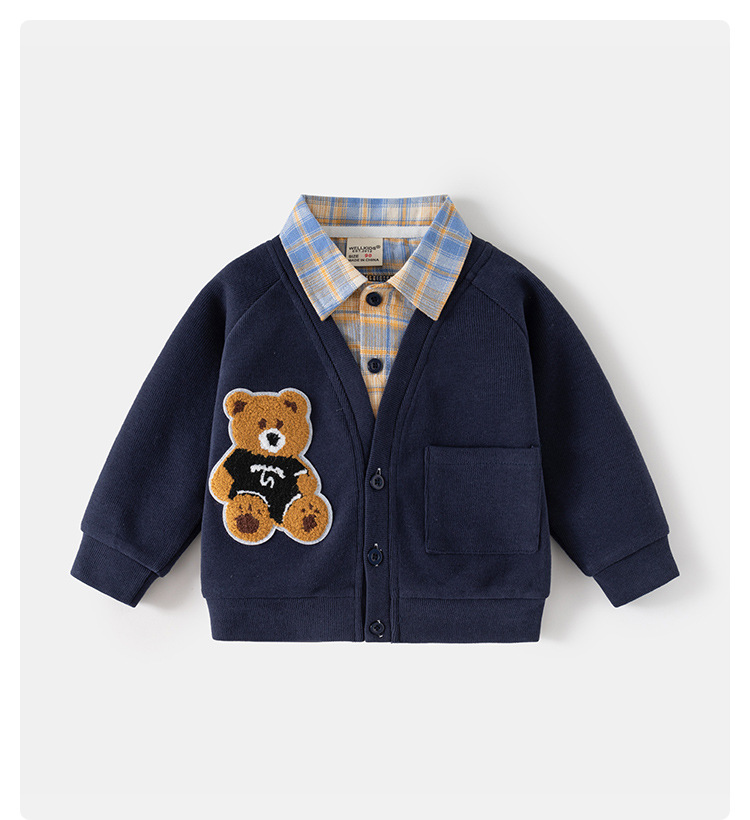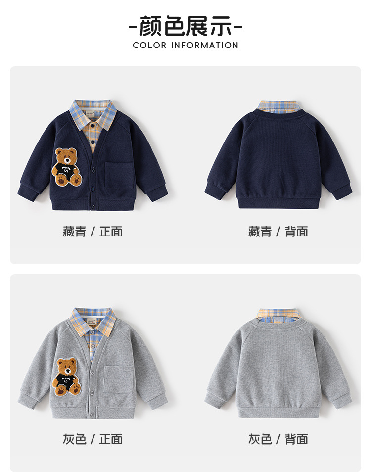 가짜 투피스 코트 어린이 패션 긴팔 스웨터 소년 만화 탑 조수 아동복 도매 새로운 한국어 버전스토어 가기