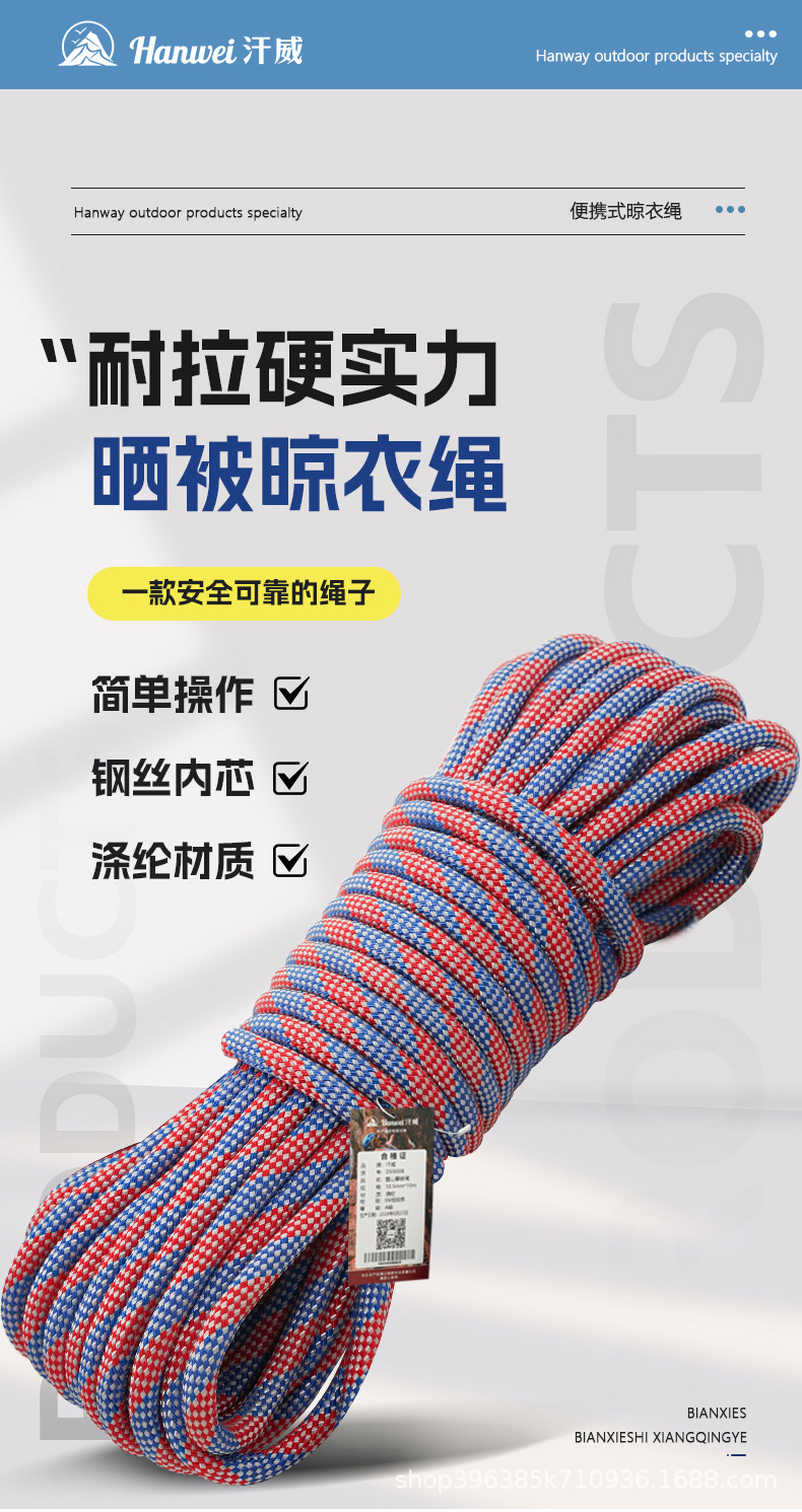 두꺼운 강철 와이어 코어 빨랫줄 야외 퀼트 건조 유물 야외 여행 옥상 지붕 매달려 건조 옷 로프