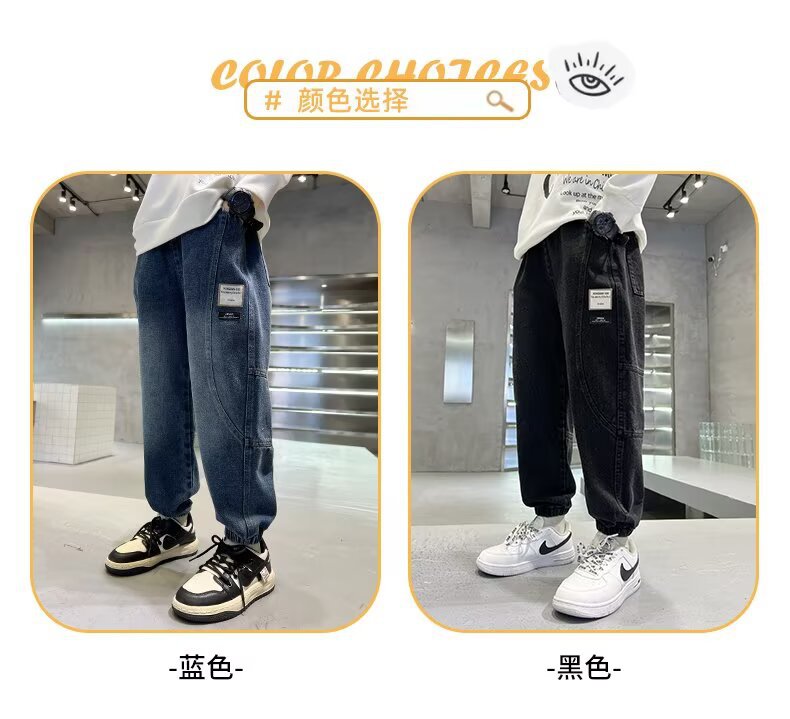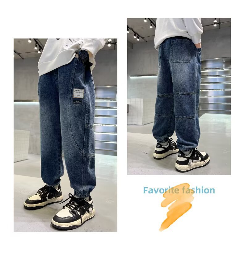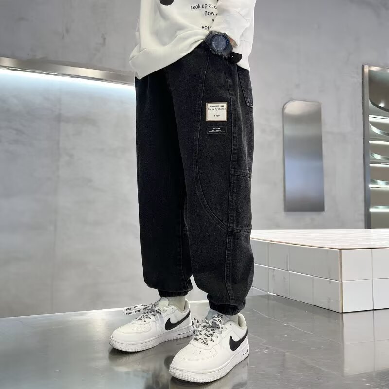 트렌디 한 새로운 브랜드 없음 6 세 패션 봄과 가을 착용 트렌디 한 멋진 바지 청바지 소년 캐주얼 바지 예술적스토어 가기